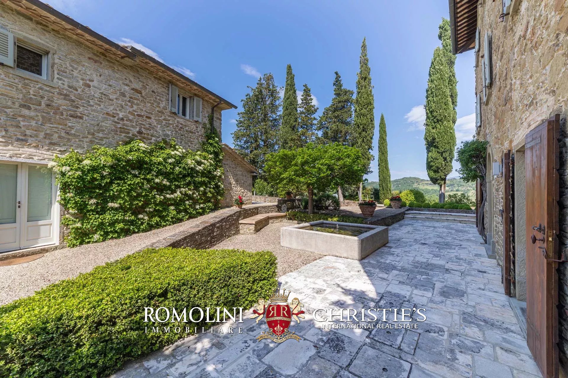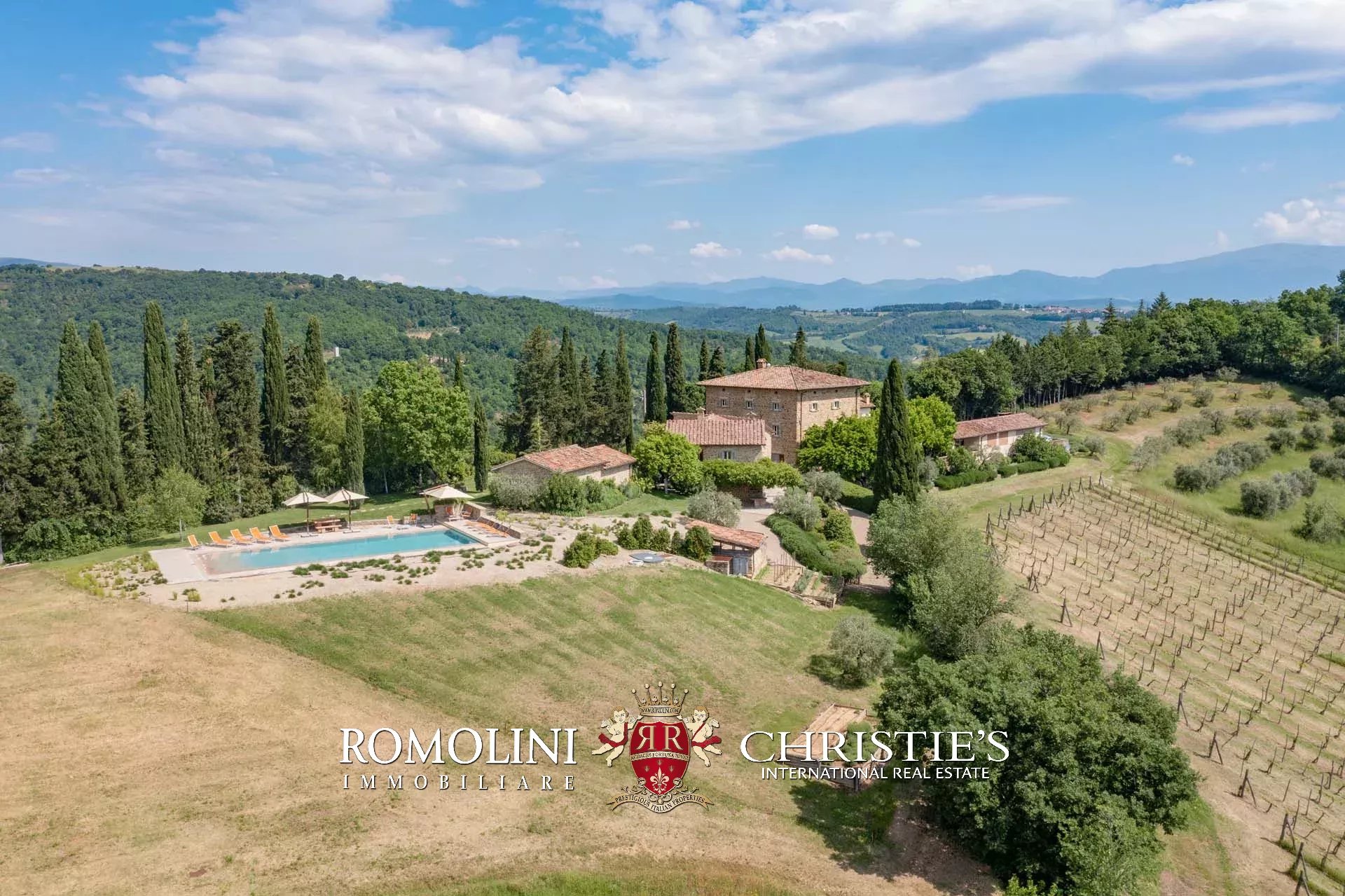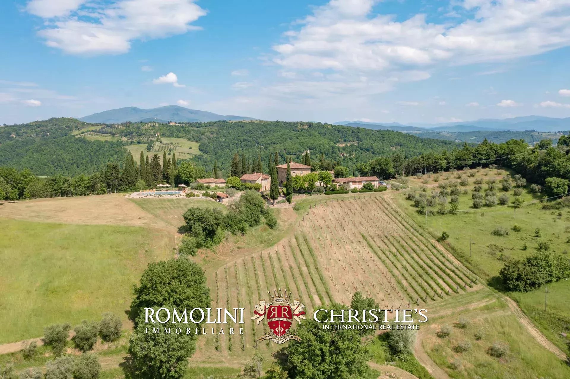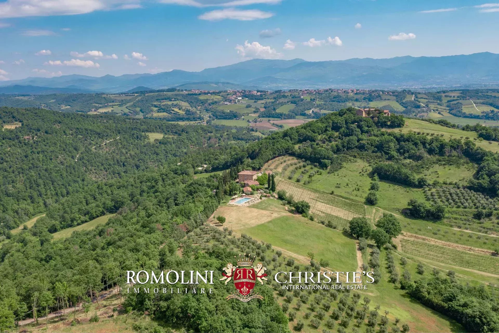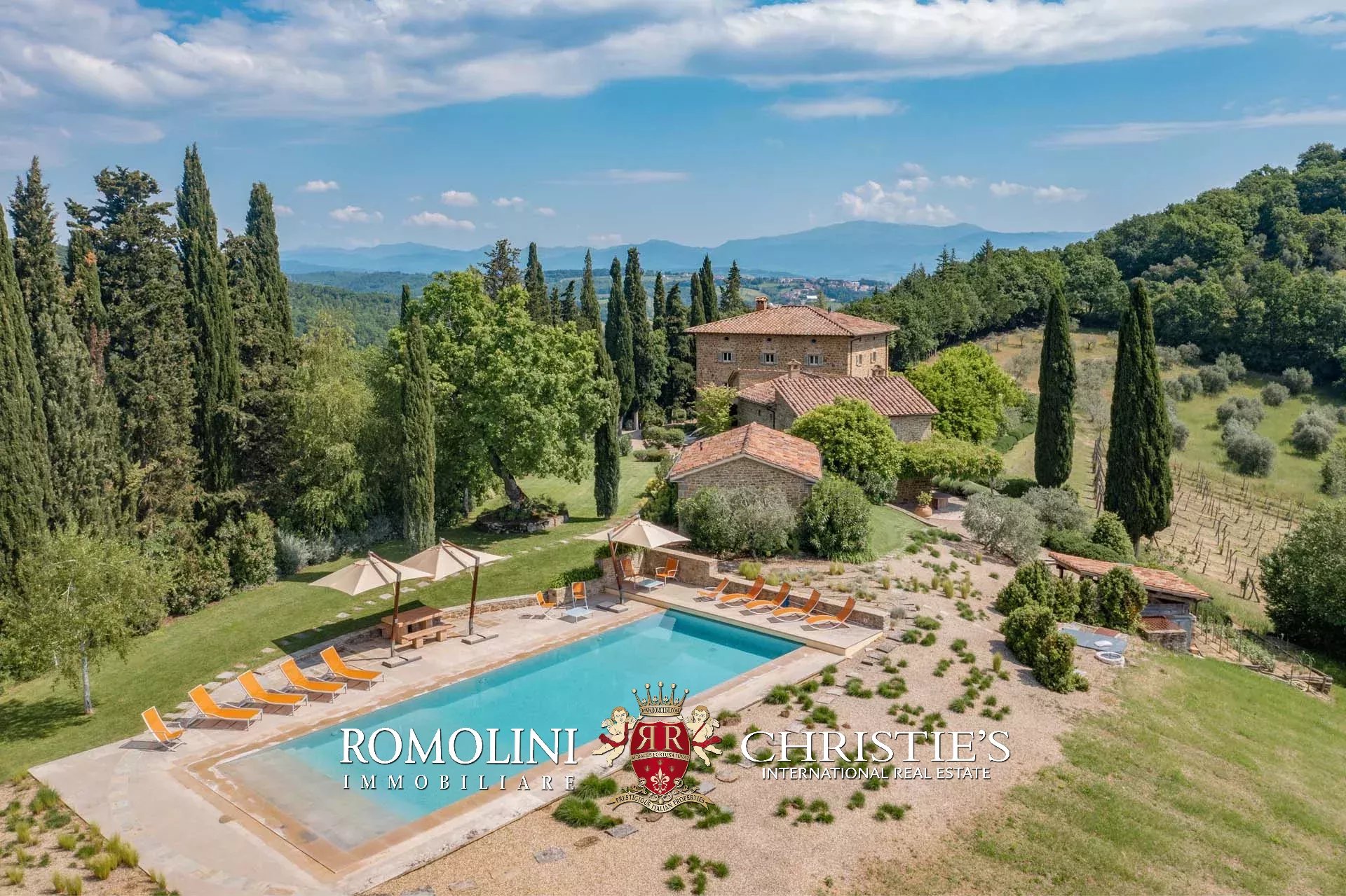 A pochi chilometri dal borgo medievale di Anghiari, in posizione panoramica, piccolo borgo con villa padronale in vendita. La proprietà (oltre 1.000 m² in totale) si compone di cinque edifici (con 9 camere totali) che includono due dependance, una pool house con palestra e una grande sala giochi molto adatta anche per eventi. All’esterno la proprietà copre un totale di 25,5 ettari che includono un piccolo vigneto e circa 300 piante di ulivo.