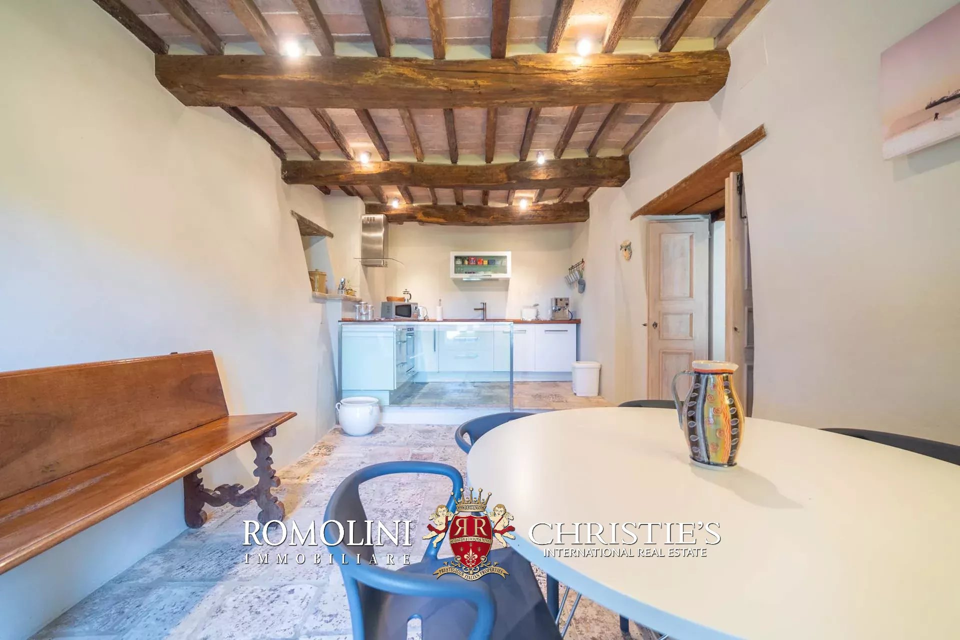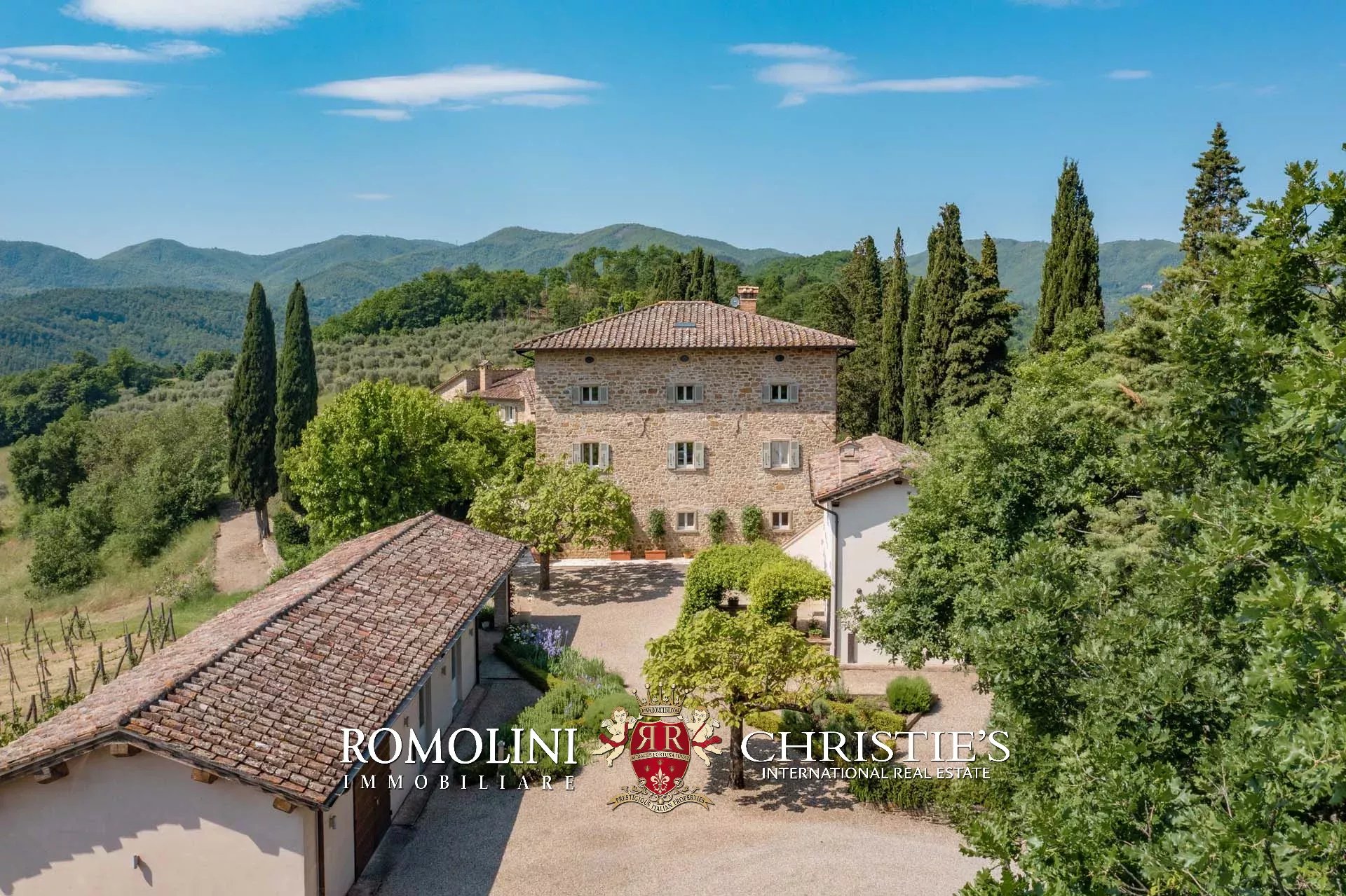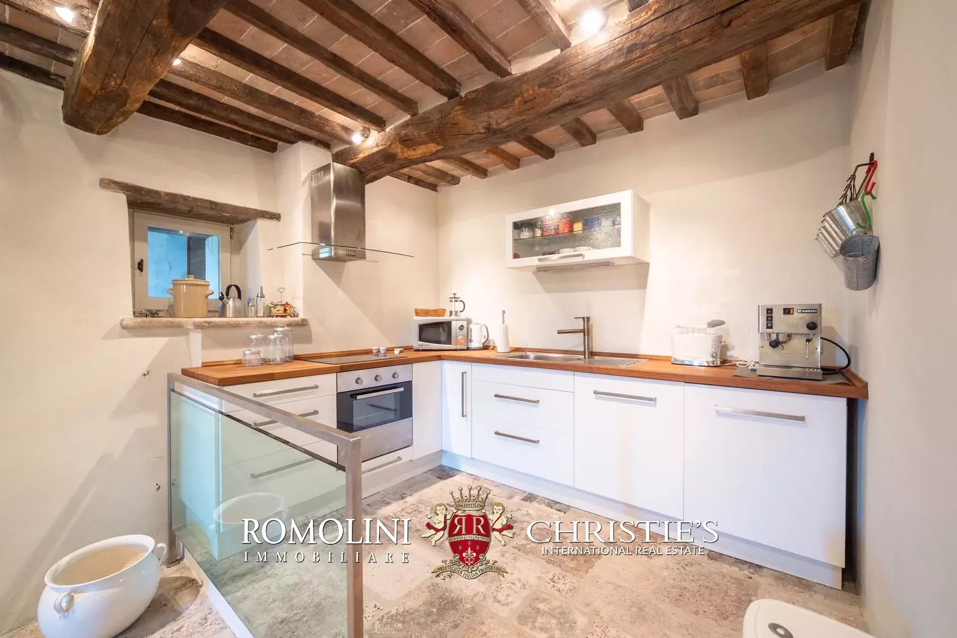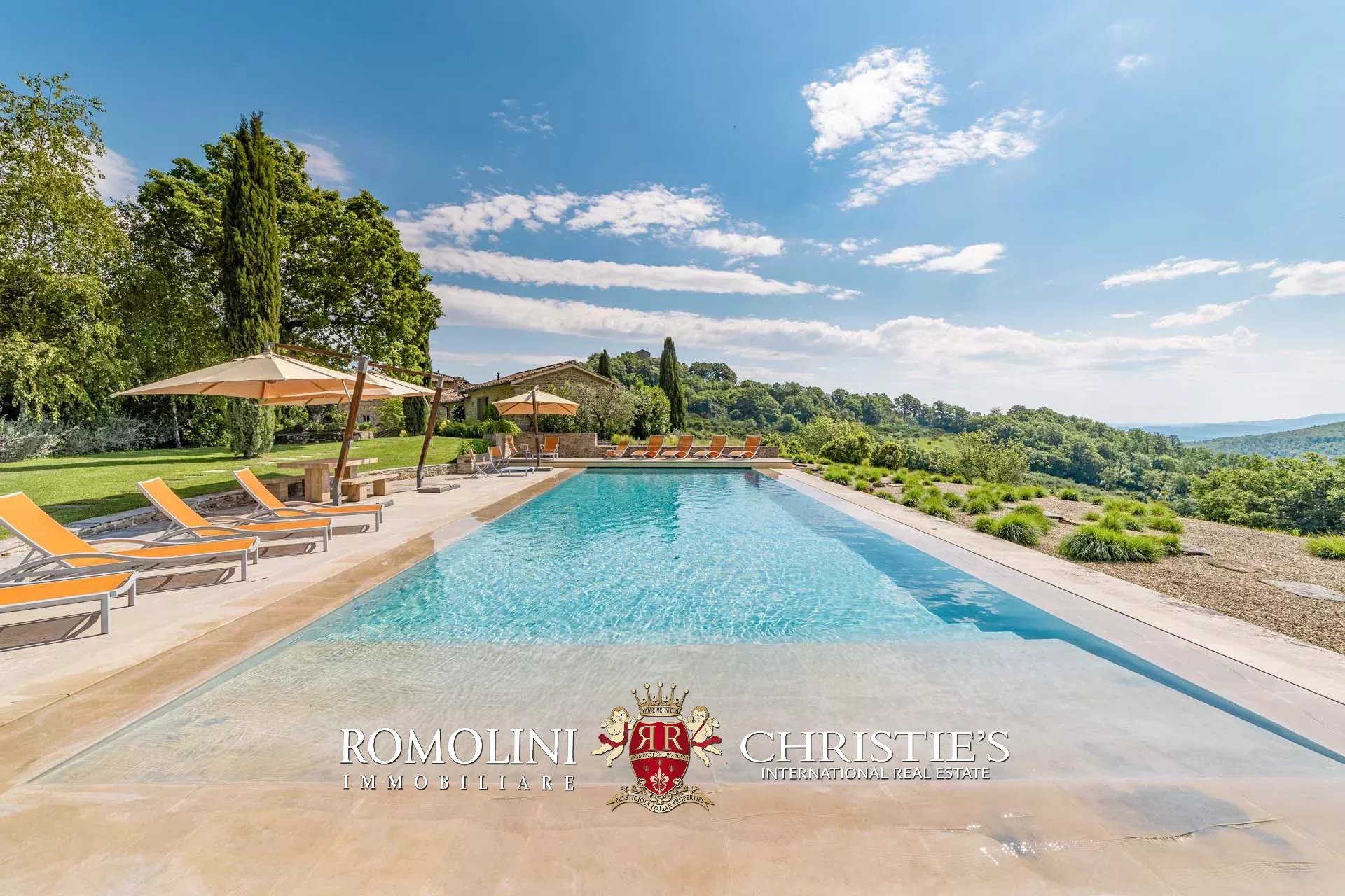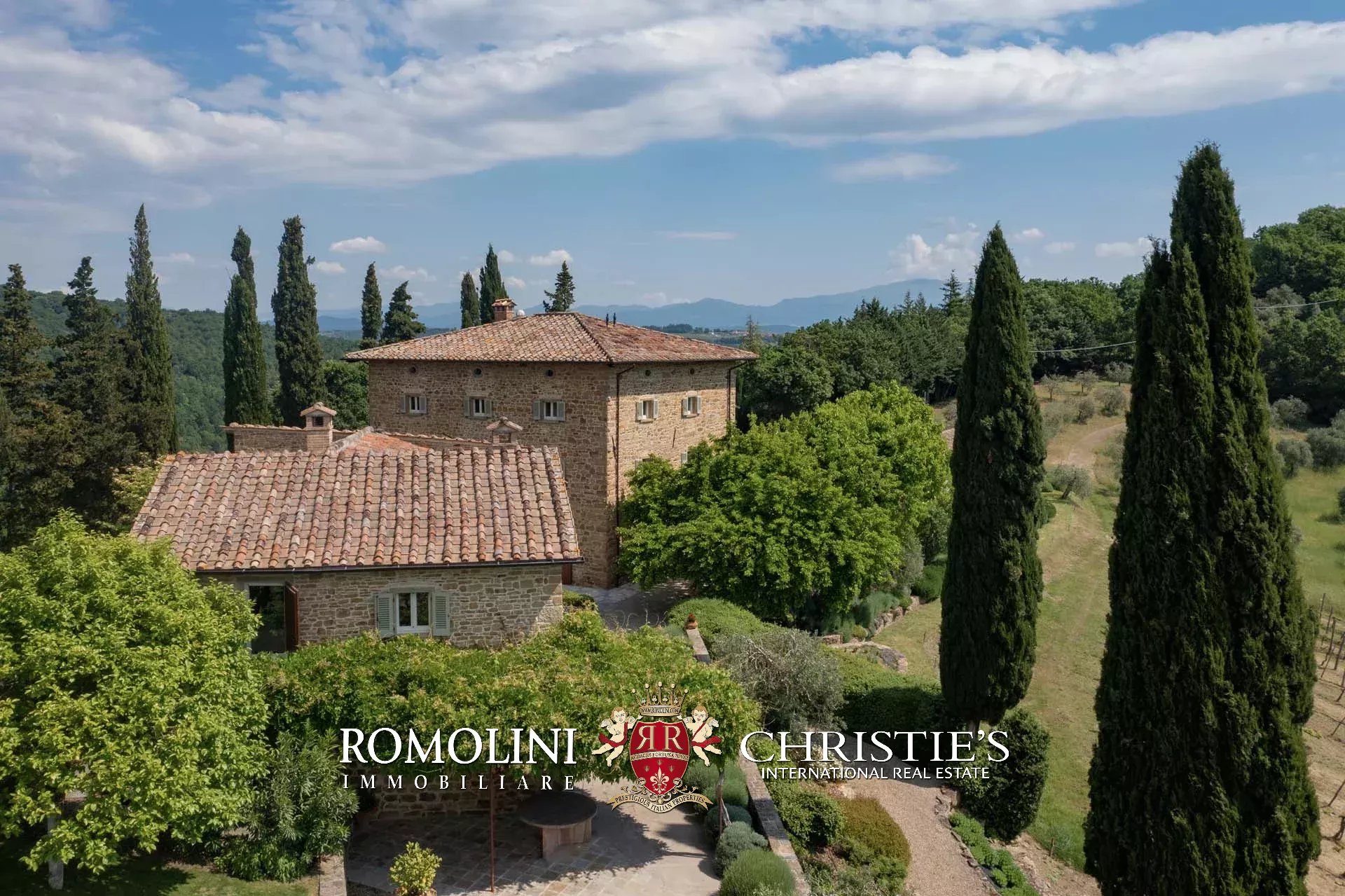 A pochi chilometri dal borgo medievale di Anghiari, in posizione panoramica, piccolo borgo con villa padronale in vendita. La proprietà (oltre 1.000 m² in totale) si compone di cinque edifici (con 9 camere totali) che includono due dependance, una pool house con palestra e una grande sala giochi molto adatta anche per eventi. All’esterno la proprietà copre un totale di 25,5 ettari che includono un piccolo vigneto e circa 300 piante di ulivo.