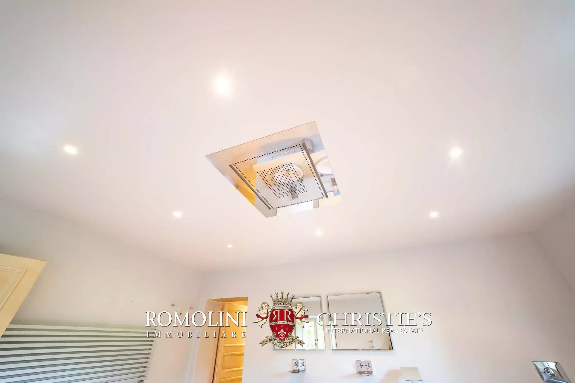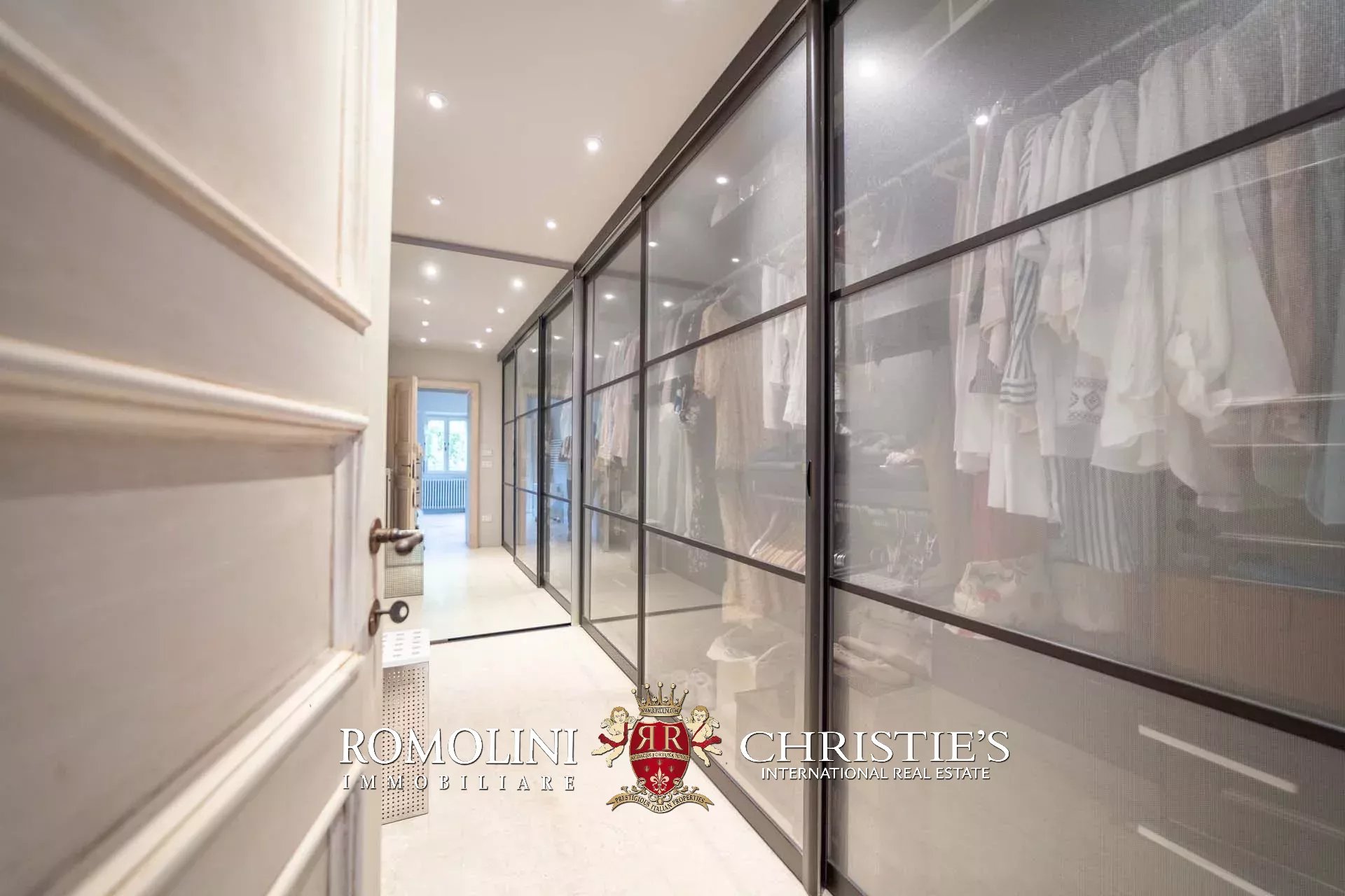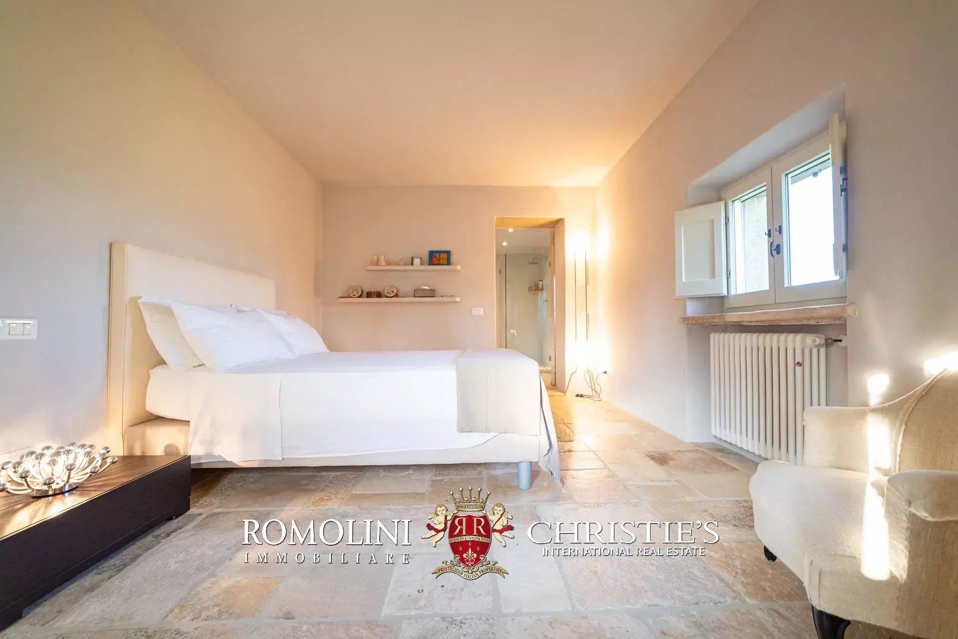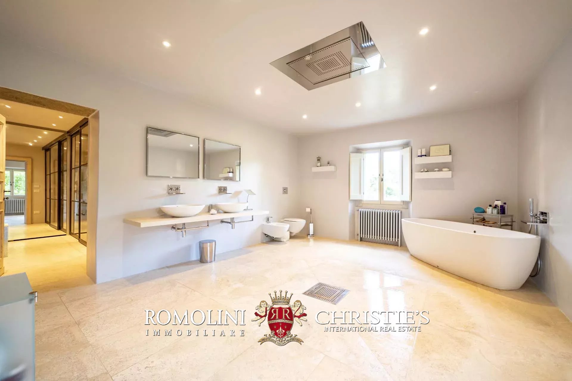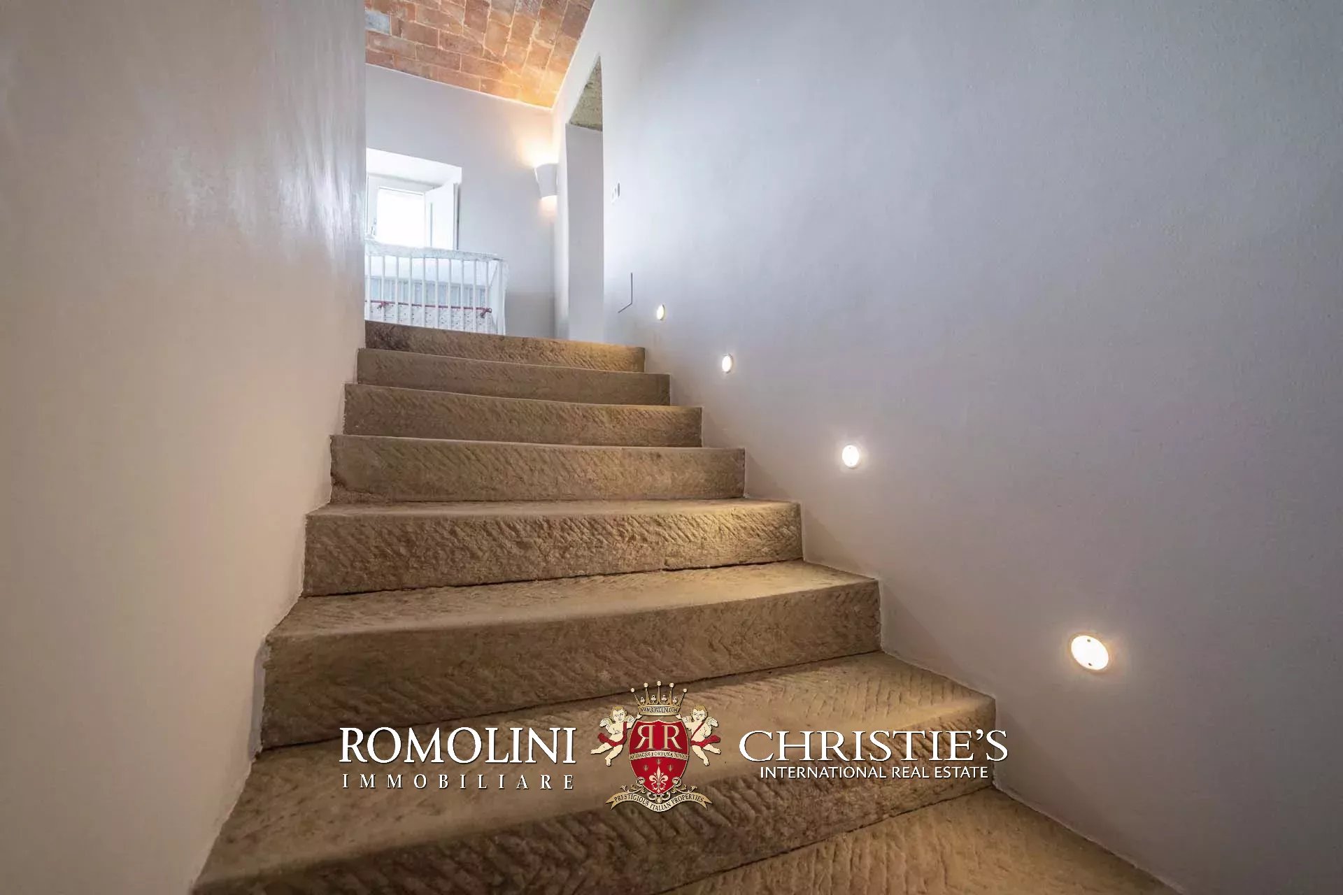 La villa padronale (608 m², 5 camere e 6 bagni) si struttura su quattro piani collegati da una scala interna posta al centro dell’edificio. Entrando al piano terra si trova la zona giorno dell’edificio costituita da un grande soggiorno con cucina a vista, sala da pranzo, sala lettura e bagno di servizio. Nel sottoscala si trova un piccolo ripostiglio molto utile anche come dispensa. Salendo al piano primo, il pianerottolo conduce da un lato alla camera padronale con bagno privato e cabina armadio, dall’altro a un salotto con camino che disimpegna una seconda camera con bagno.
