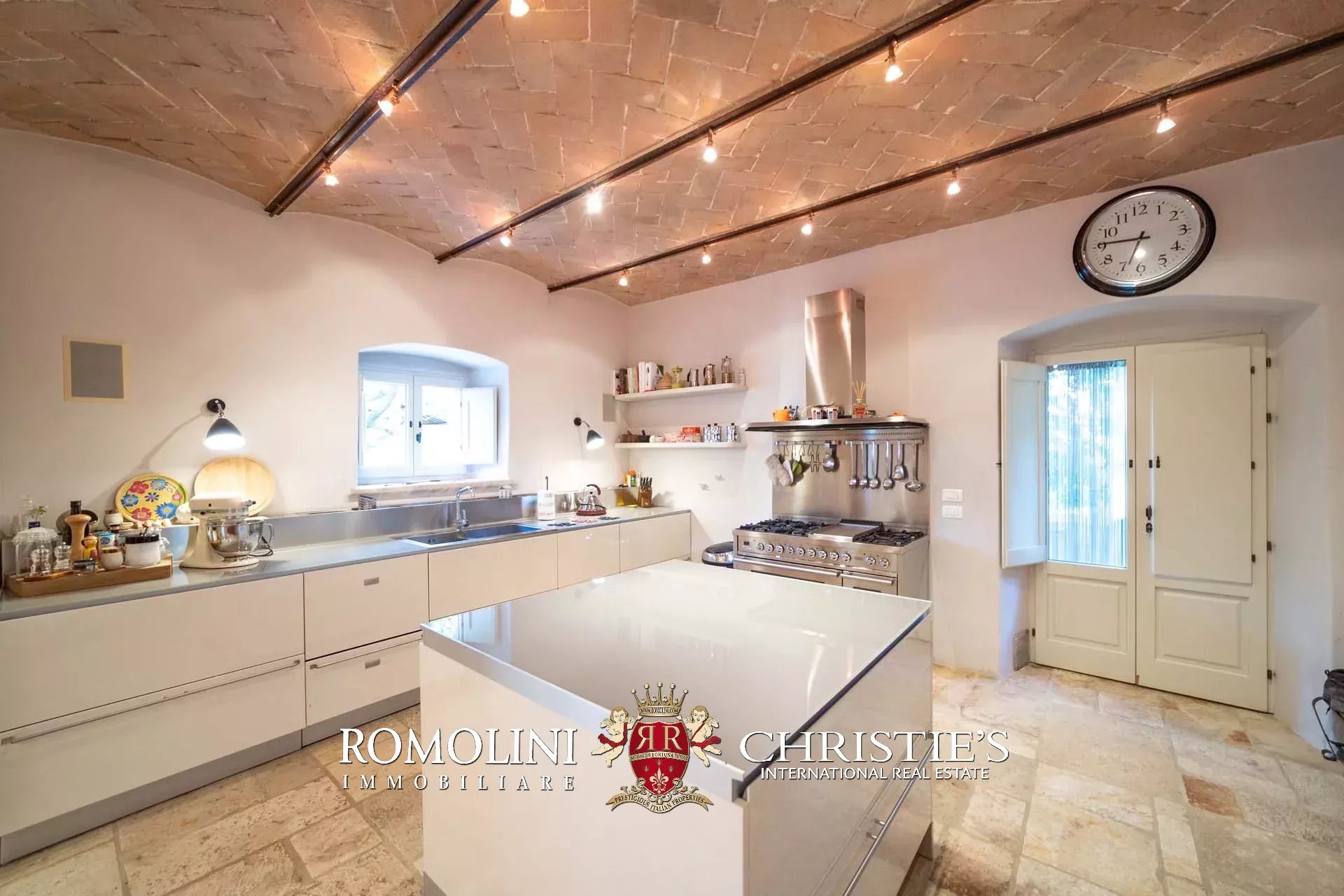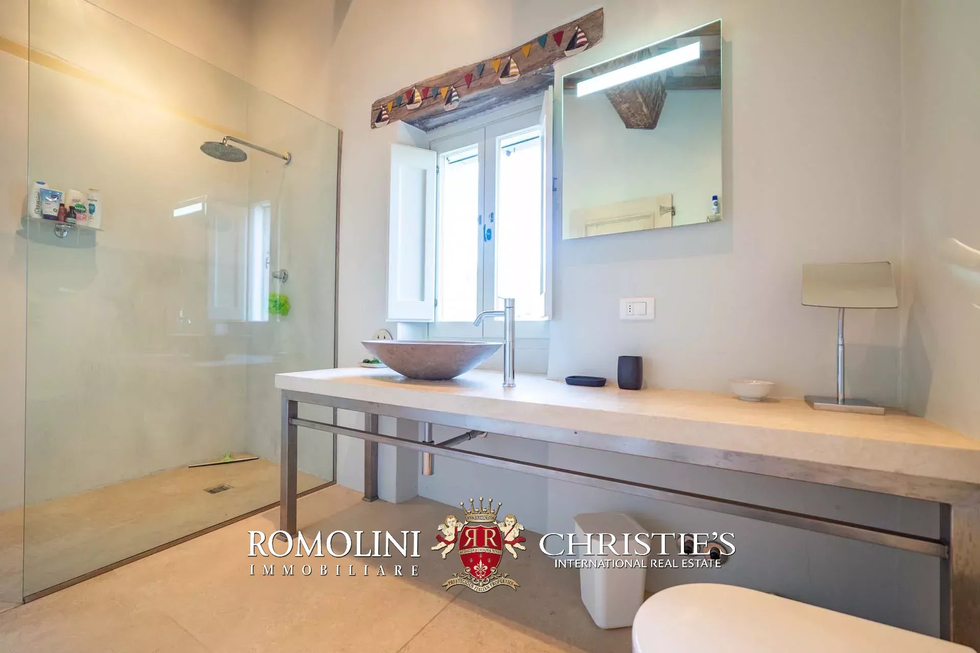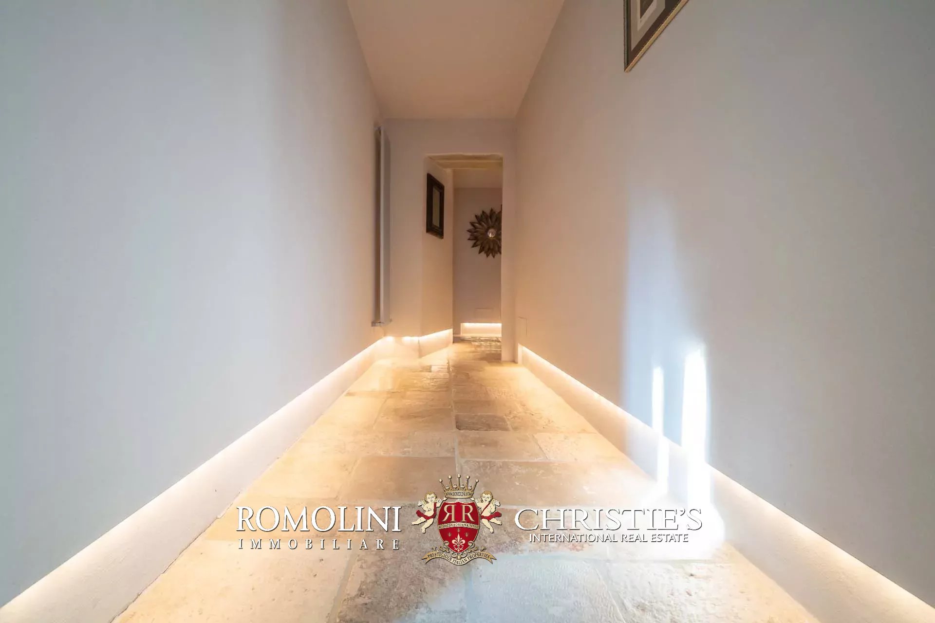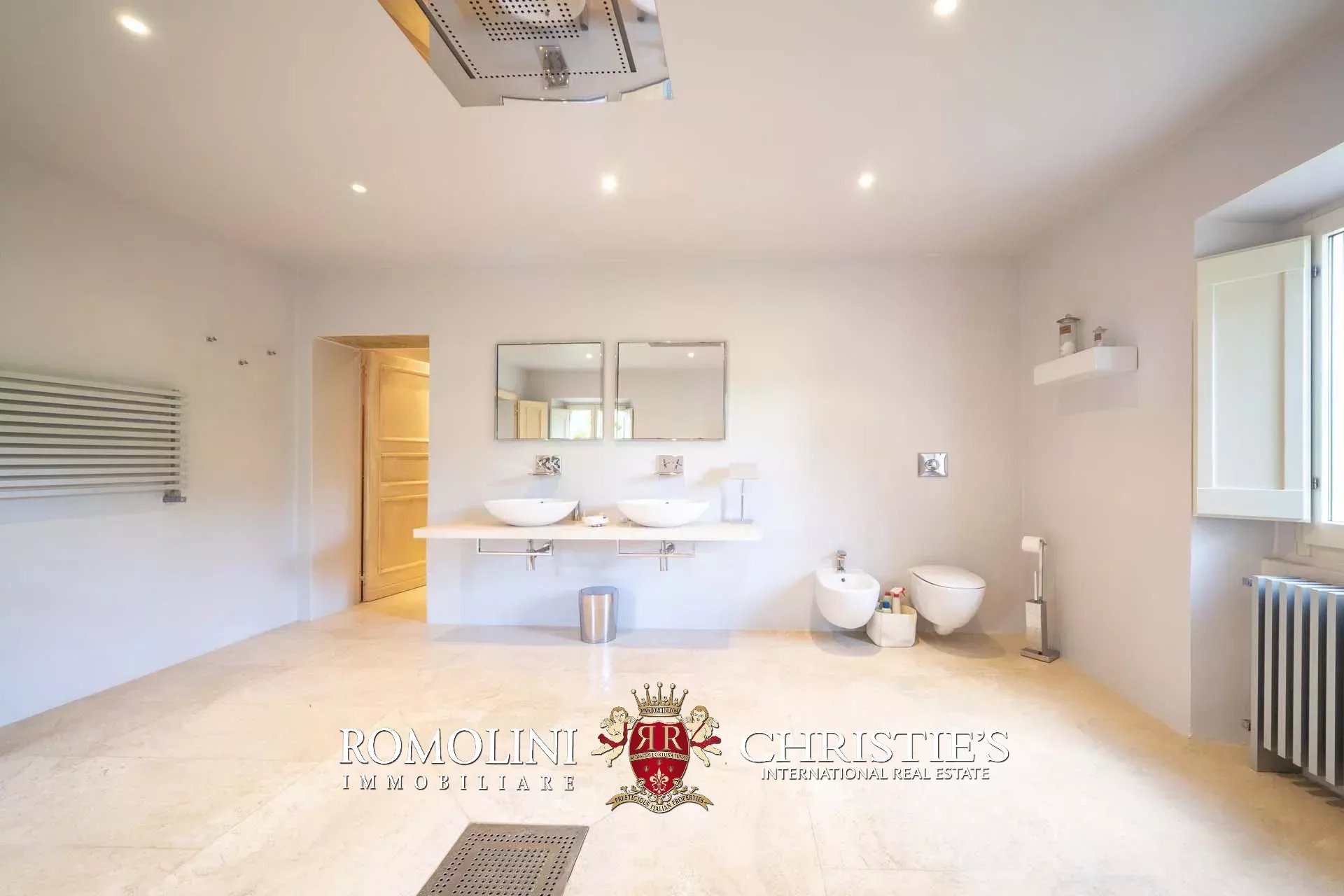 La villa padronale (608 m², 5 camere e 6 bagni) si struttura su quattro piani collegati da una scala interna posta al centro dell’edificio. Entrando al piano terra si trova la zona giorno dell’edificio costituita da un grande soggiorno con cucina a vista, sala da pranzo, sala lettura e bagno di servizio. Nel sottoscala si trova un piccolo ripostiglio molto utile anche come dispensa. Salendo al piano primo, il pianerottolo conduce da un lato alla camera padronale con bagno privato e cabina armadio, dall’altro a un salotto con camino che disimpegna una seconda camera con bagno.