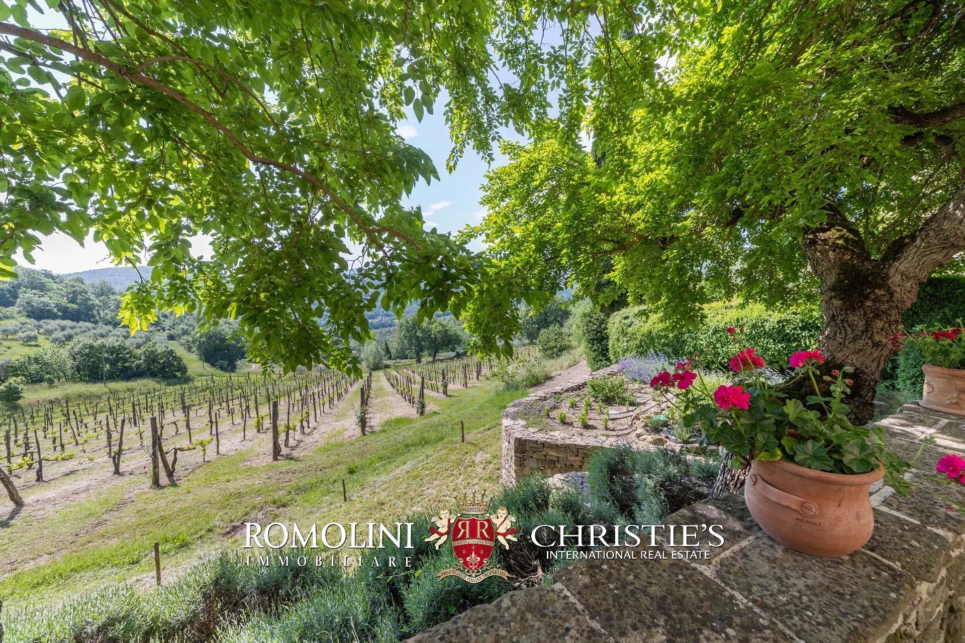 Sotto alla villa, sul versante sudorientale del crinale, si trovano un piccolo vigneto (circa 8.000 m²) e l’oliveto (1,7 ha per totali ~ 300 piante) che permette di produrre ogni anno tra i 300 e i 400 kg di olio.