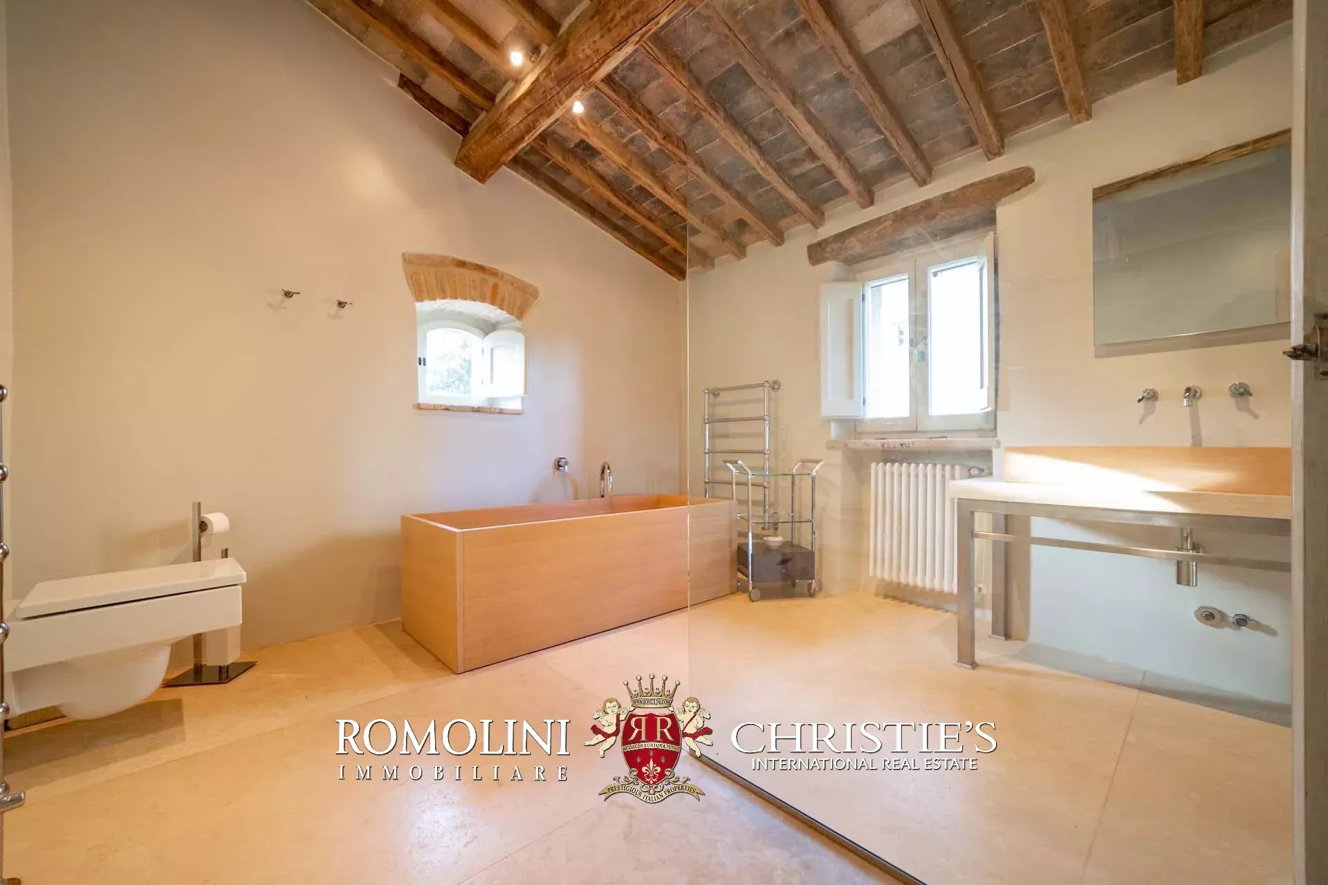 L’edificio è stato interamente ristrutturato per preservarne in carattere rustico, ma aggiungendo elementi moderni ed eleganti che ben si armonizzano col contesto. Le caratteristiche salienti della struttura come travi in legno e pavimenti in cotto sono state mantenute intatte e valorizzate con un sistema di illuminazione led che permette di coglierne i dettagli. Al piano terra, dove un tempo erano le stalle, il soffitto a volte è stato mantenuto e conferisce grande carattere al salone.
