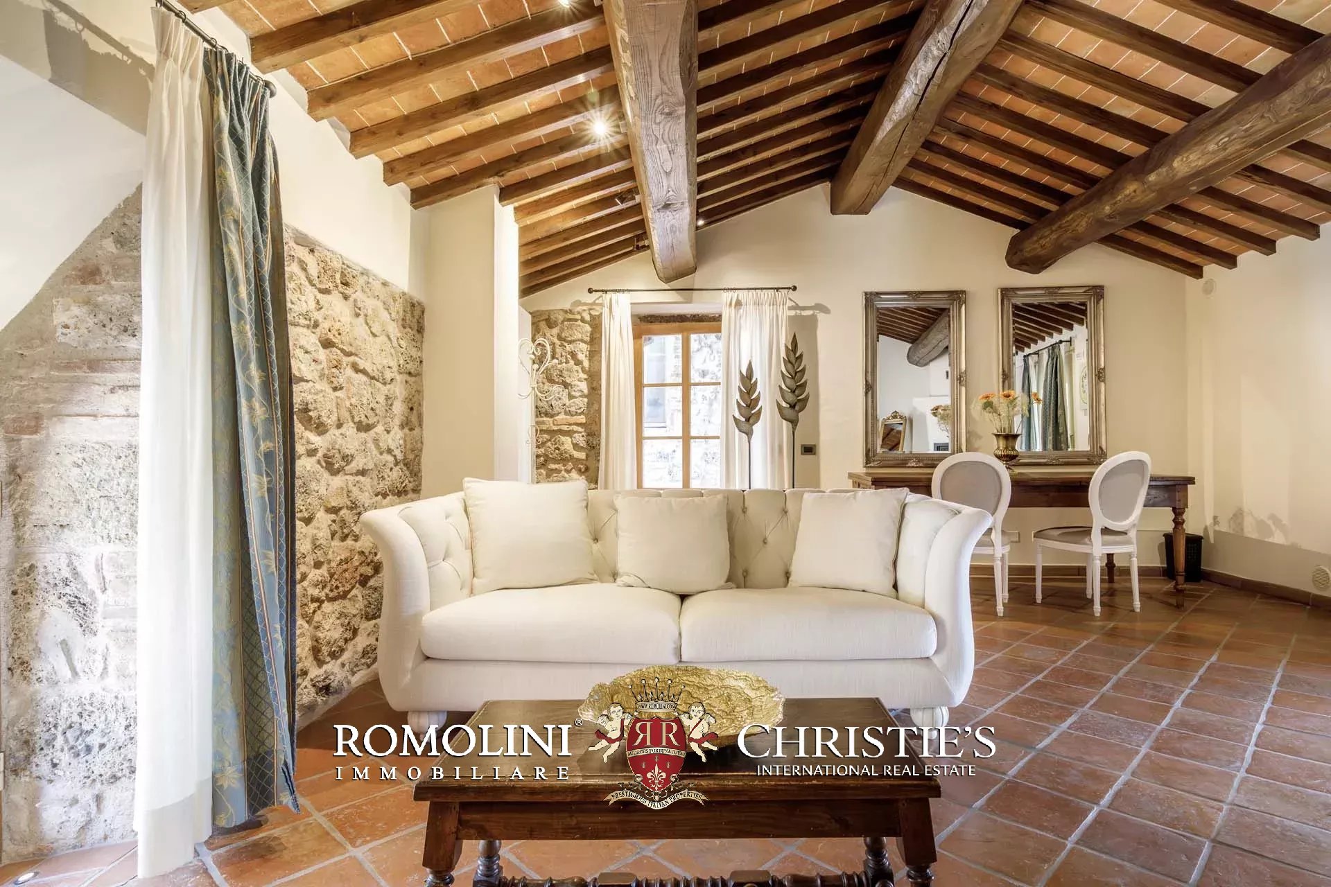 Questo relais è una dimora storica mozzafiato risalente all’anno 1000, situata in posizione panoramica tra Siena e Monteriggioni. Questa prestigiosa proprietà rappresenta una risorsa inestimabile per il territorio, offrendo la sensazione di essere immersi in un parco naturale dove l'architettura umana e la natura si fondono armoniosamente. La tenuta si estende su un totale di 51,7 ettari, di cui circa 2,0 ettari di terreno recintato e 49 ettari di rigoglioso bosco. L'accesso alla proprietà avviene tramite un'antica strada riconosciuta come parte della complessa rete della Via Francigena.