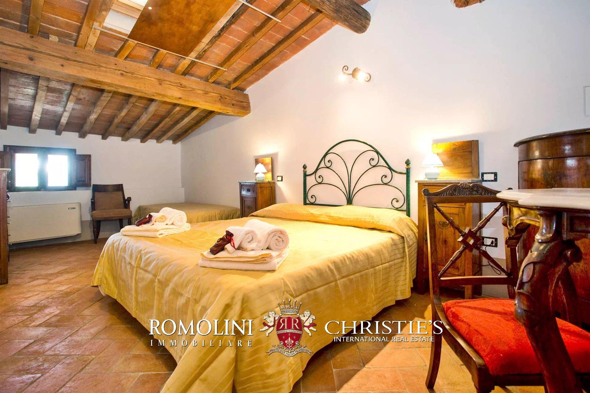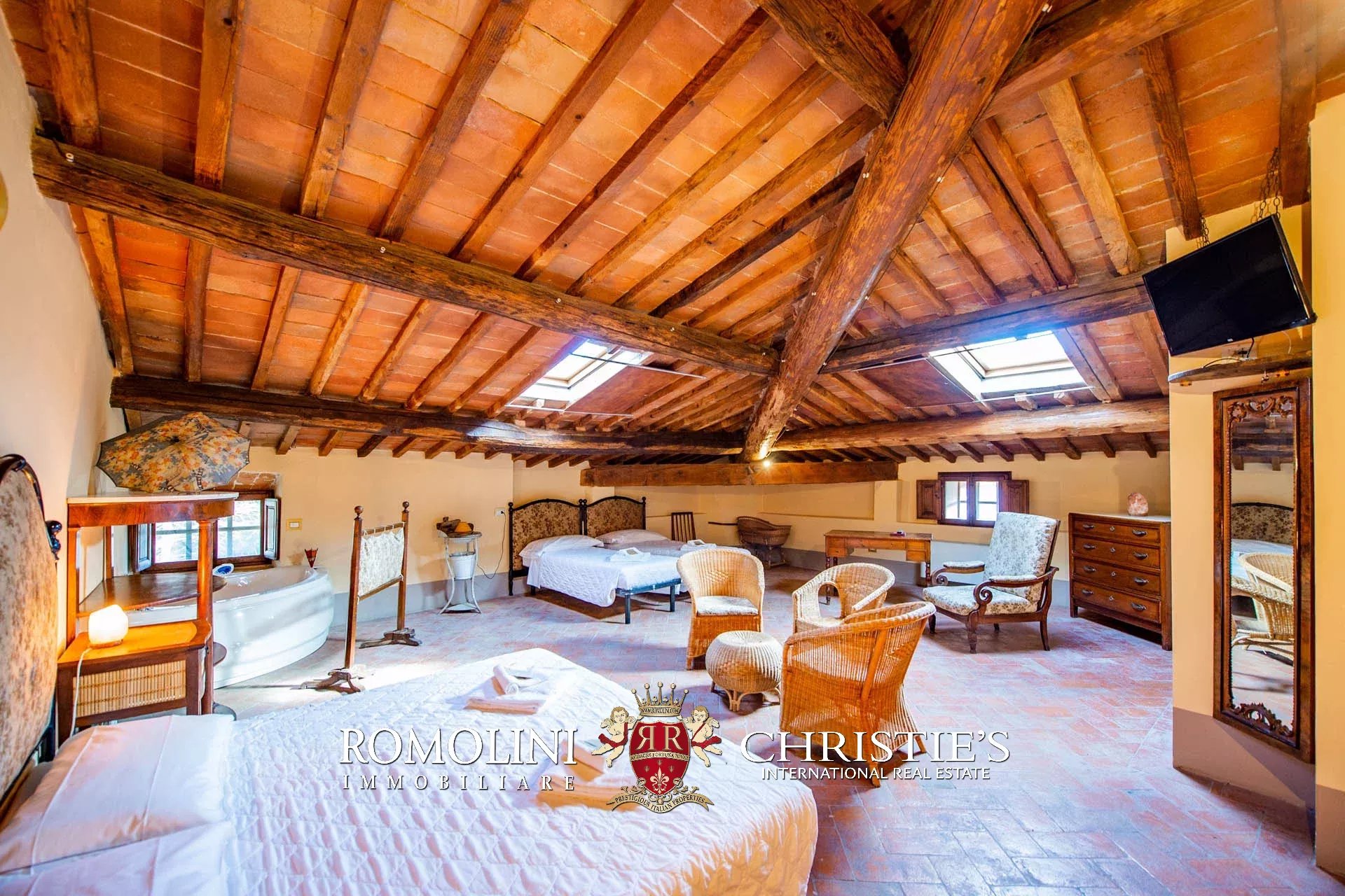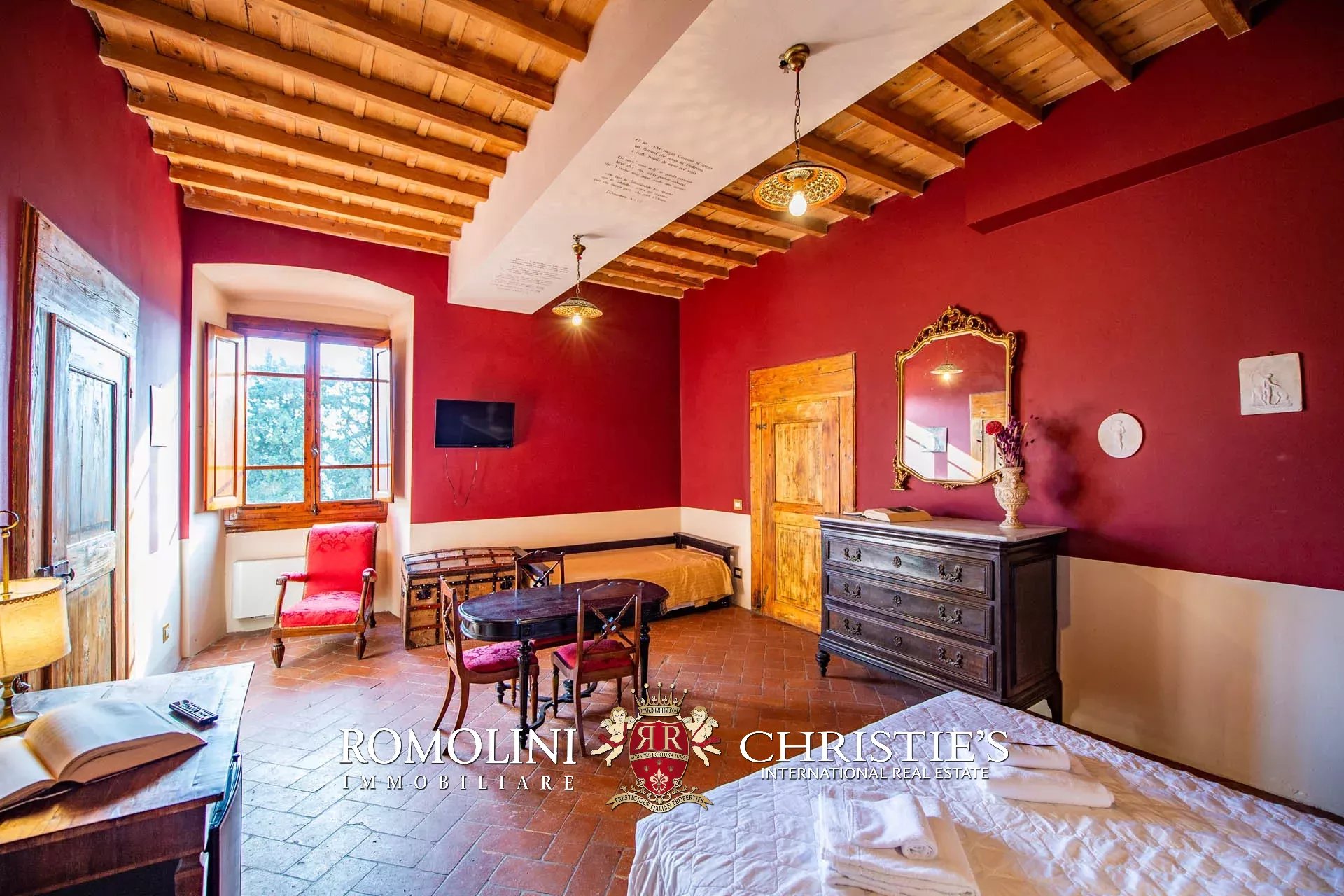 Sulle colline della Toscana, appena fuori da un paese a meno di mezz’ora da Firenze, villa storica convertita in boutique hotel con piscina e centro benessere. La struttura (2.230 m²) offre oggi ben 22 camere, un ristorante con spazio esterno e dei bellissimi saloni per eventi e cerimonie. I 3,8 ettari di terreno includono un elegante giardino all’italiana, zona piscina con solarium e un grande oliveto.