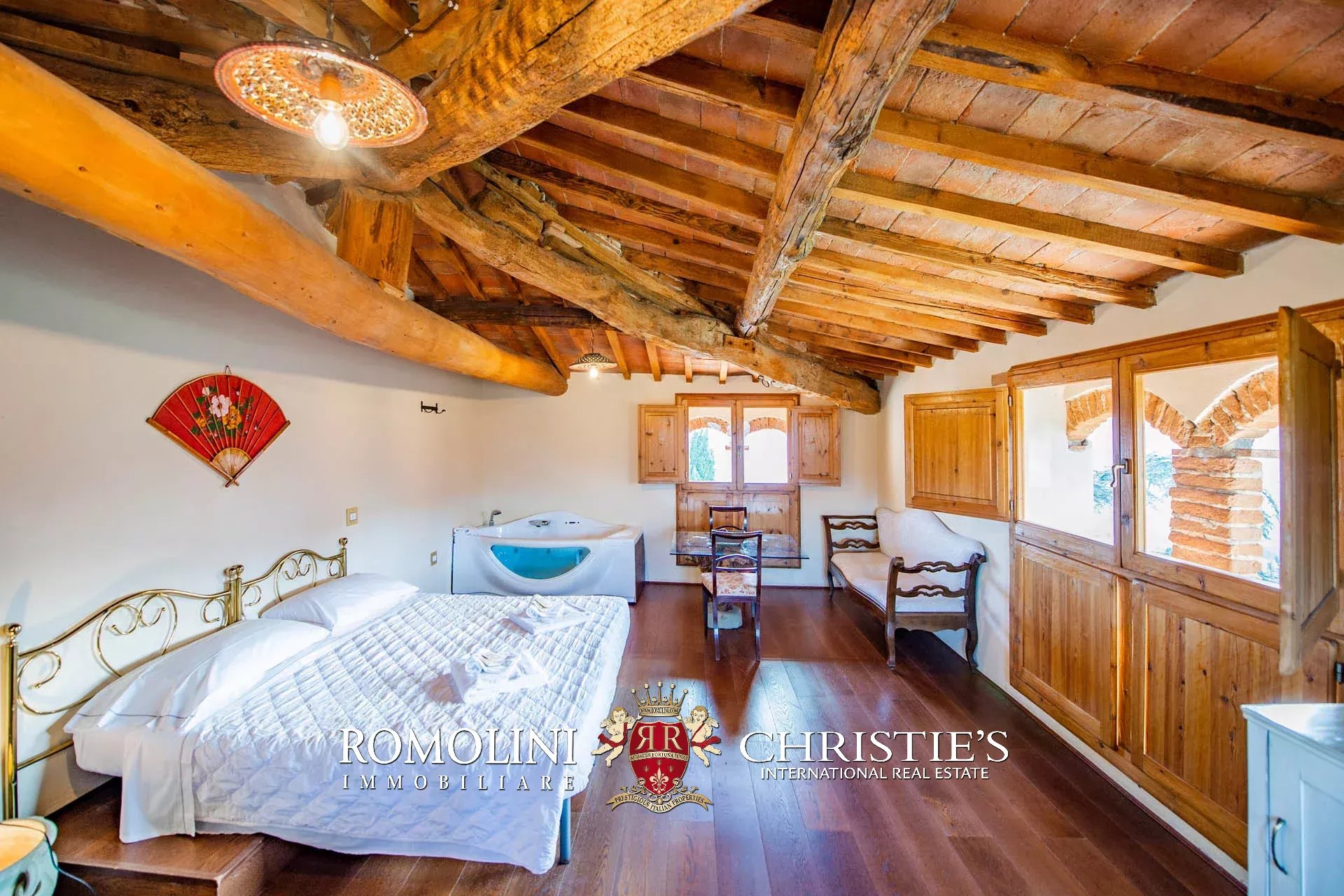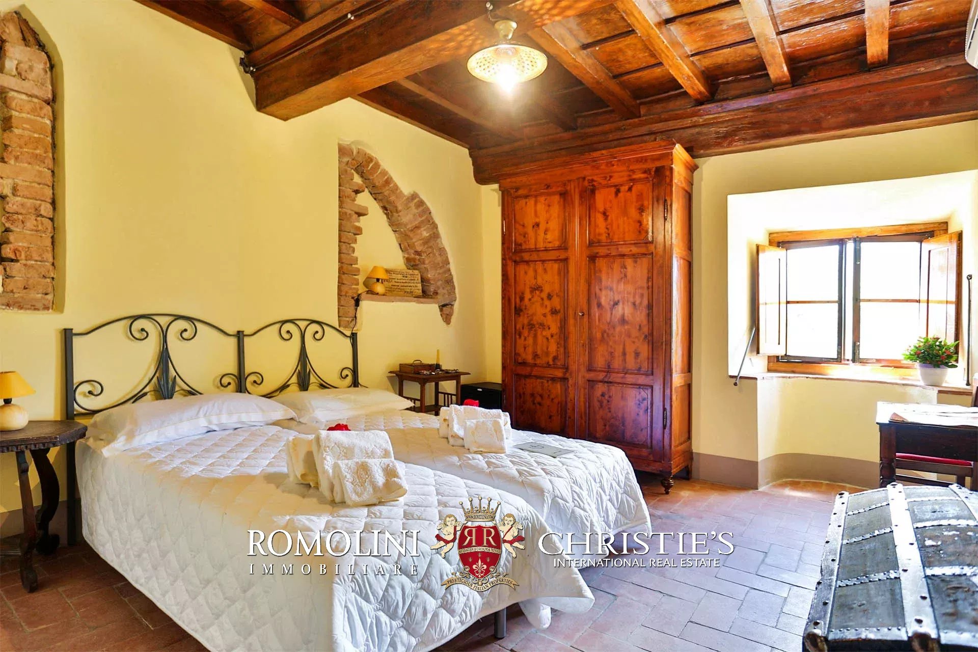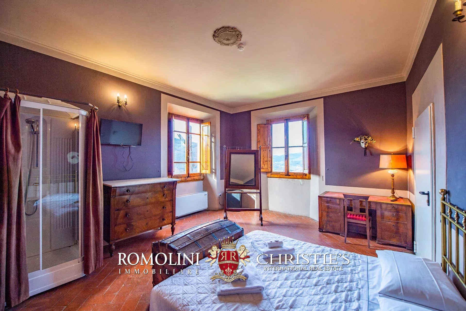 Sulle colline della Toscana, appena fuori da un paese a meno di mezz’ora da Firenze, villa storica convertita in boutique hotel con piscina e centro benessere. La struttura (2.230 m²) offre oggi ben 22 camere, un ristorante con spazio esterno e dei bellissimi saloni per eventi e cerimonie. I 3,8 ettari di terreno includono un elegante giardino all’italiana, zona piscina con solarium e un grande oliveto.