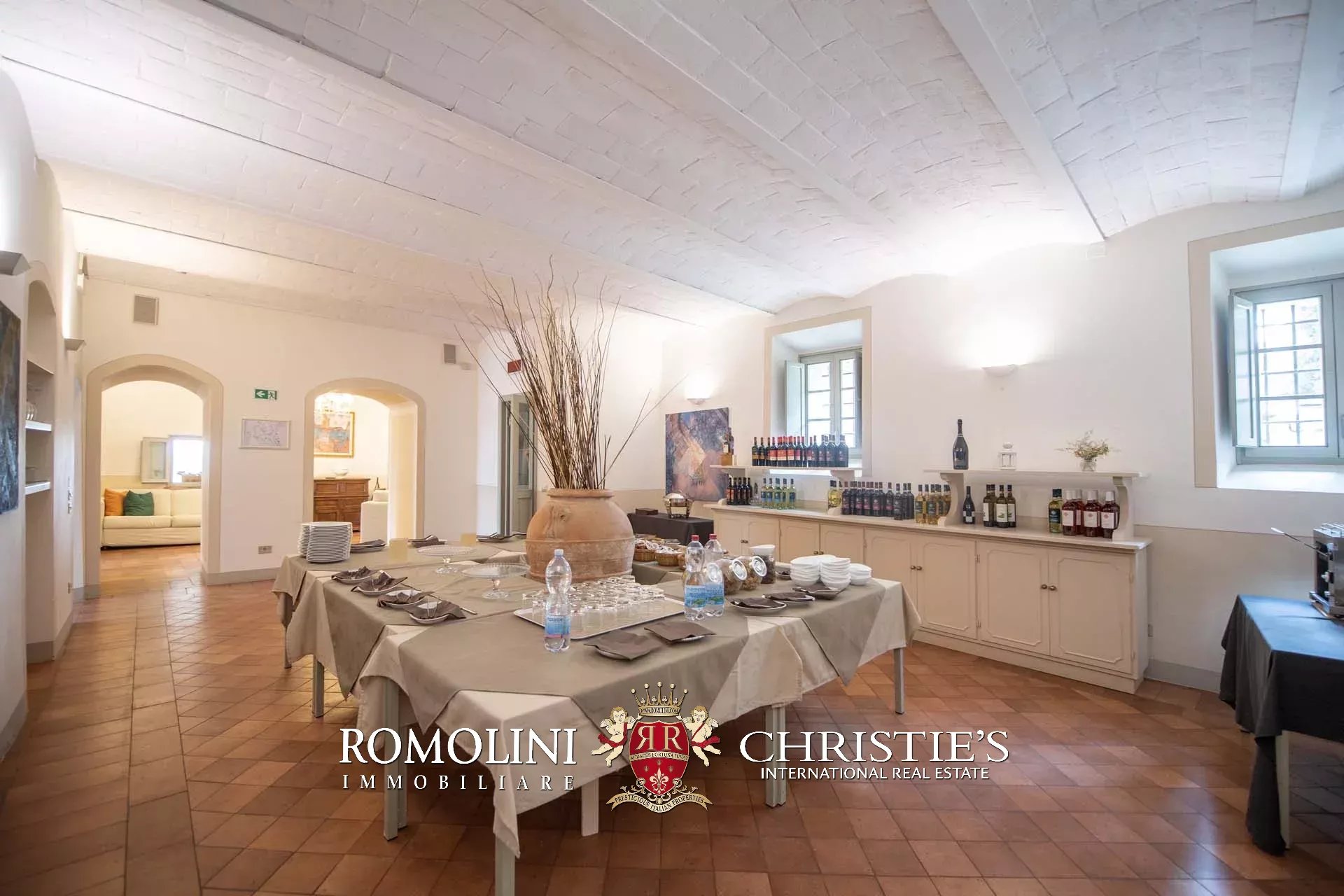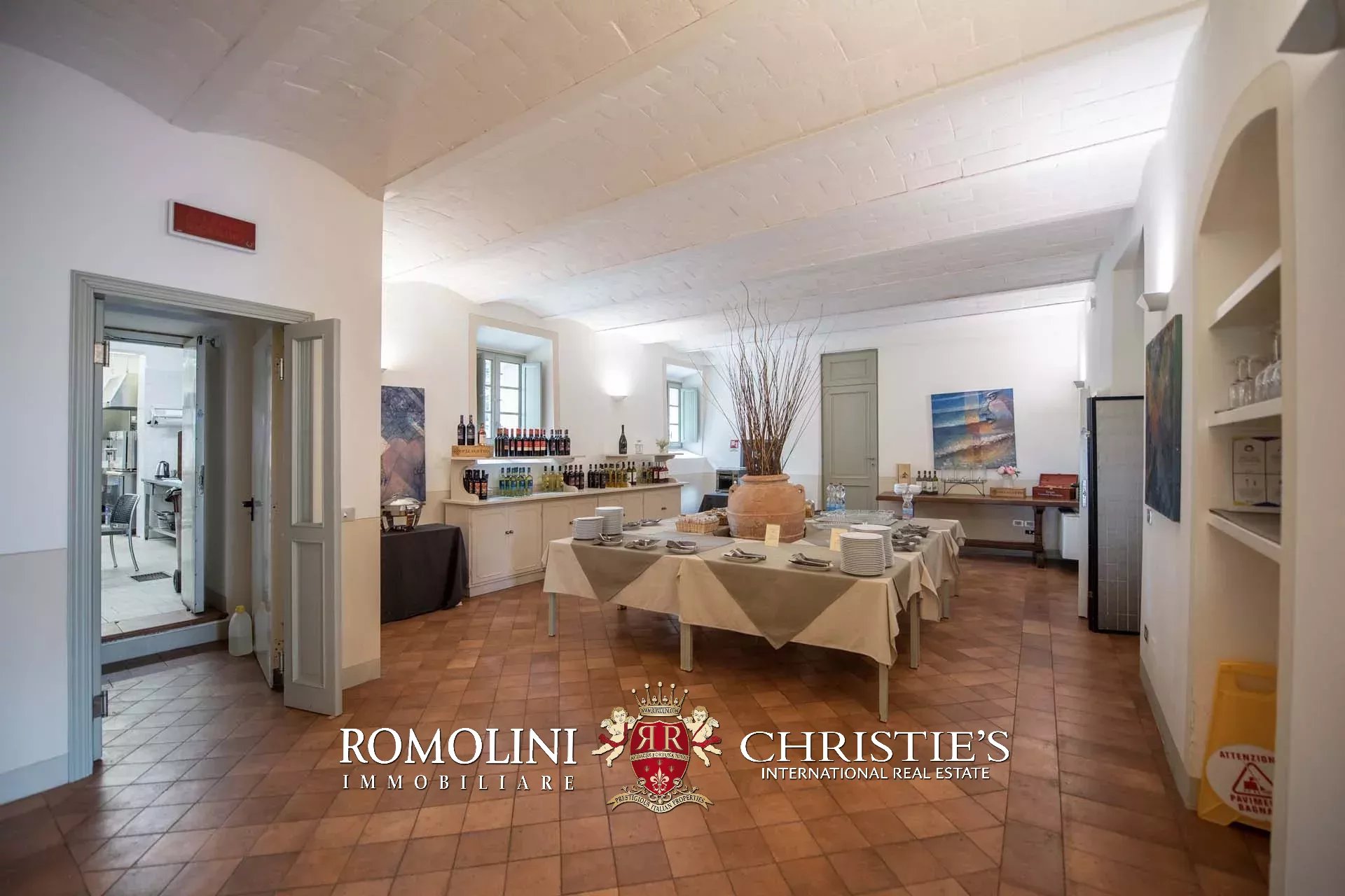 L’hotel (935 m², 21 camere e 24 bagni) si snoda su quattro piani in totale. Al piano terra si trovano le zone comuni della struttura, che includono la reception, vari salotti per gli ospiti, la cucina professionale con dispensa e bagno per i dipendenti, due grandi sale colazione (o ristorante), una spaziosa veranda (85 m²) i bagni di servizio per gli ospiti, un ufficio privato (con accesso indipendente dall’esterno) e un bar. In un alata separata del piano terra, con accesso separato, si trovano poi le prime due camere con bagno privato. Scendendo nel seminterrato si accede alle cantine storiche, costituite da una serie di ambienti in muratura con dei caratteristici soffitti voltati.