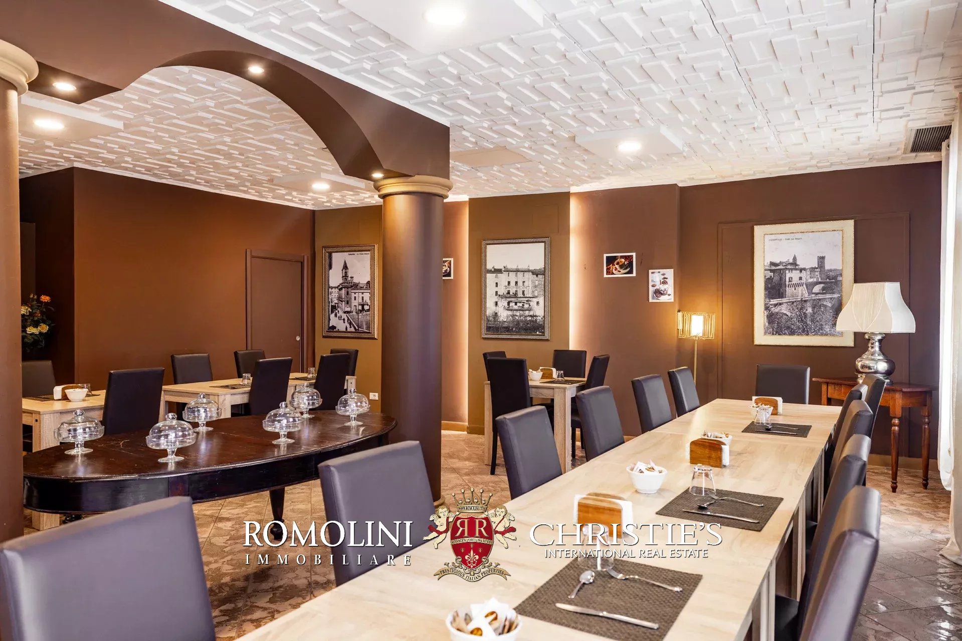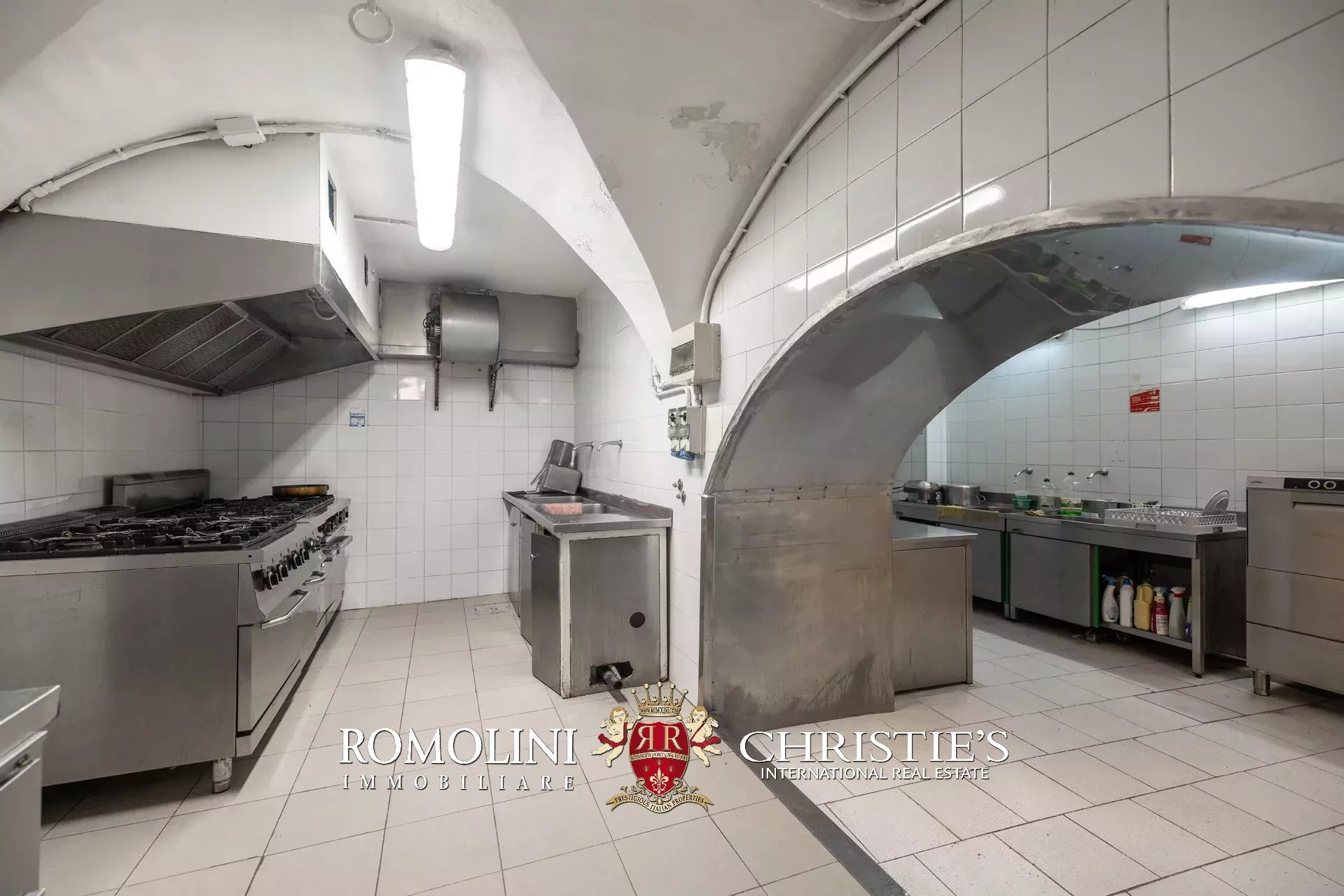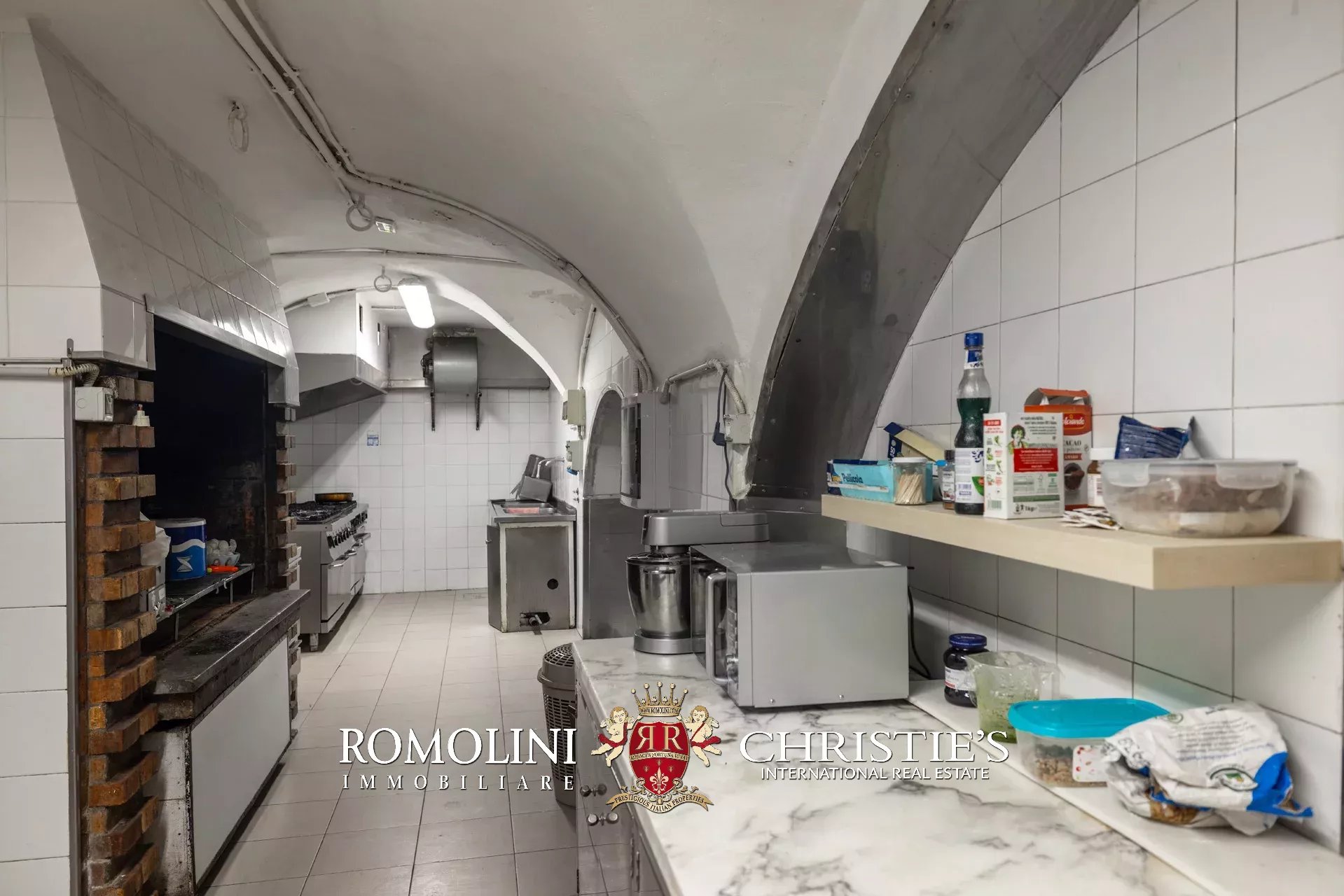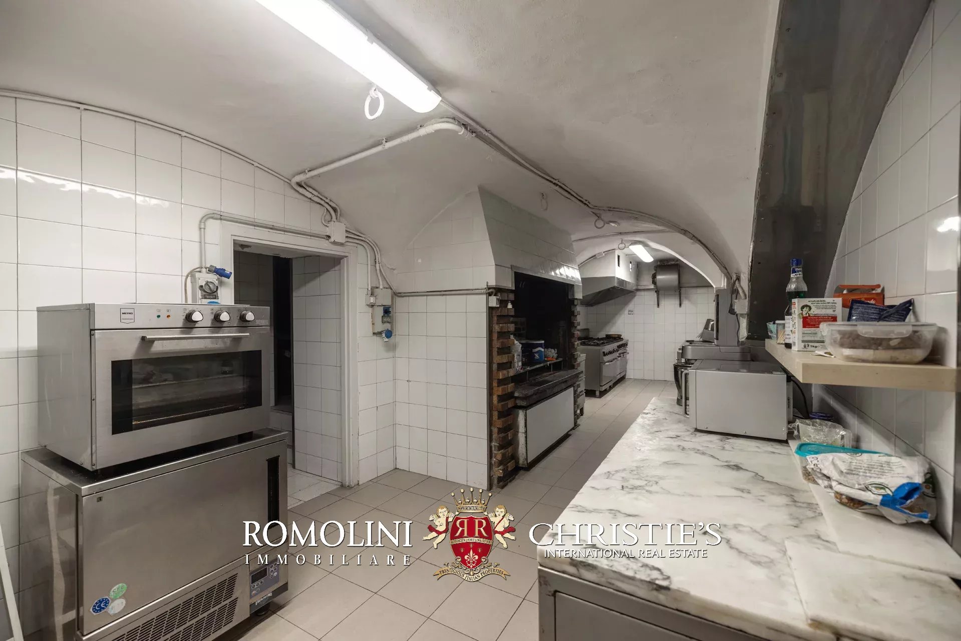 - Seminterrato: grande cucina professionale dotata di tutte le attrezzature necessarie e di tutti i confort (es. montascale per piatti e cella frigo), locali tecnici per gli impianti, lavanderia, magazzini e bagni;