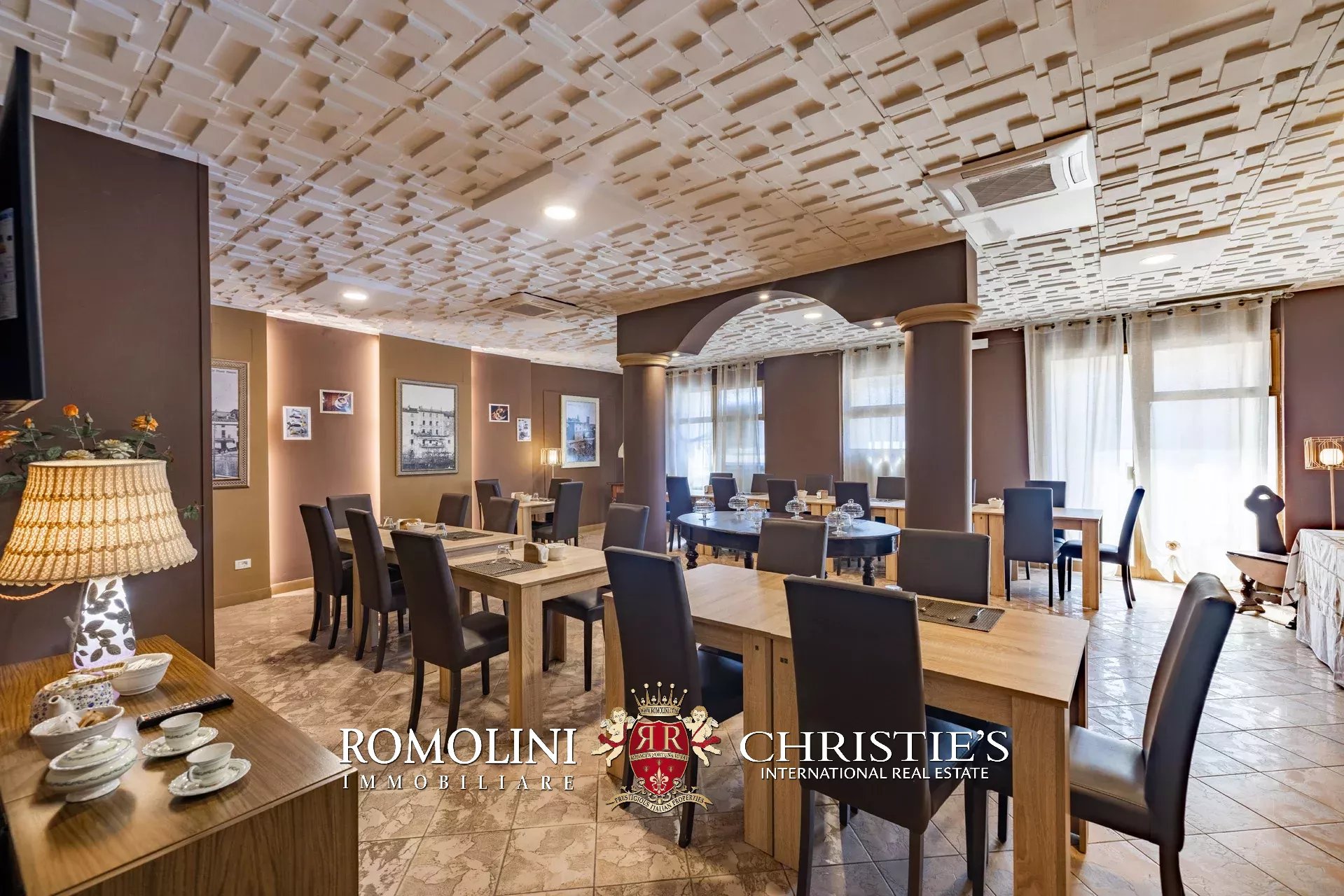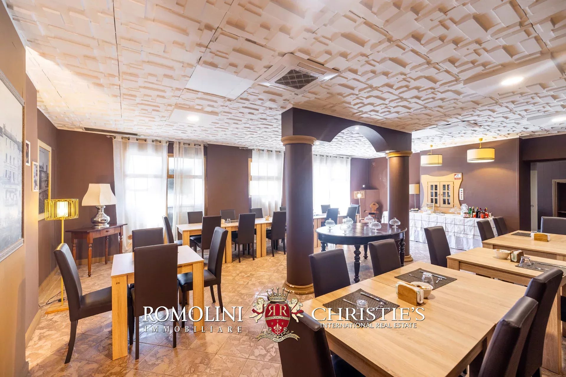 - Piano terra: hall, reception, bar e sala da pranzo;
