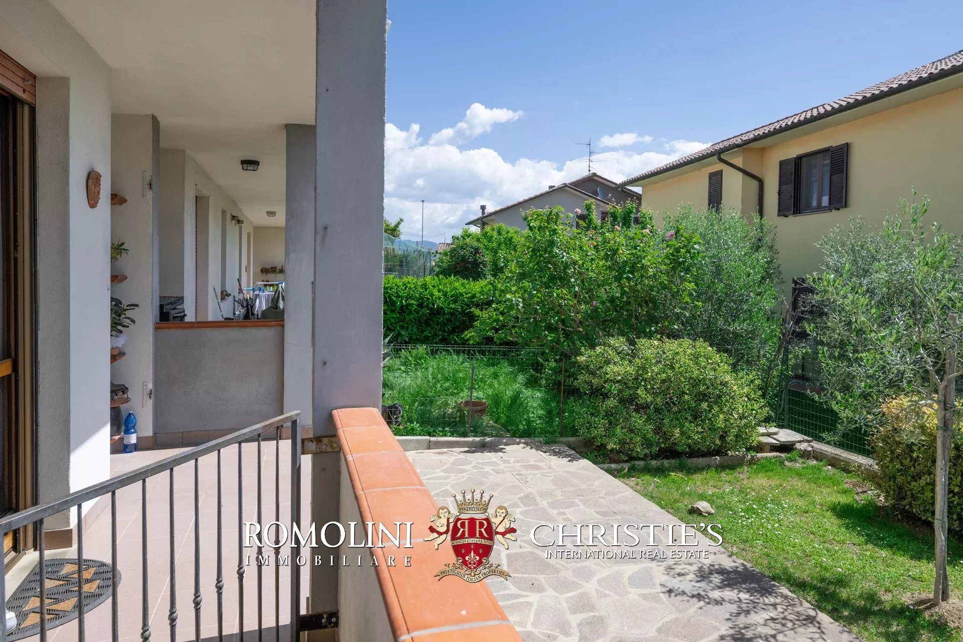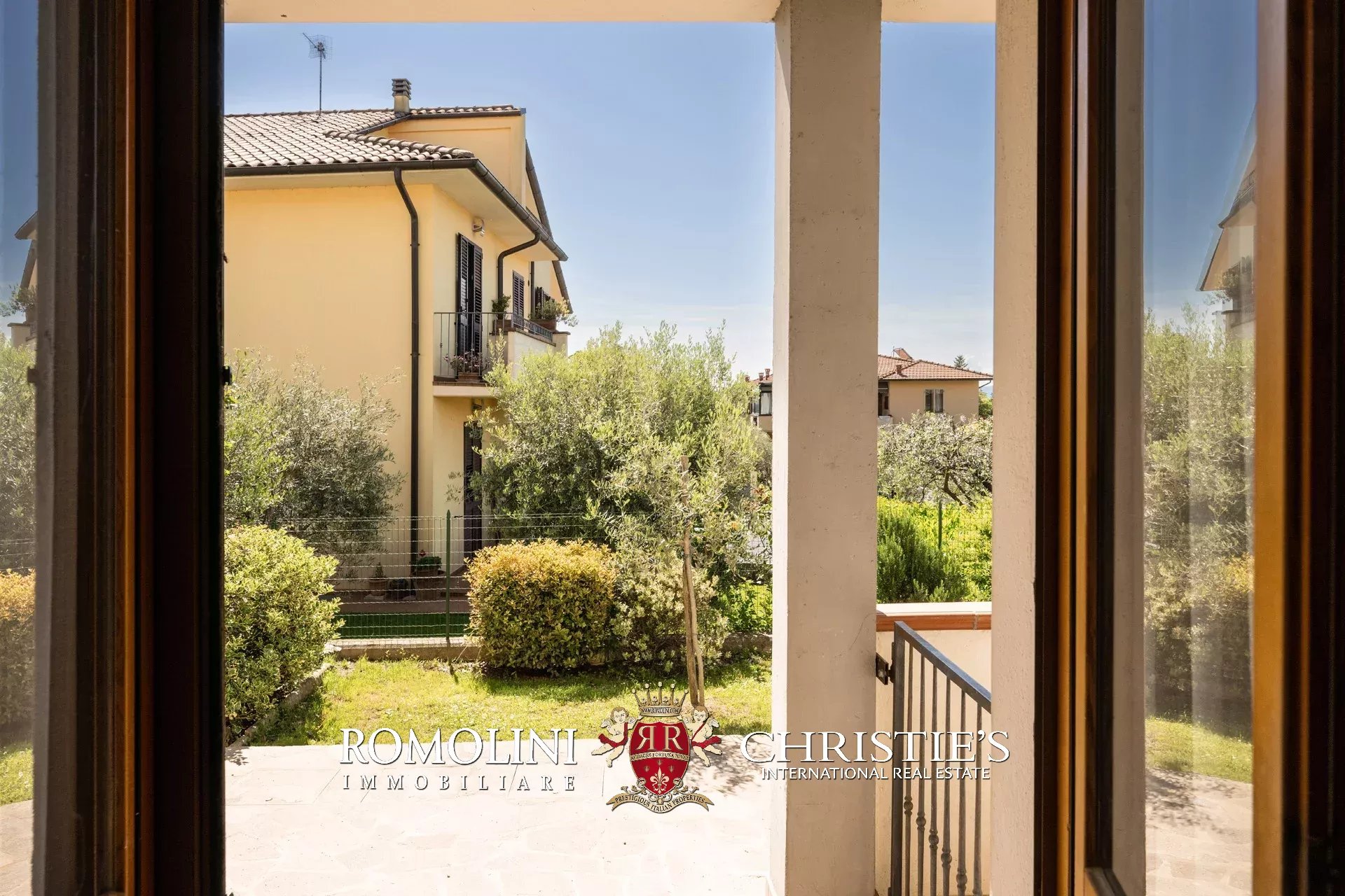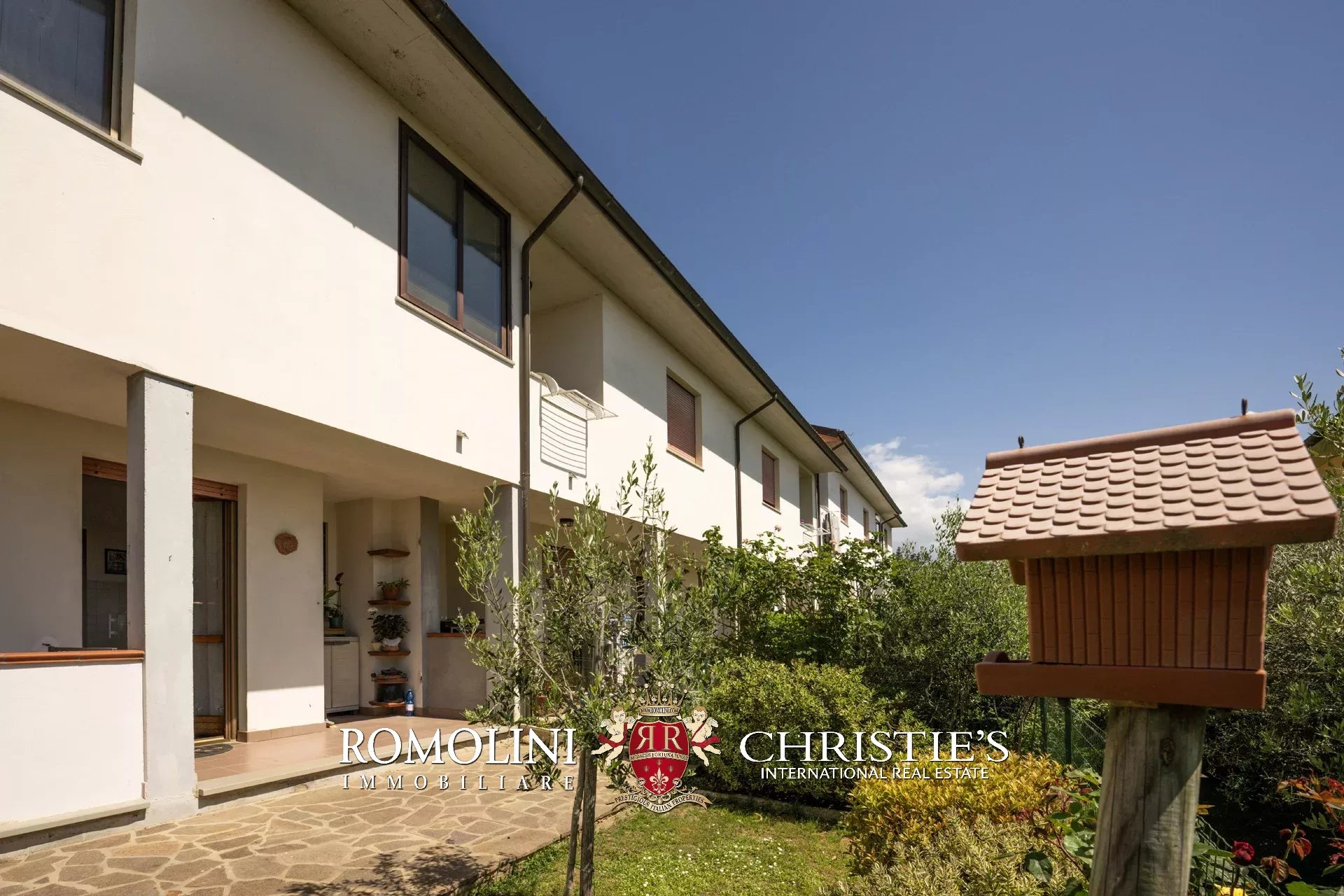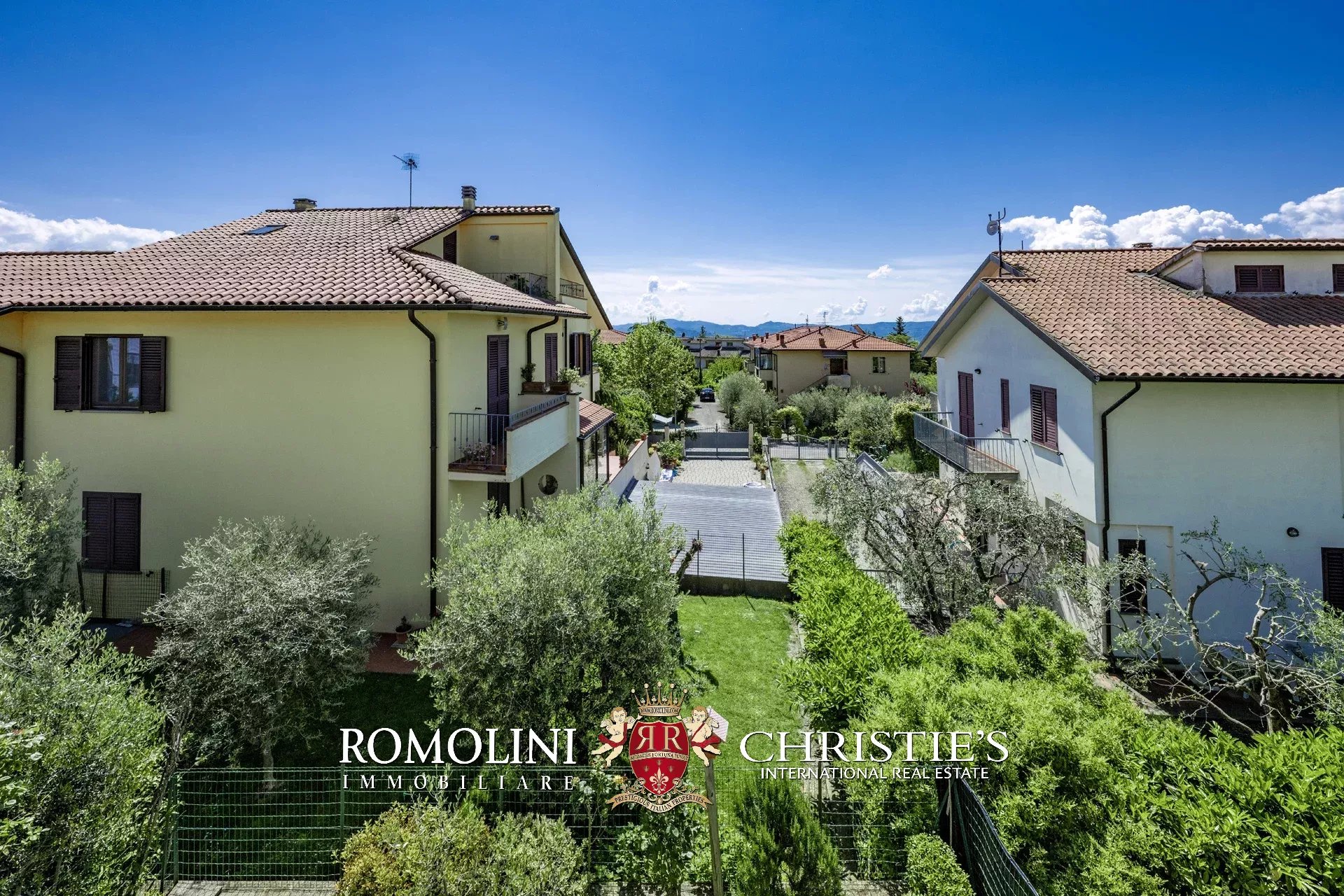 In posizione panoramica e privilegiata, all’estremità di un elegante complesso plurifamiliare, villetta a schiera con giardino privato in vendita. Libera su tre lati e dotata di accessi indipendenti da ogni fronte, la proprietà si sviluppa su tre livelli per una superficie complessiva di circa 200 mq.
