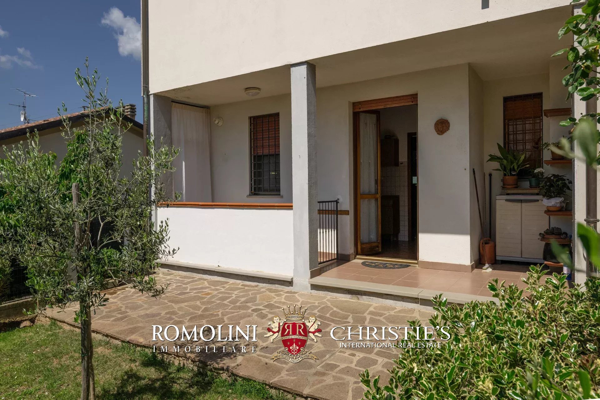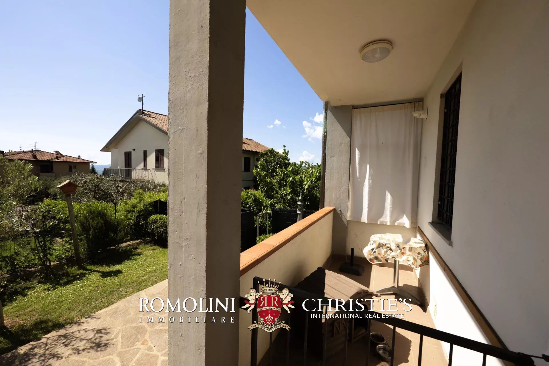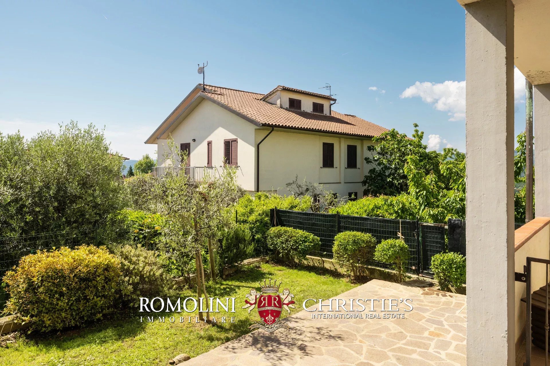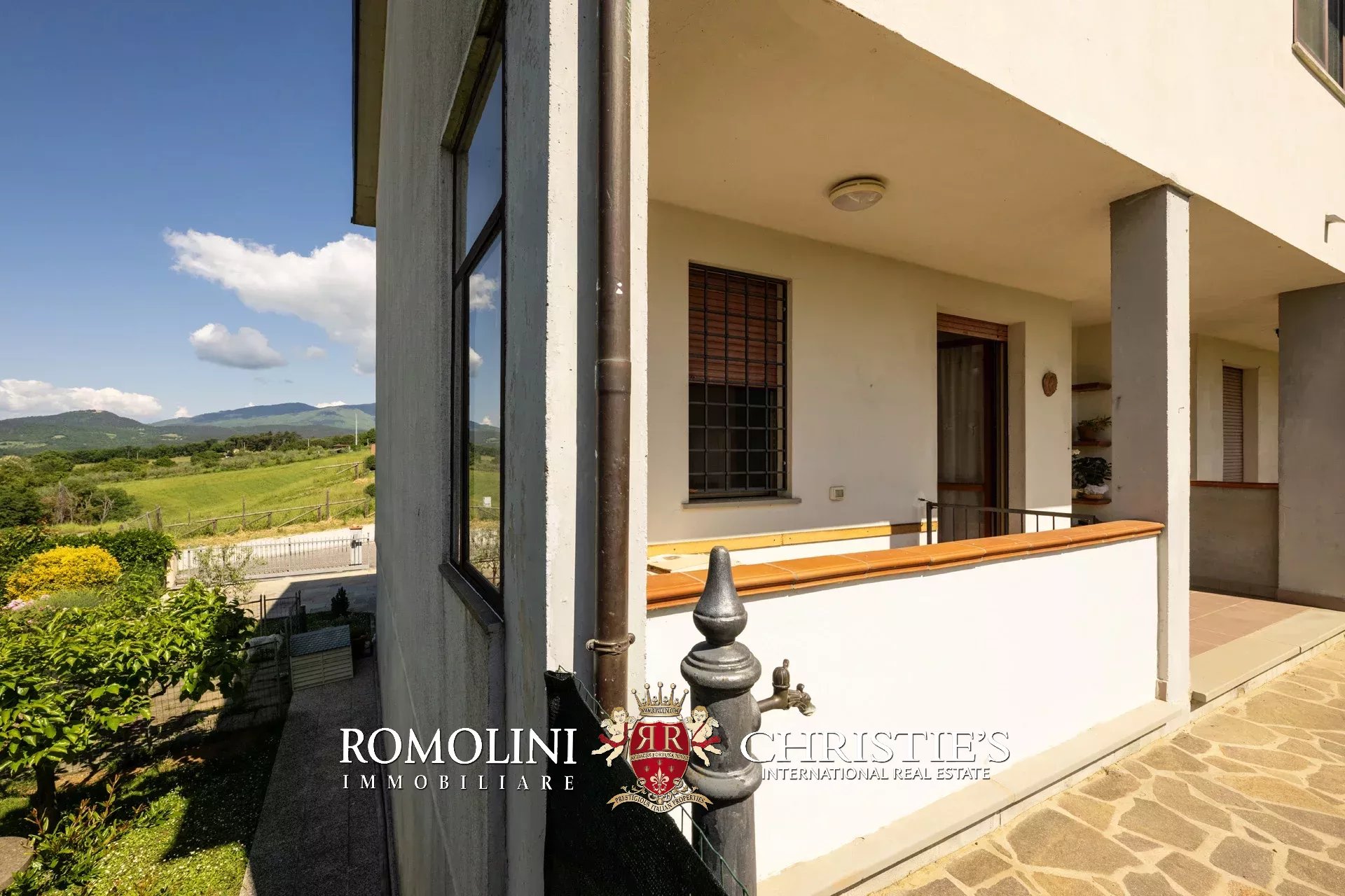 In posizione panoramica e privilegiata, all’estremità di un elegante complesso plurifamiliare, villetta a schiera con giardino privato in vendita. Libera su tre lati e dotata di accessi indipendenti da ogni fronte, la proprietà si sviluppa su tre livelli per una superficie complessiva di circa 200 mq.
