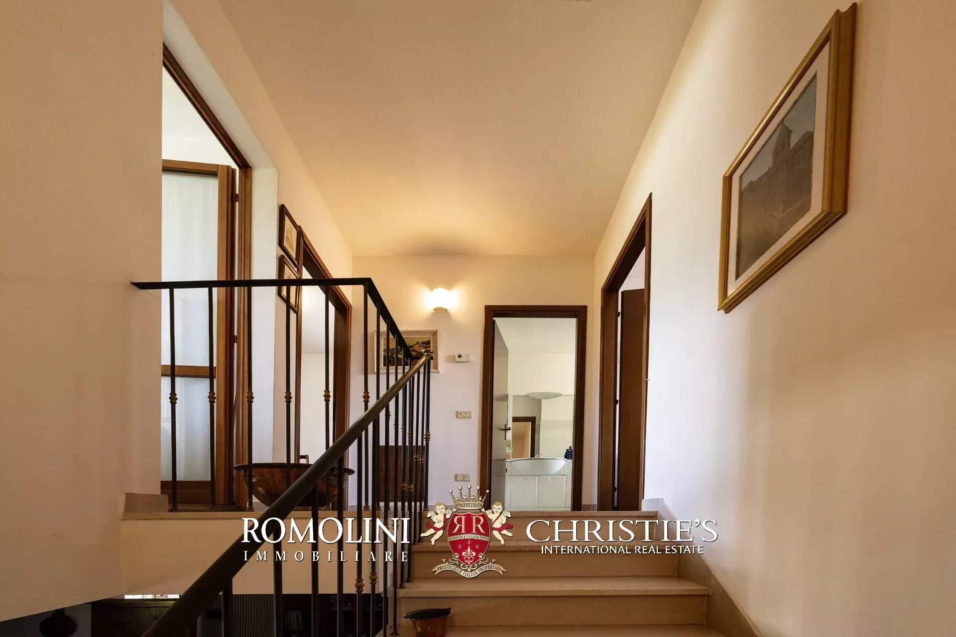 Il primo piano ospita due camere, un ampio e luminoso bagno con doccia idromassaggio, un’ulteriore area multifunzionale, una pratica zona lavanderia e due terrazze con splendidi affacci sul paesaggio circostante. Dal primo piano si accede al sottotetto, uno spazio versatile da destinare a deposito o ad eventuali utilizzi accessori.