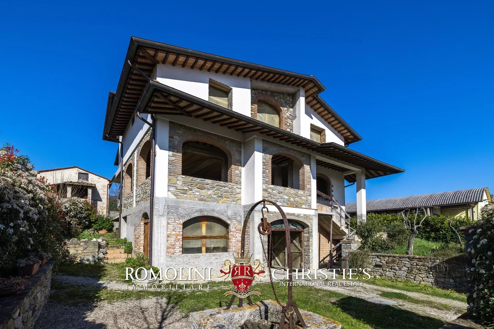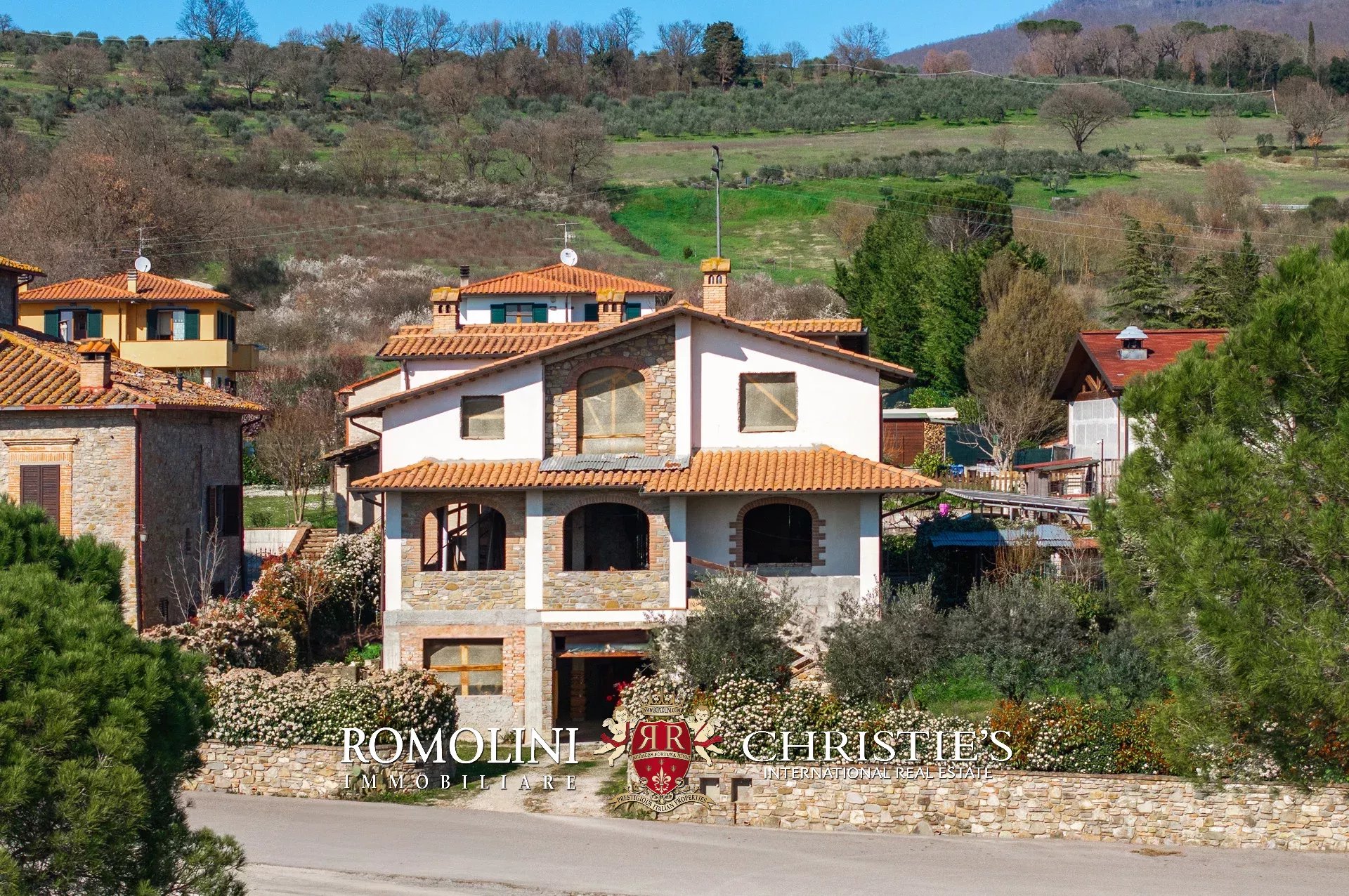 Alla periferia di Sansepolcro, in una tranquilla zona residenziale, casa da completare in vendita. L'immobile (301 mq) è attualmente allo stato di grezzo edilizio e pertanto l'acquirente avrà massima libertà sul layout interno. L'edificio, su tre piani, è realizzato interamente in cemento armato con facciate in pietra a vista. A livello di impiantistica sono già predisposte le forassiti per i collegamenti elettrici, fosse biologiche e pozzo per irrigazione del giardino. La casa era stata pensata con la seguente distribuzione degli spazi: