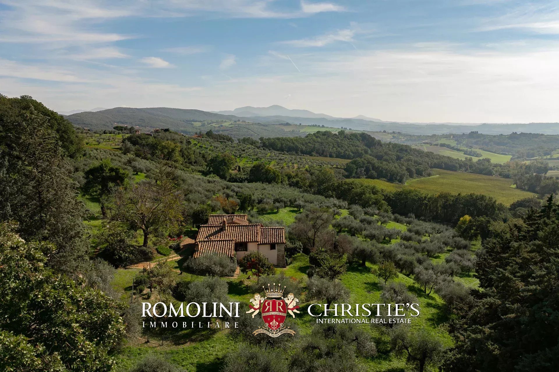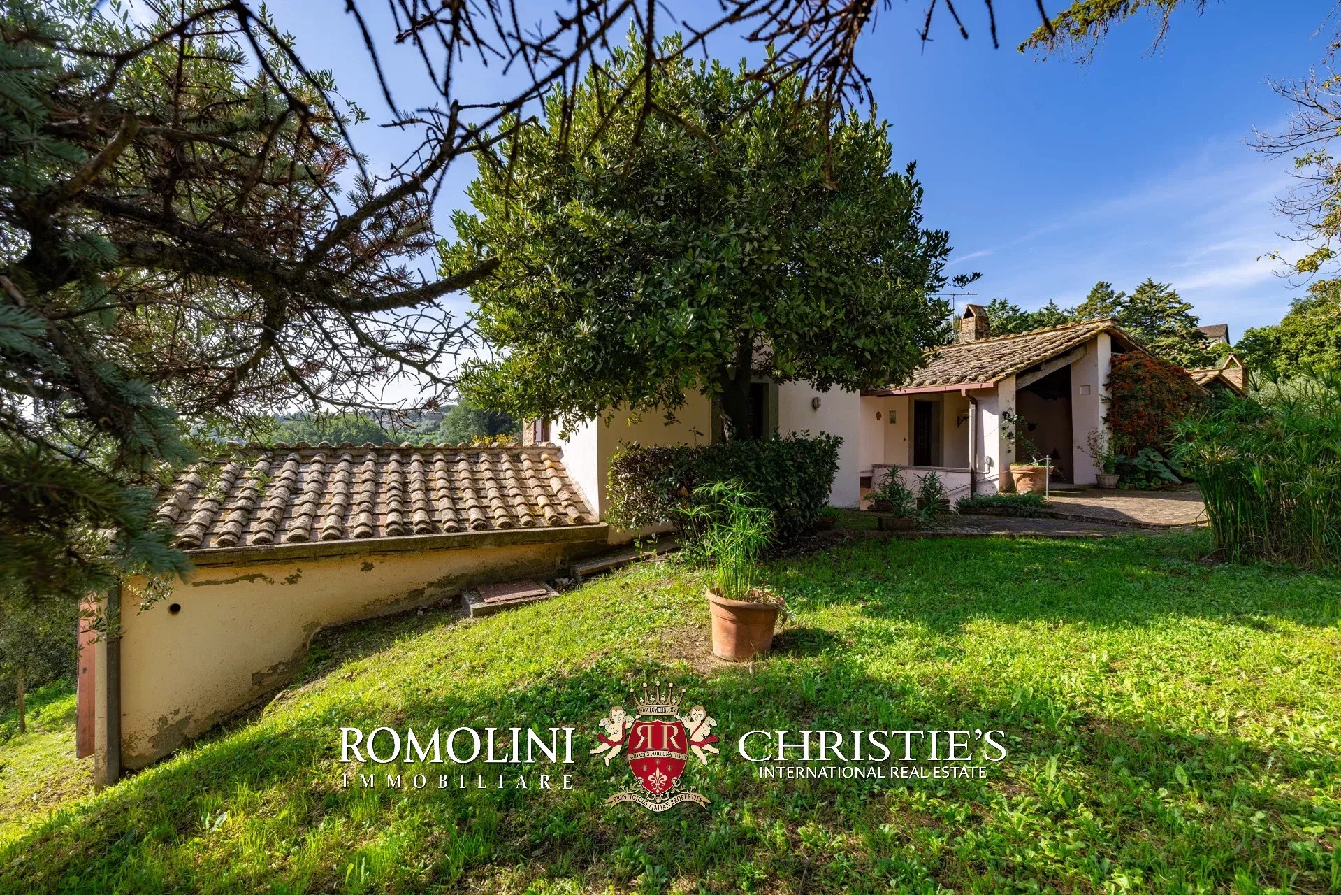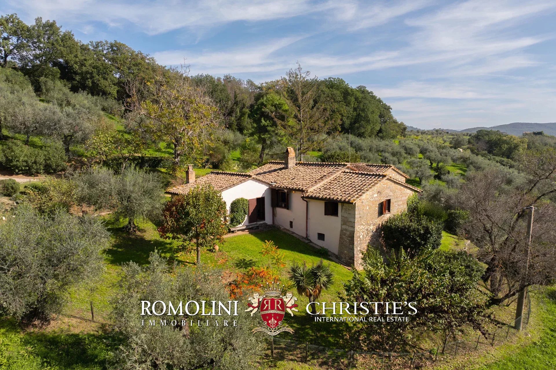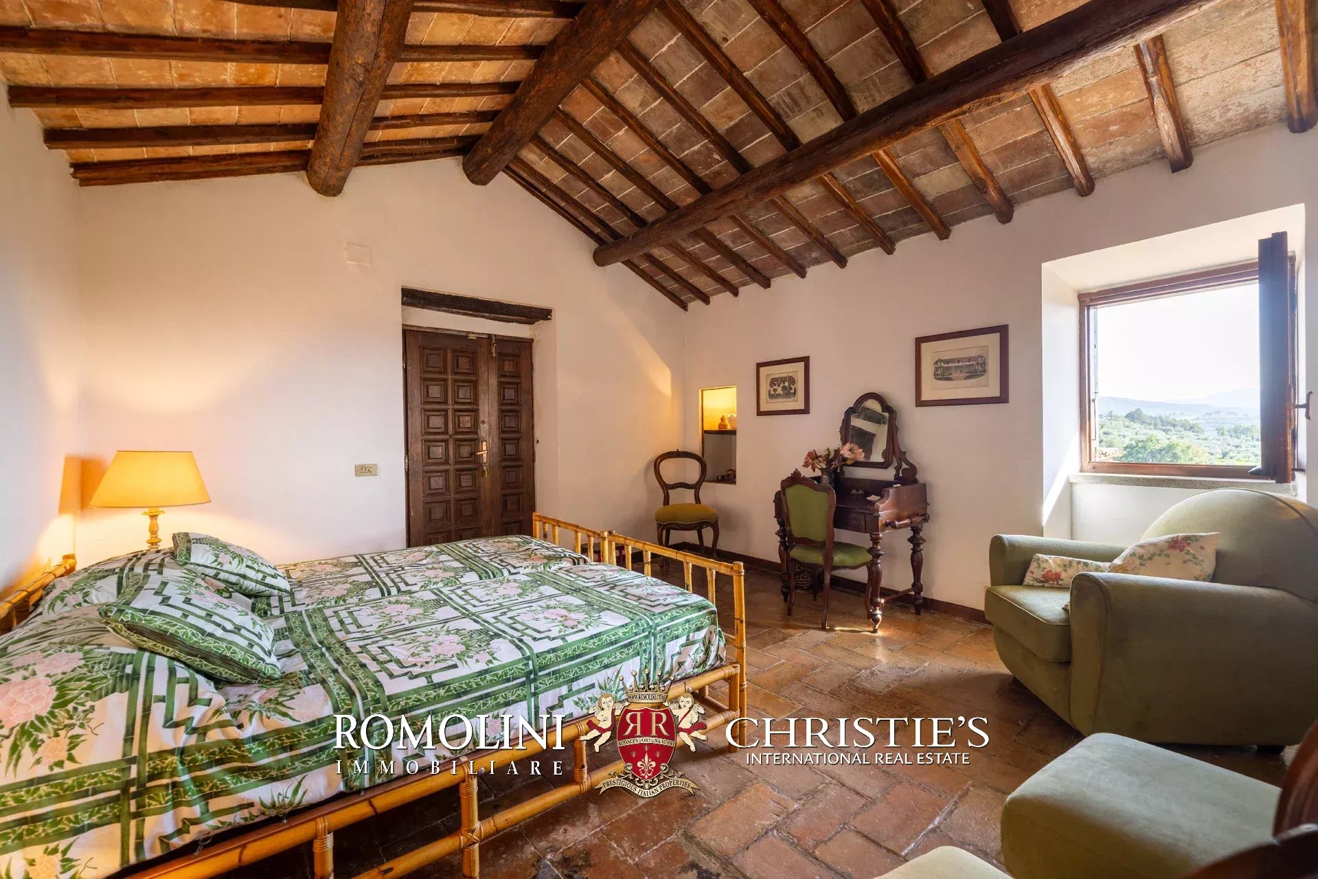 L’abitazione (266 m²), accogliente e strutturata negli anni Novanta in modo garbato nel rispetto dello stile originale, si sviluppa su due livelli ed è strutturata attorno a una torre di avvistamento del Seicento. L’ingresso avviene attraverso un ampio portico con un suggestivo tavolo in pietra peperino e un grande forno a legna, ideale per cene all’aperto. Da qui si accede a un luminoso salone con camino in pietra, caratterizzato da panorami che si aprono su due lati opposti. Adiacente al salone si trova una cucina abitabile in muratura, completa di camino, decorazioni in maiolica e spaziosi piani di lavoro.