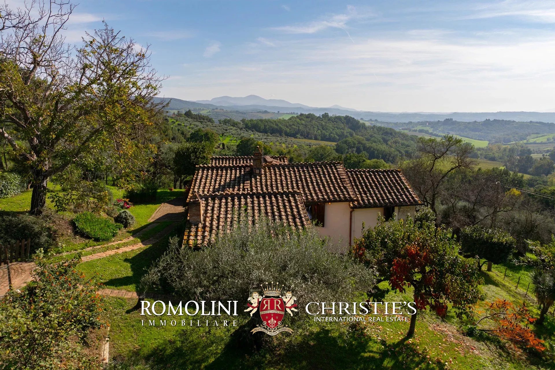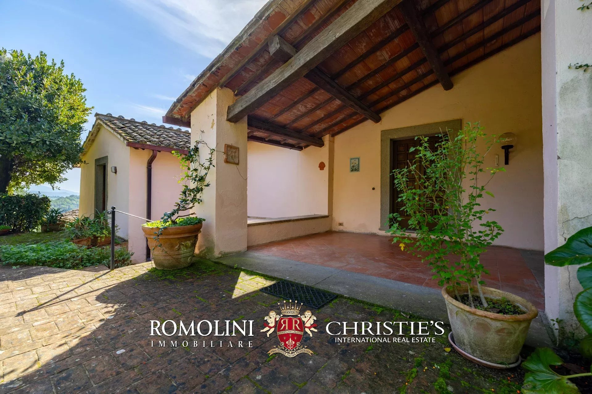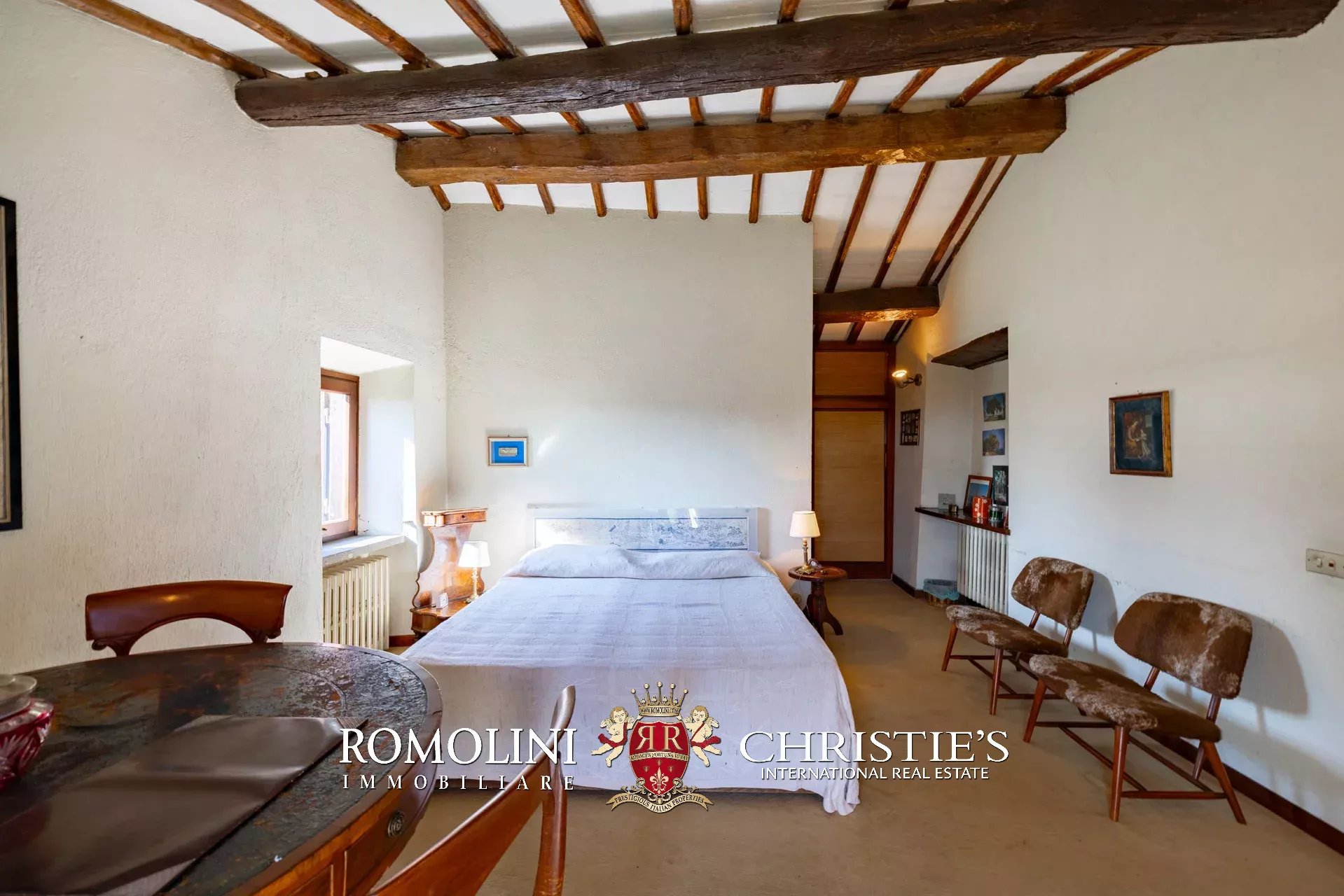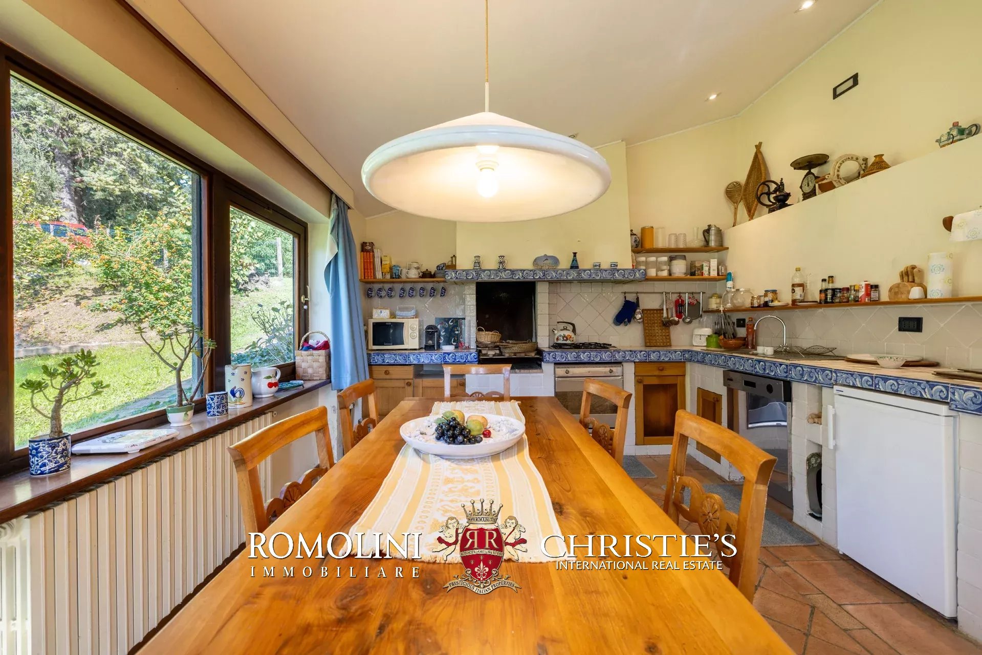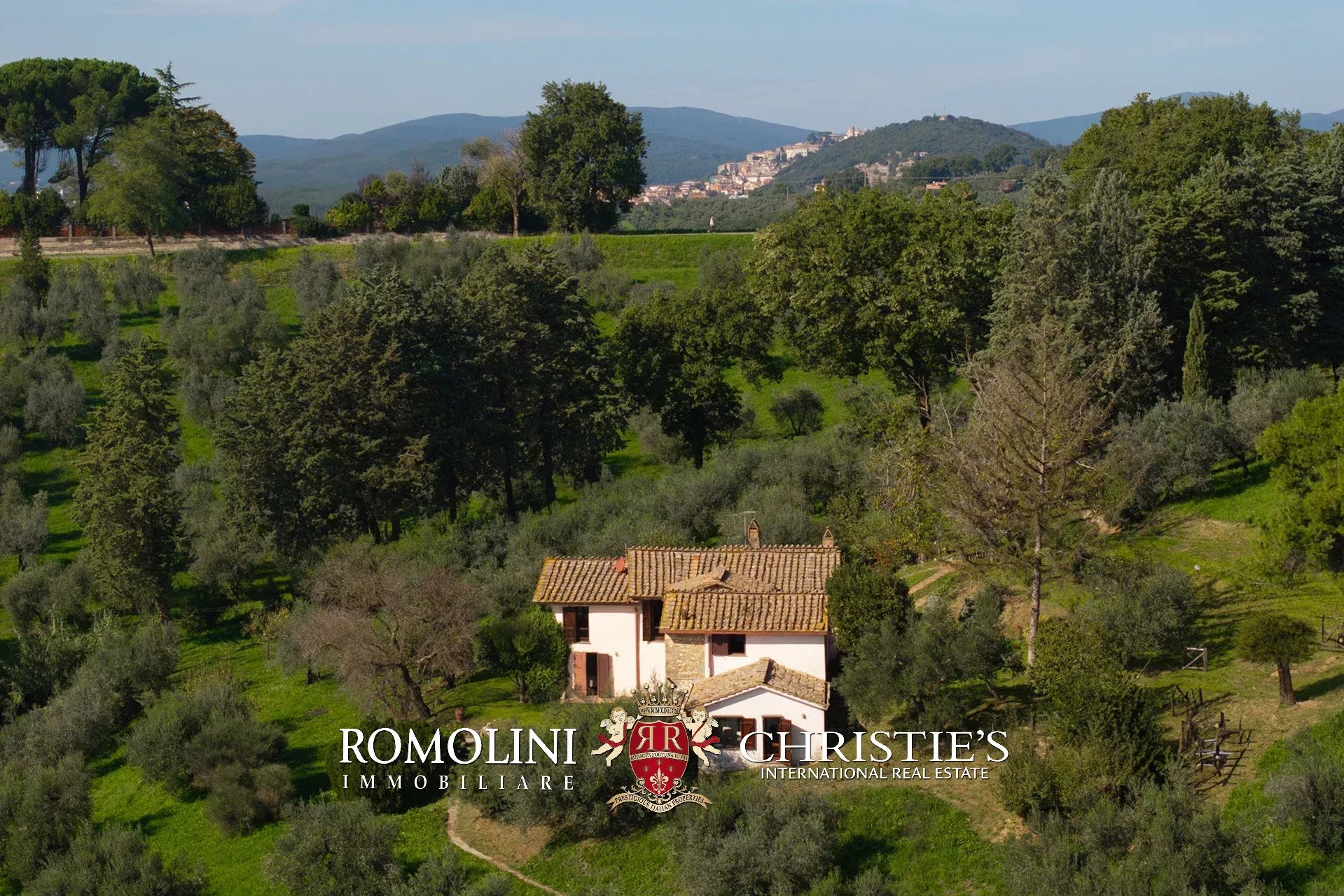 L’abitazione (266 m²), accogliente e strutturata negli anni Novanta in modo garbato nel rispetto dello stile originale, si sviluppa su due livelli ed è strutturata attorno a una torre di avvistamento del Seicento. L’ingresso avviene attraverso un ampio portico con un suggestivo tavolo in pietra peperino e un grande forno a legna, ideale per cene all’aperto. Da qui si accede a un luminoso salone con camino in pietra, caratterizzato da panorami che si aprono su due lati opposti. Adiacente al salone si trova una cucina abitabile in muratura, completa di camino, decorazioni in maiolica e spaziosi piani di lavoro.