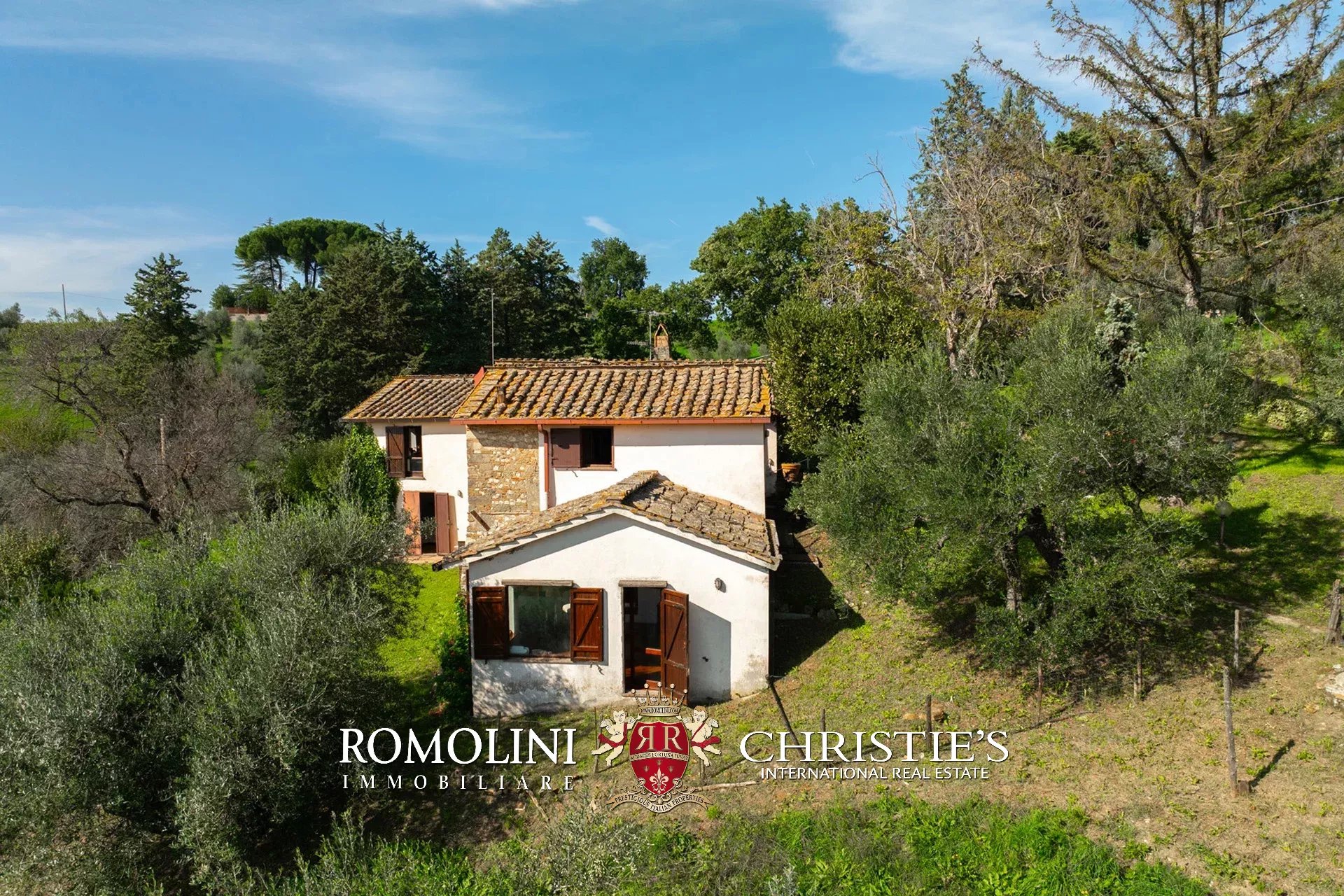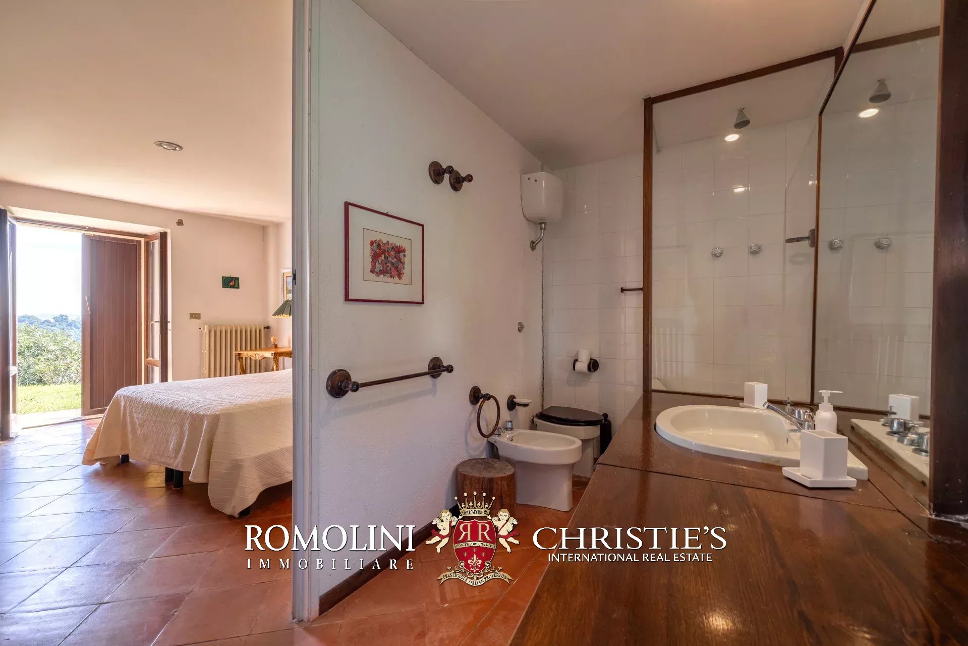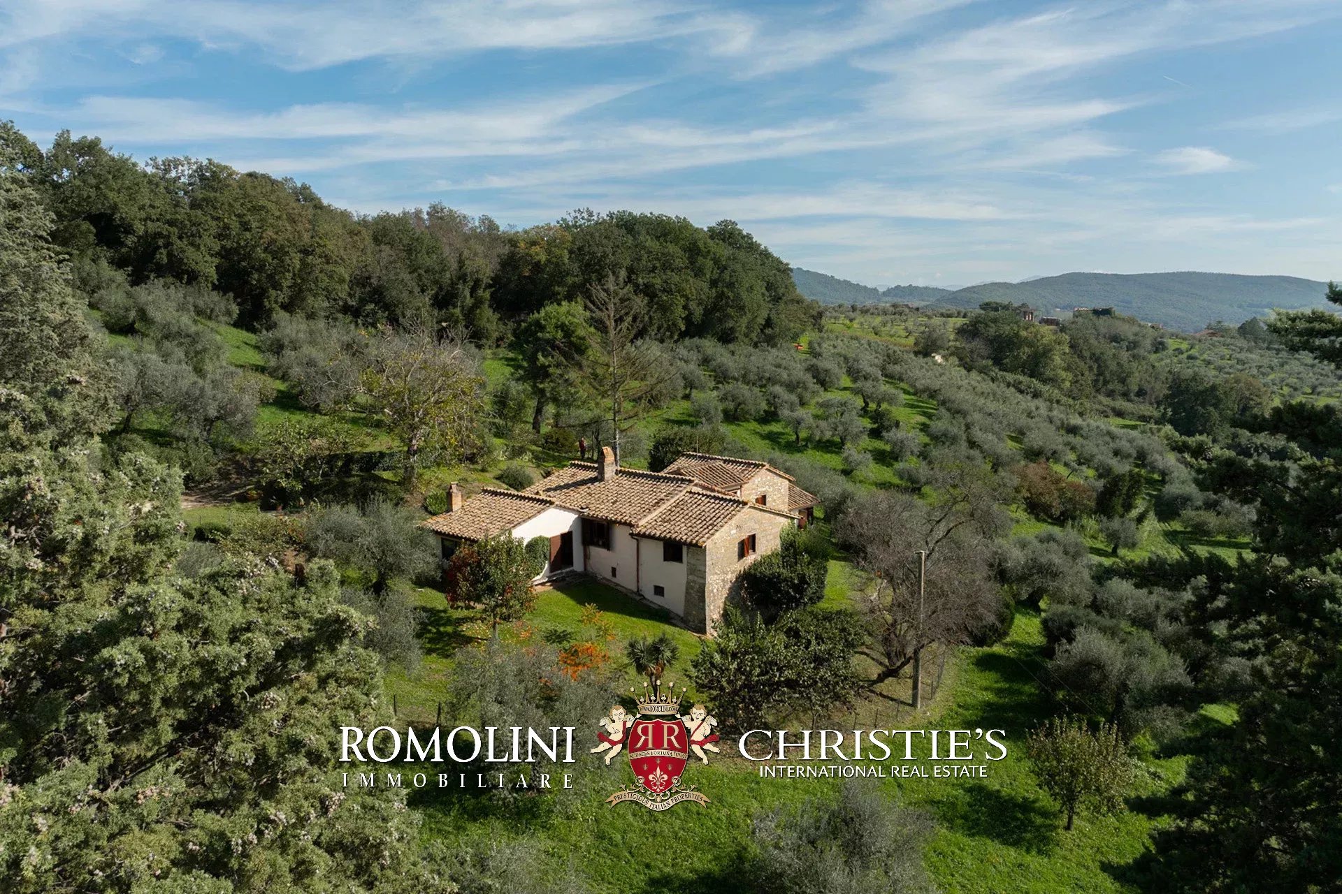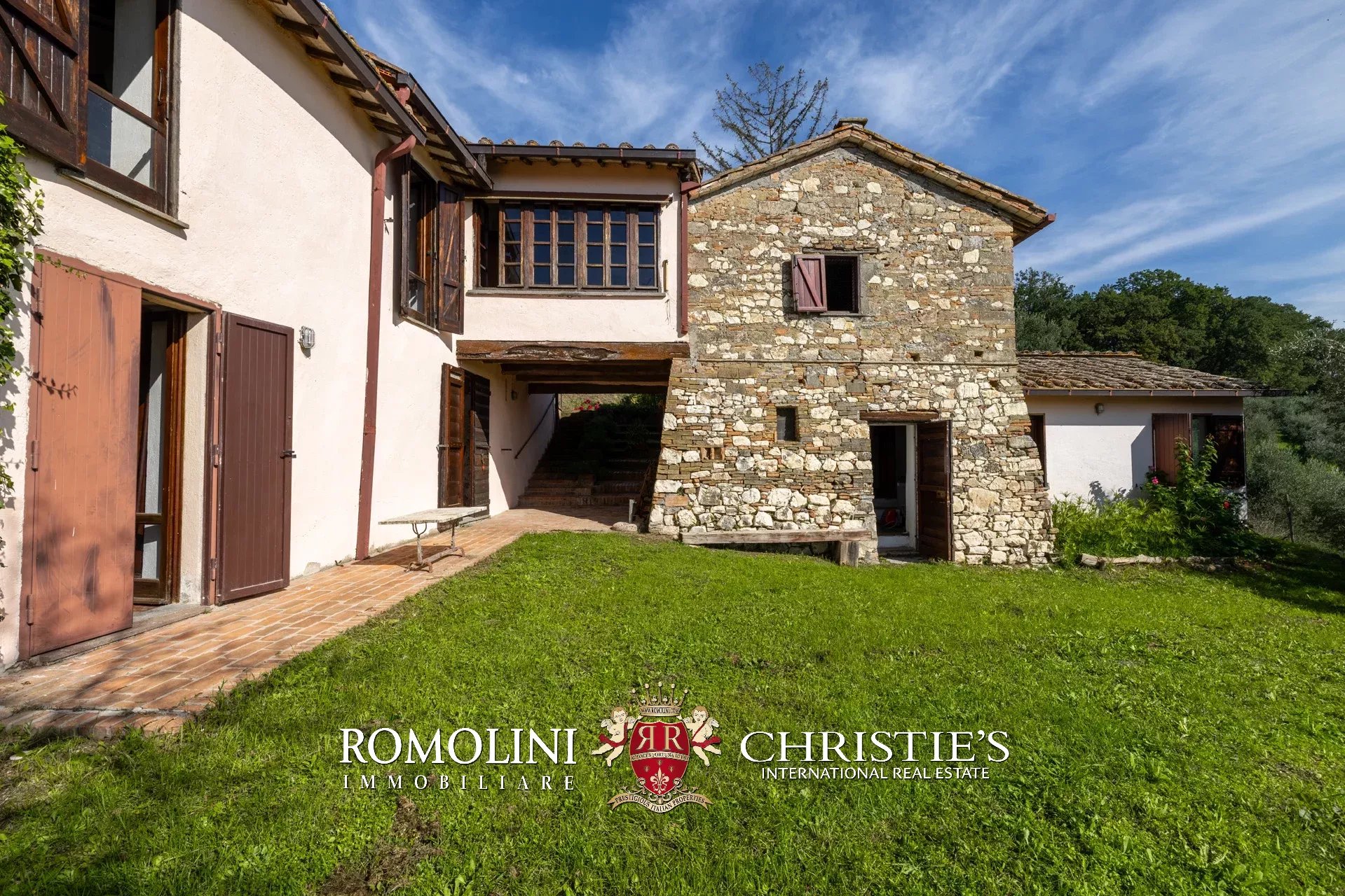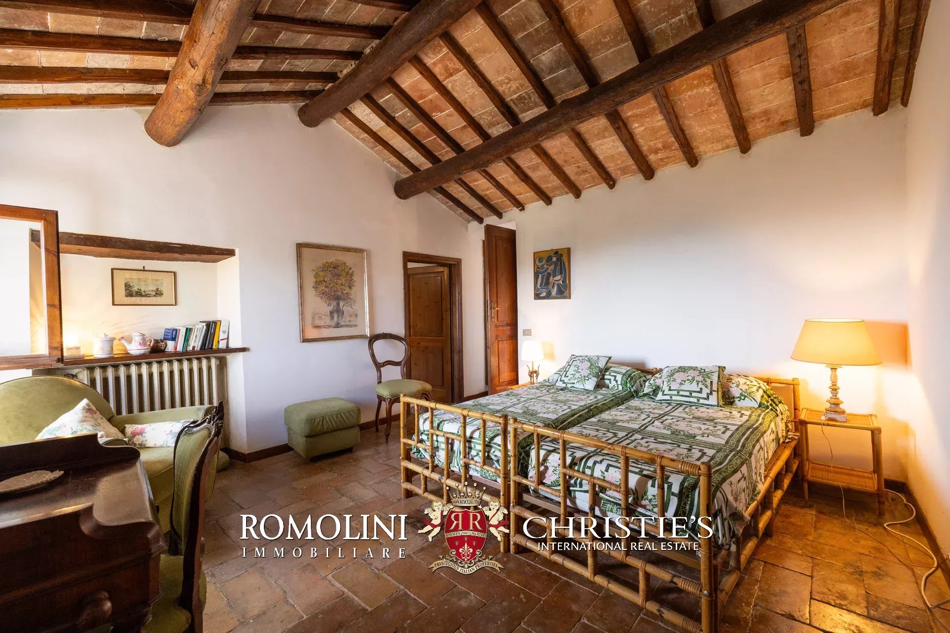 L’abitazione (266 m²), accogliente e strutturata negli anni Novanta in modo garbato nel rispetto dello stile originale, si sviluppa su due livelli ed è strutturata attorno a una torre di avvistamento del Seicento. L’ingresso avviene attraverso un ampio portico con un suggestivo tavolo in pietra peperino e un grande forno a legna, ideale per cene all’aperto. Da qui si accede a un luminoso salone con camino in pietra, caratterizzato da panorami che si aprono su due lati opposti. Adiacente al salone si trova una cucina abitabile in muratura, completa di camino, decorazioni in maiolica e spaziosi piani di lavoro.