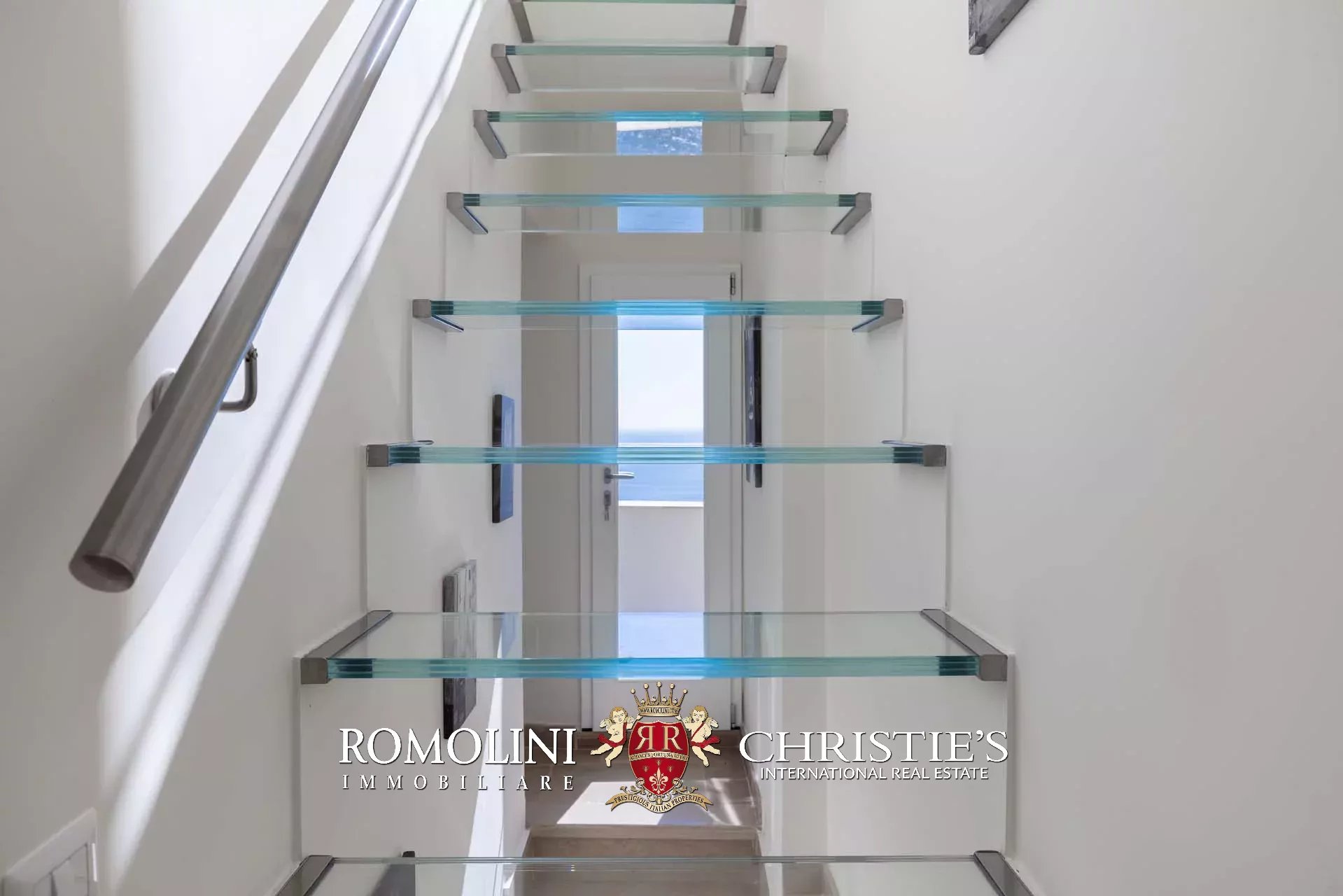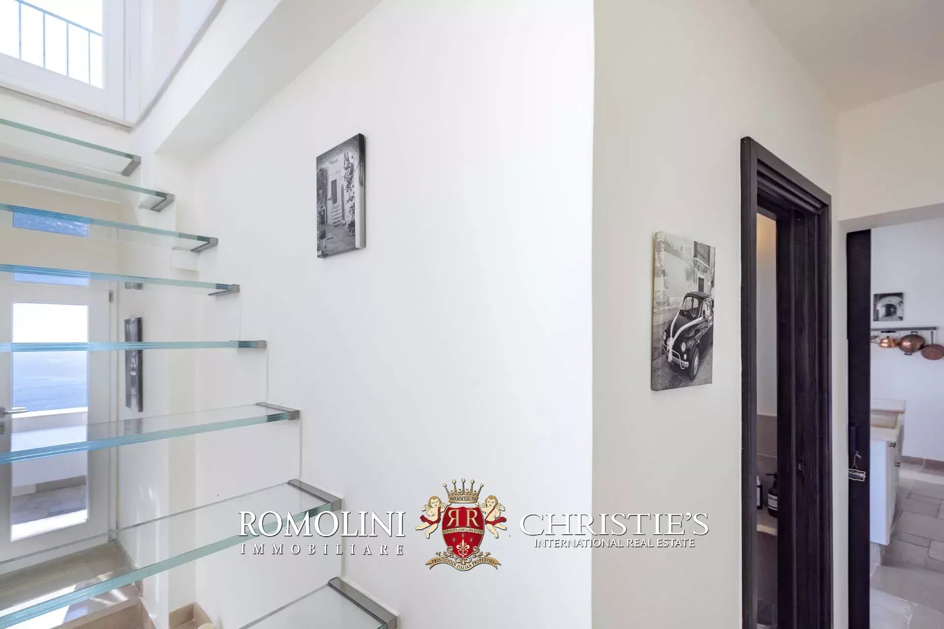 La casa si sviluppa su tre piani totali. Al piano più basso, l’ingresso disimpegna l’intera zona notte composta da tre camere, tre bagni, ripostiglio e piccola terrazza (12 m²) sul retro. La scala interna, accanto al ripostiglio, conduce al primo piano: qui troviamo la zona giorno composta di sala da pranzo con terrazza (17 m²), soggiorno e cucina con terrazza panoramica (25 m², ideale per piacevoli cene all’aperto in estate). Salendo tramite la splendida scala in vetro si arriva infine alla terrazza sul tetto (16 m²) con vista panoramica a 360° che spazia da Amalfi a Conca dei Marini, corredata da un’ampia stanza attualmente destinata a magazzino.