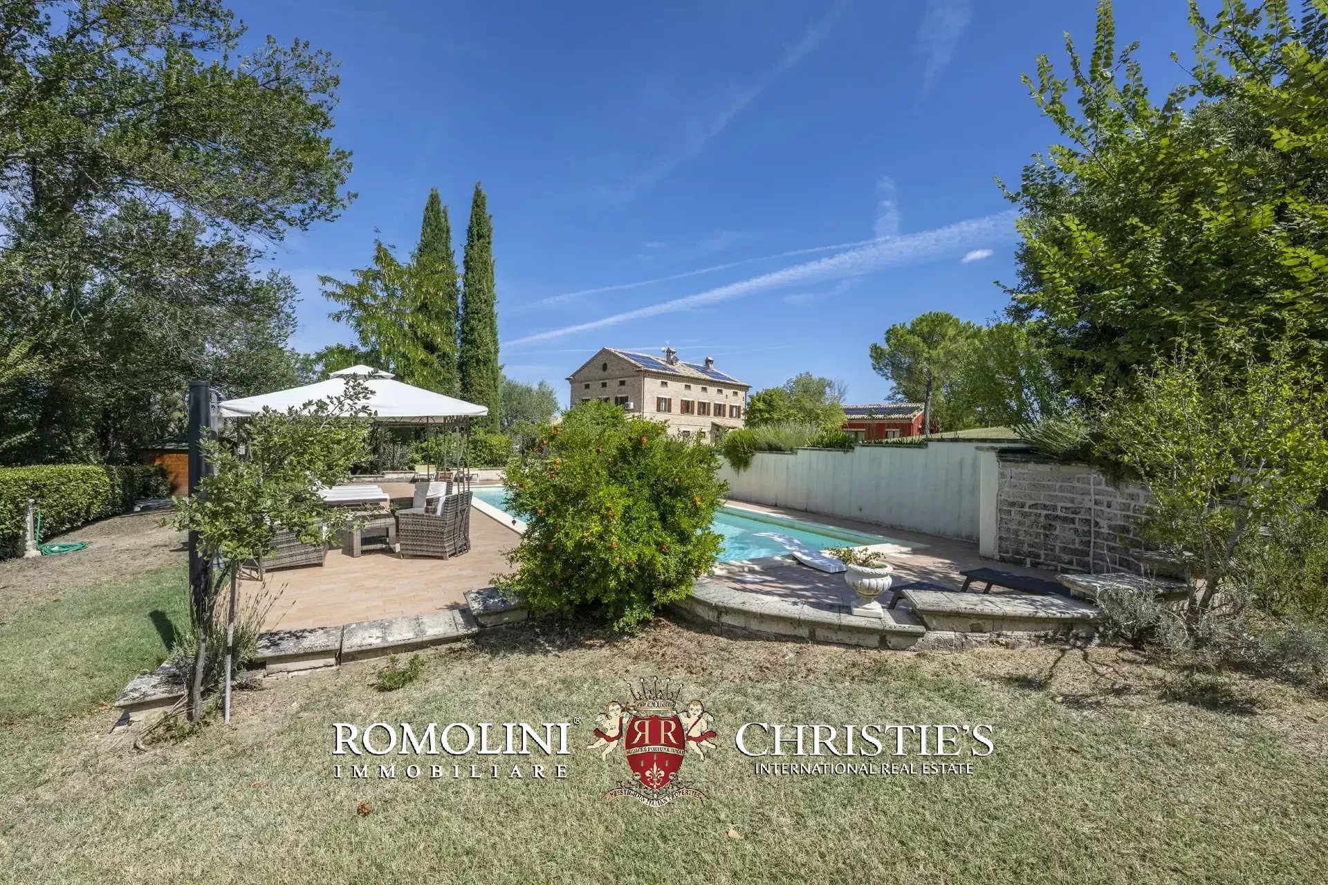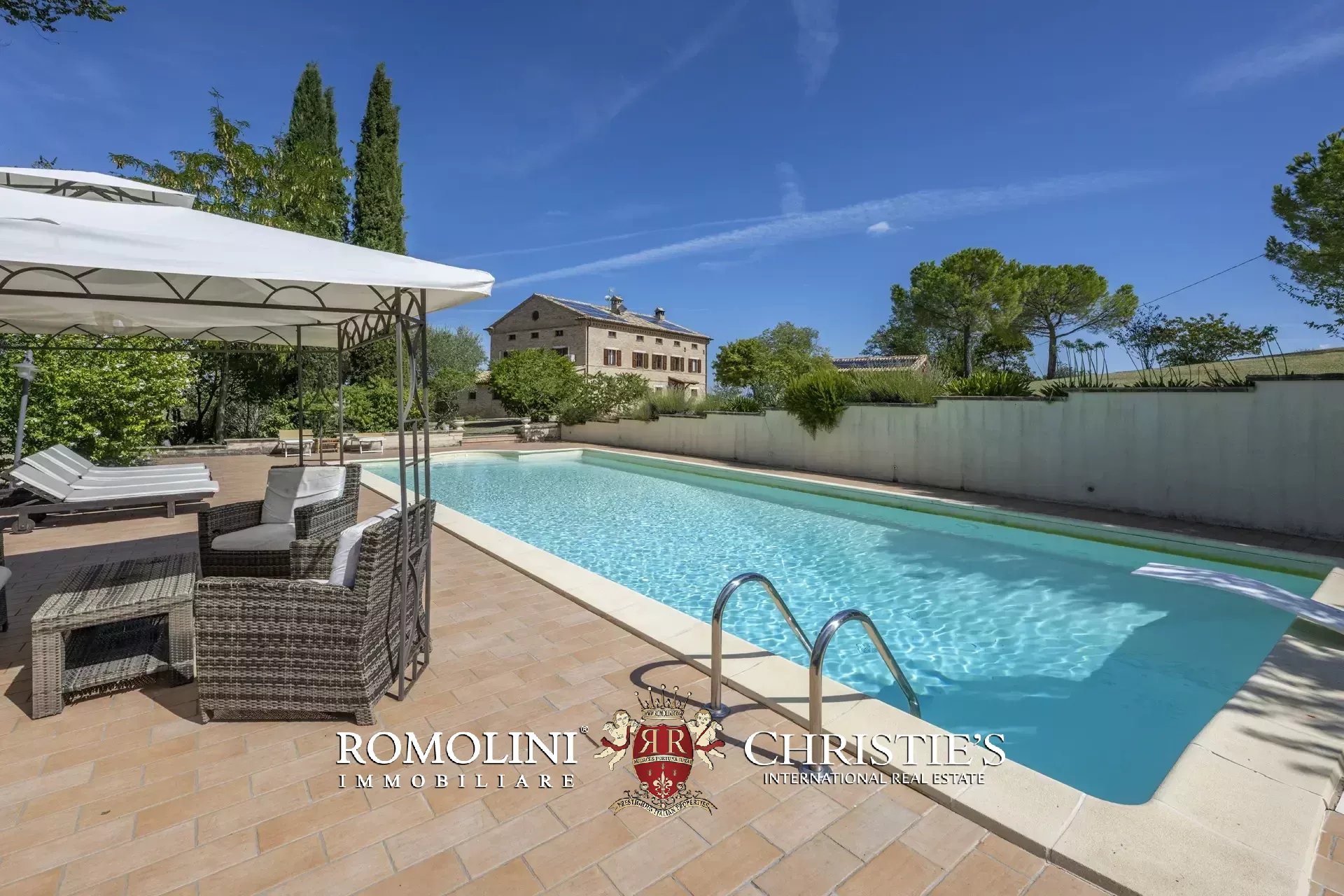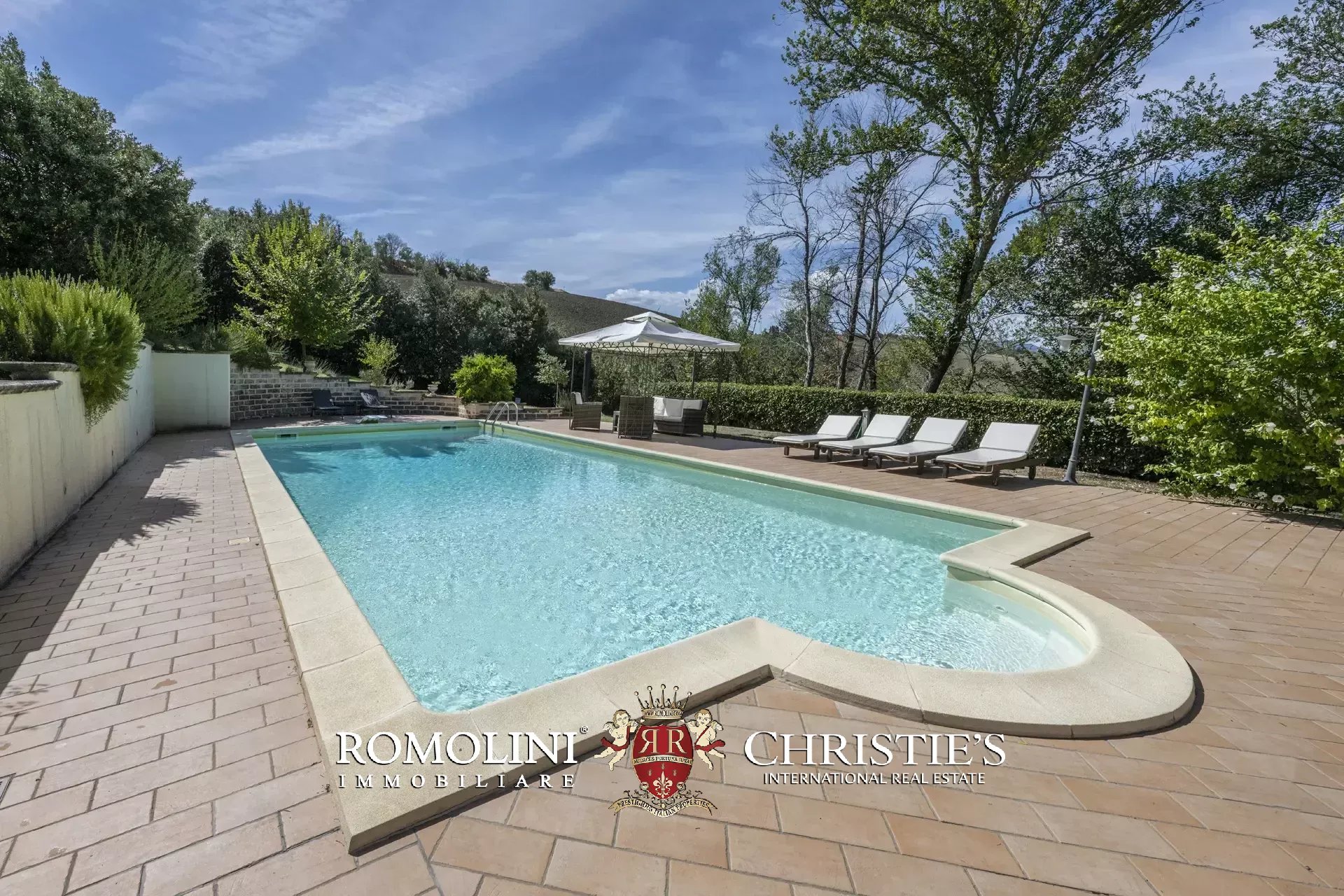 A breve distanza dal casale, in posizione riservata, si trova la piscina 12 × 6 m con scala romana, dotata di zona idromassaggio, riscaldamento e piccolo bagno dedicato.