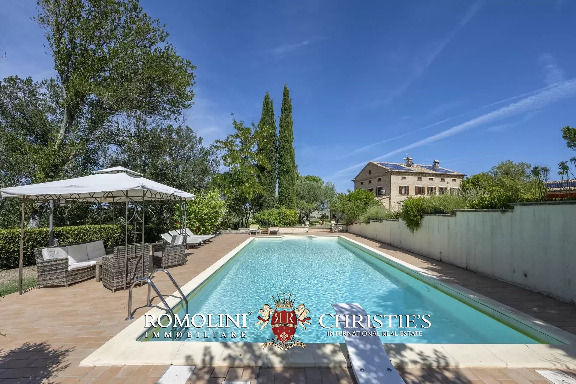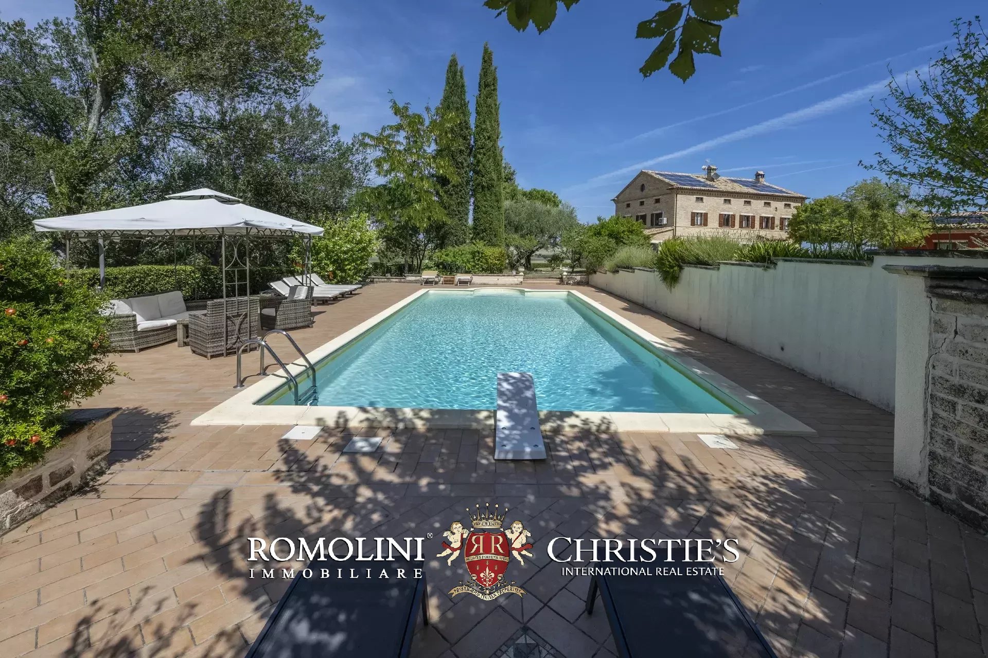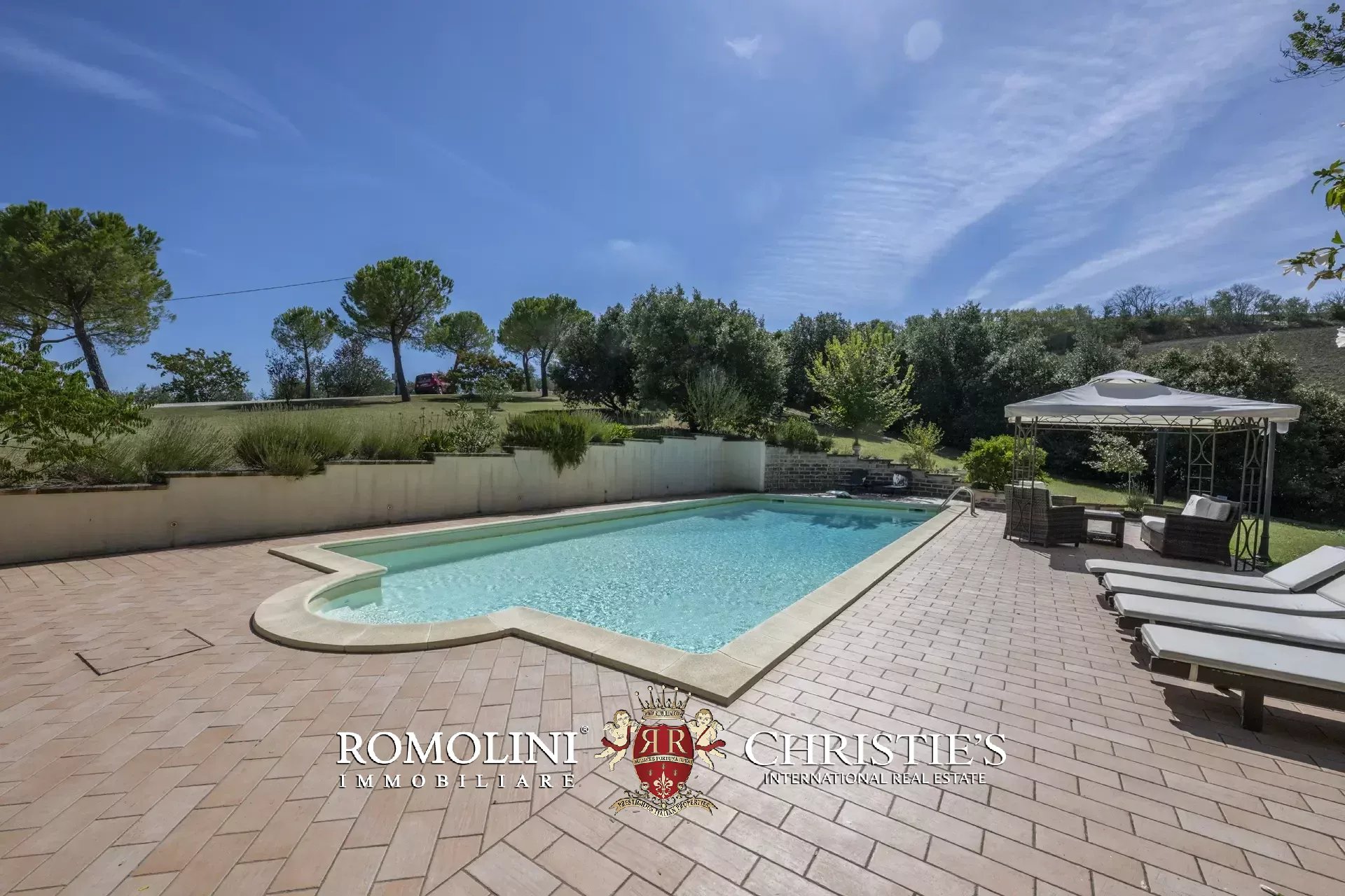 A breve distanza dal casale, in posizione riservata, si trova la piscina 12 × 6 m con scala romana, dotata di zona idromassaggio, riscaldamento e piccolo bagno dedicato.