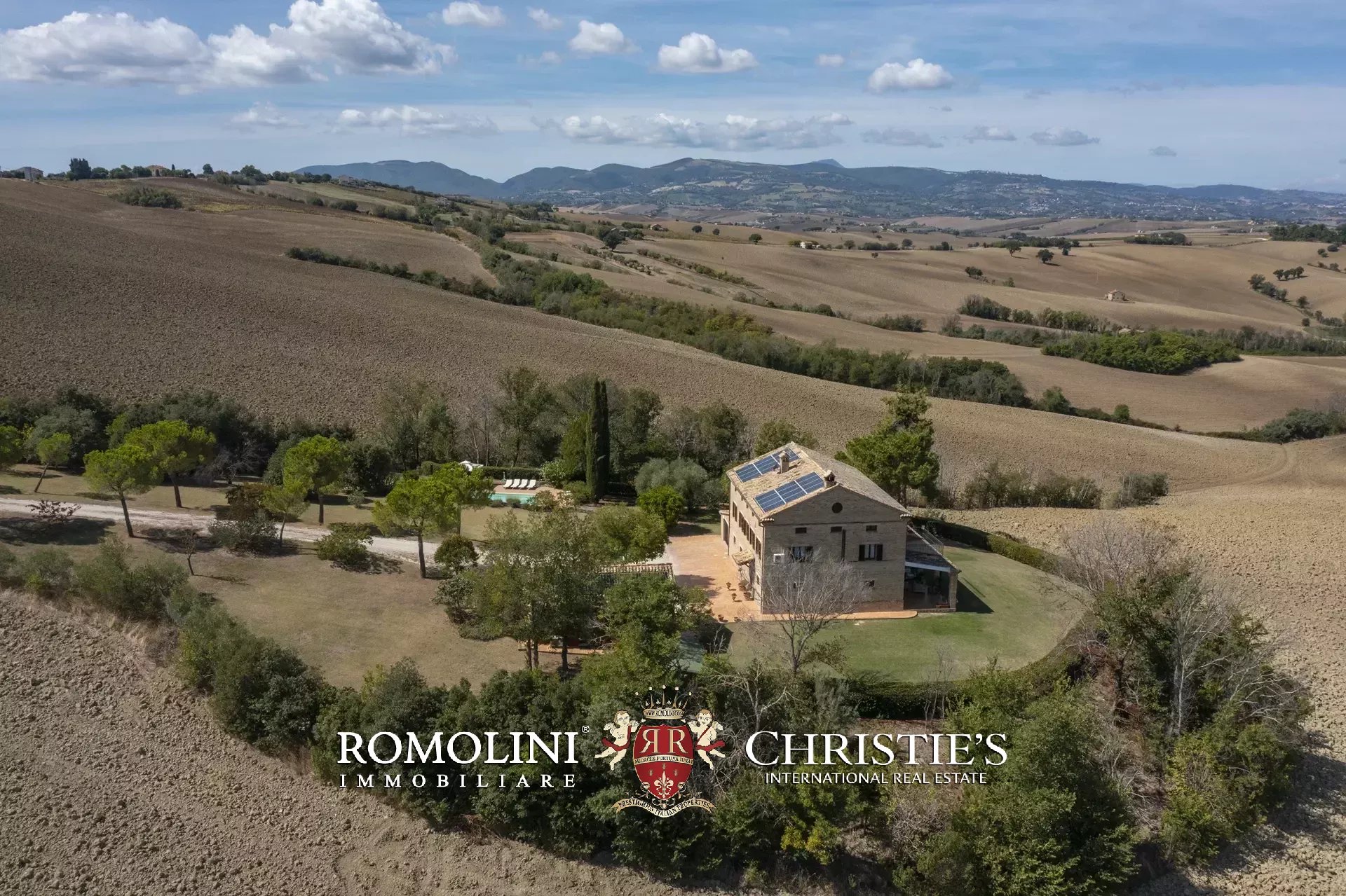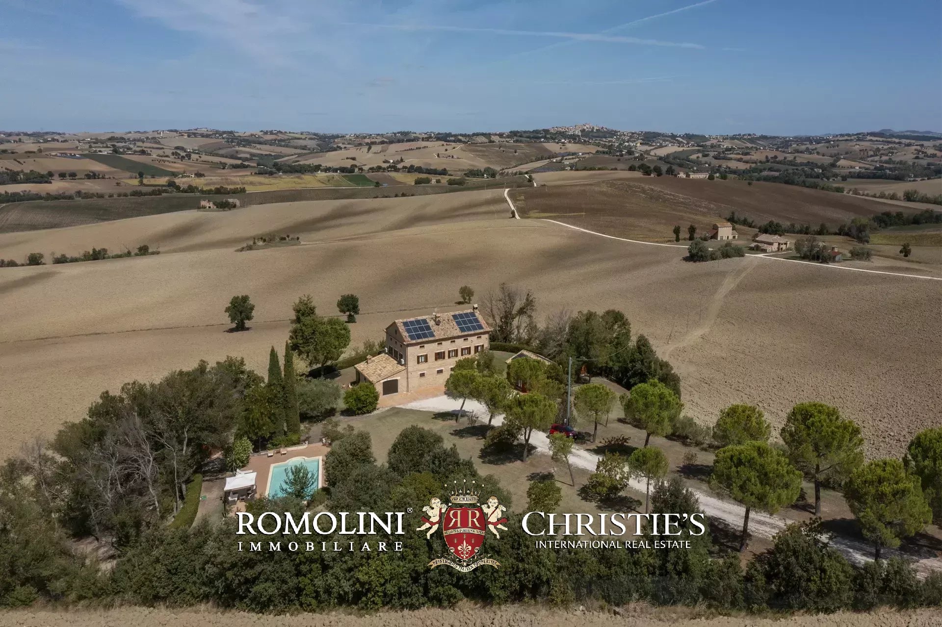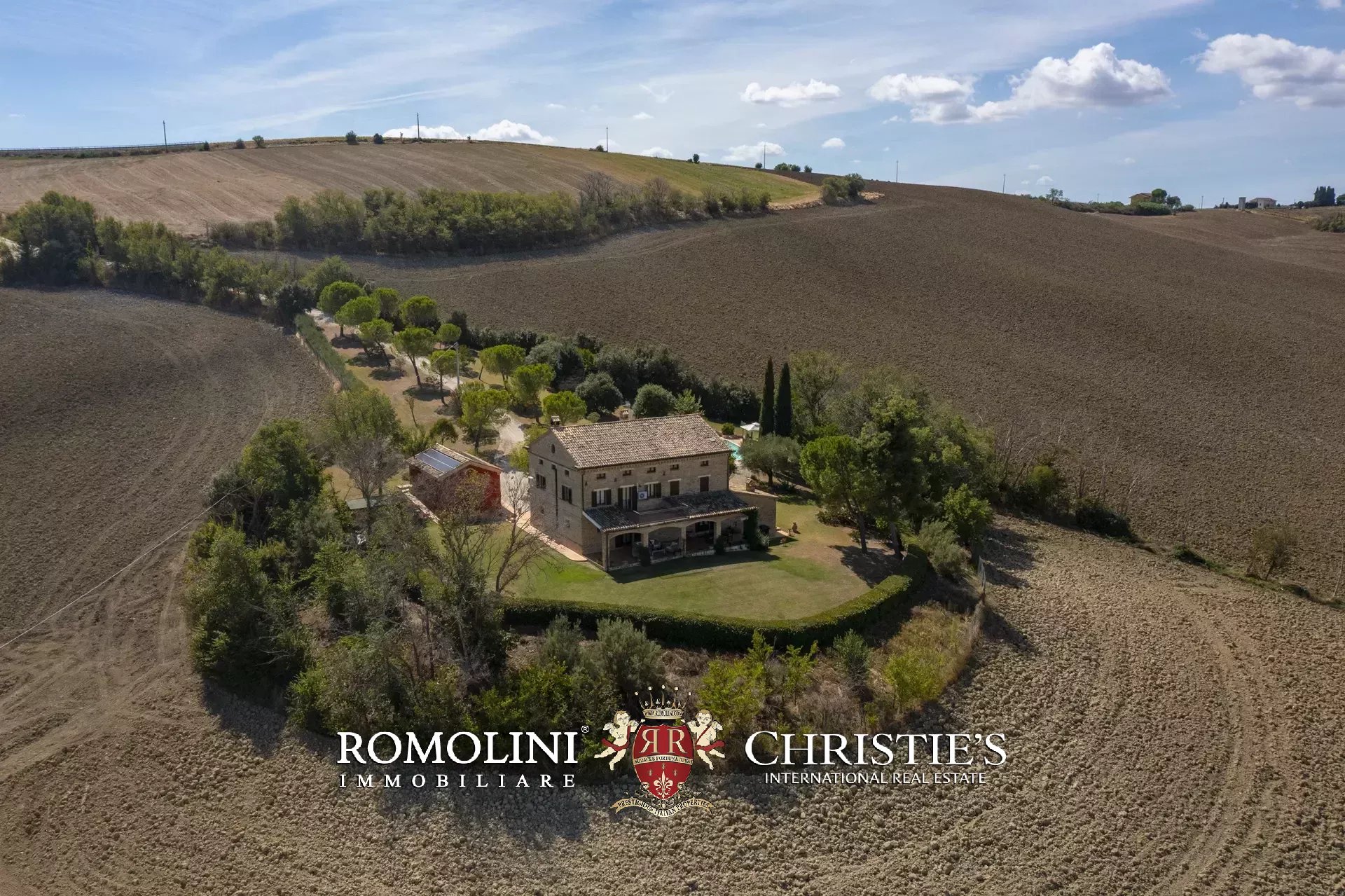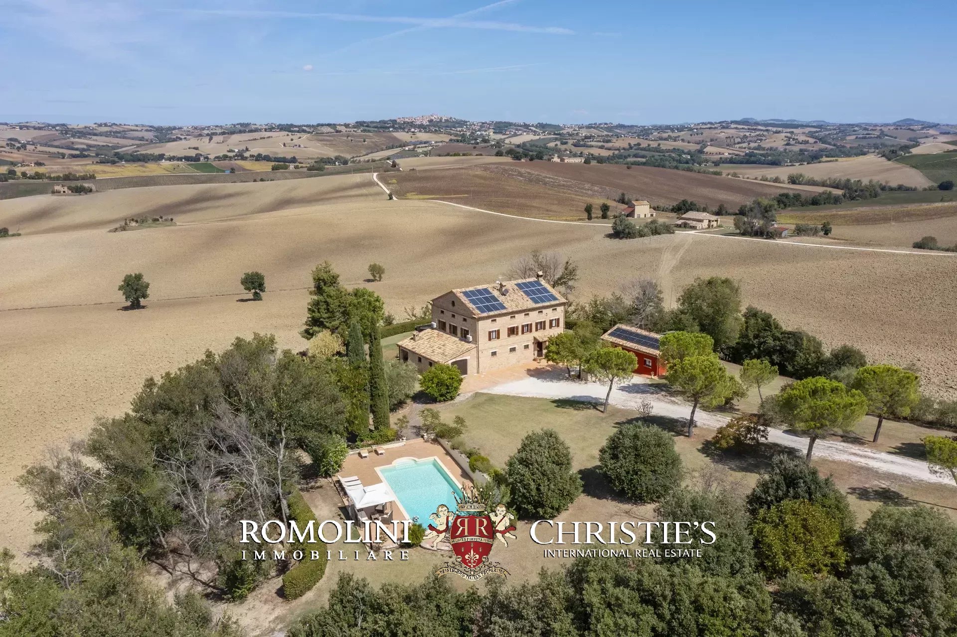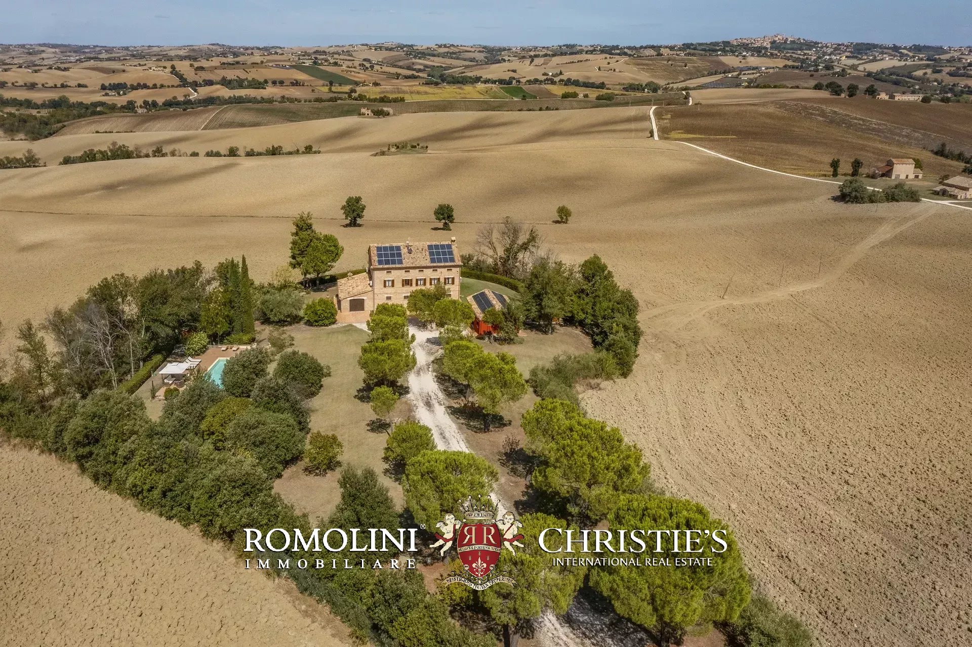 La casa padronale (351 m², 3 camere e 3 bagni) è un affascinante casolare in stile marchigiano risalente agli inizi del Novecento, completamente restaurato nel 2000, che si sviluppa su tre livelli fuori terra più una cantina al piano seminterrato.