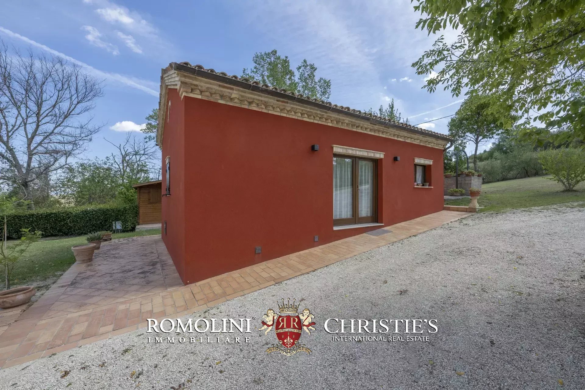 Alla proprietà si accede tramite cancello elettrico posto lungo il viale alberato che conduce alla casa.
