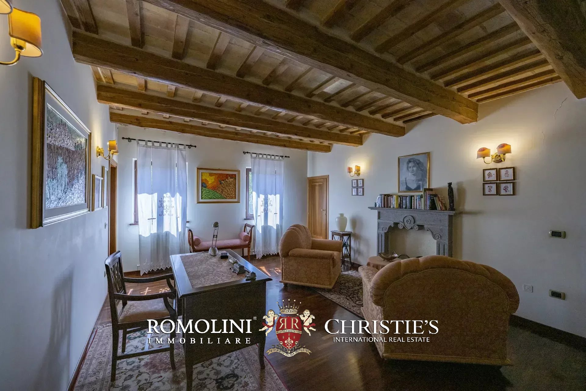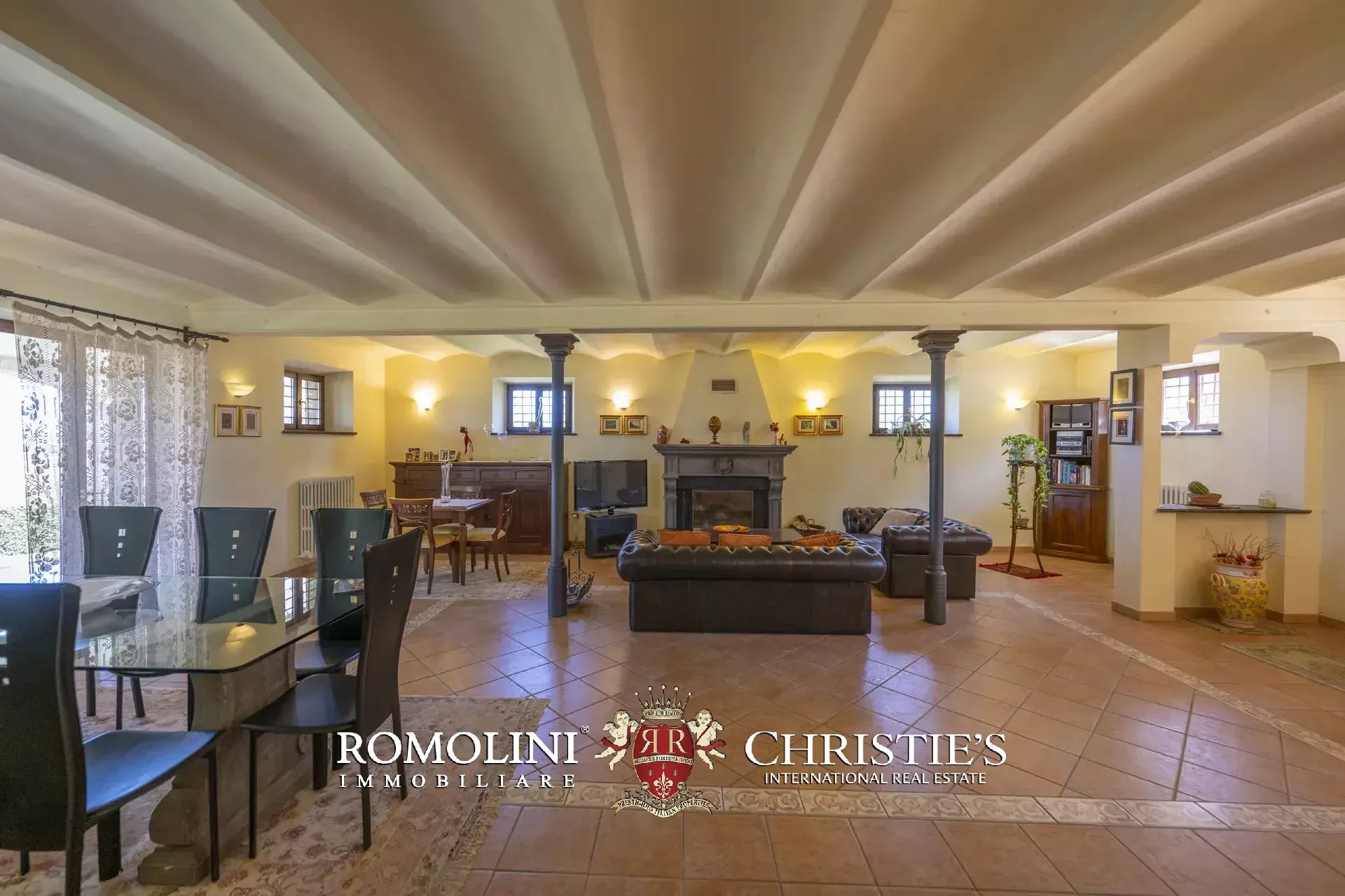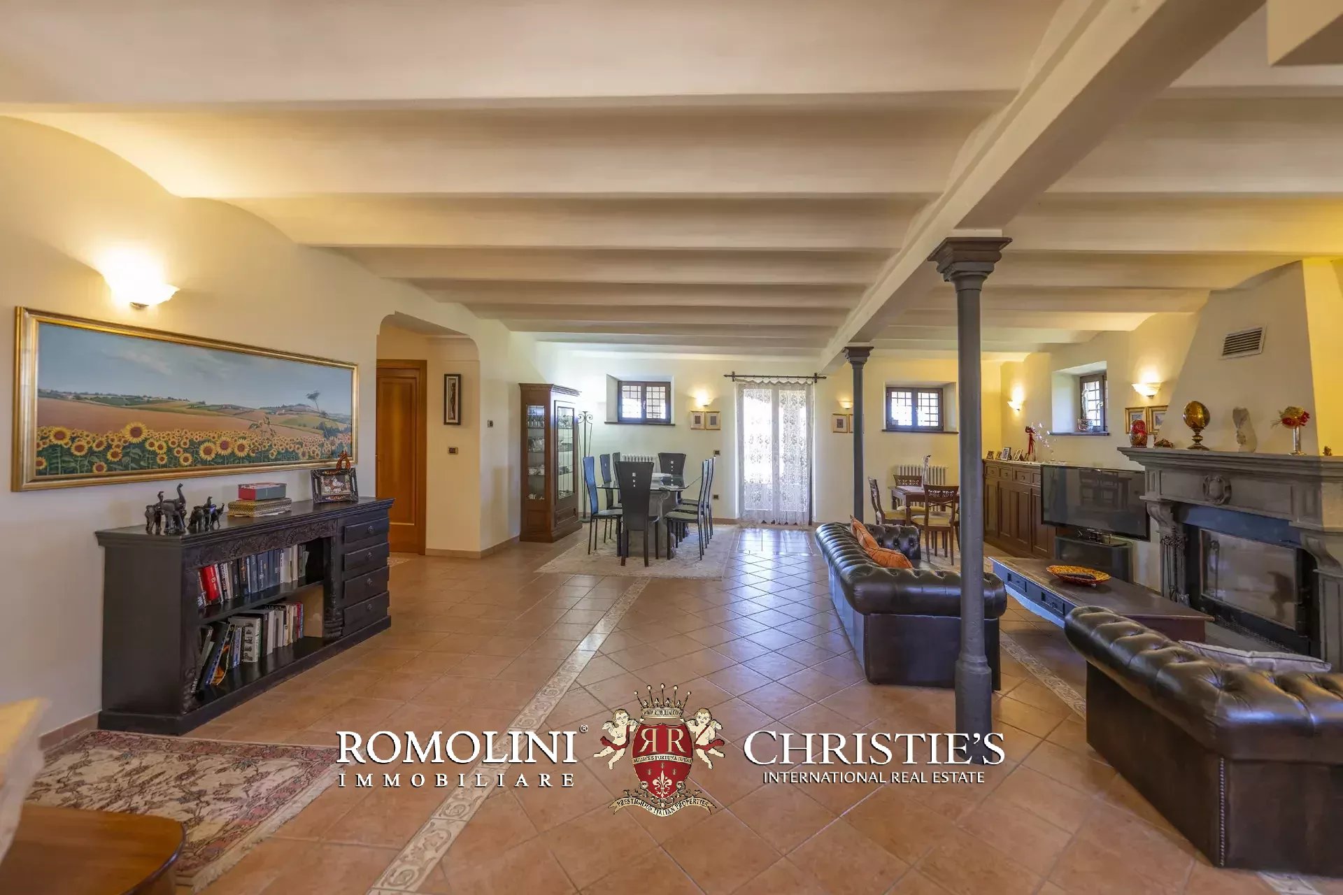 - Piano terra: ampio soggiorno con grande camino e zona pranzo, cucina abitabile, bagno, lavanderia e garage. Le porte finestra poste in soggiorno e in cucina permettono di accedere al porticato dove attualmente si trovano un’area soggiorno e un comodo tavolo da pranzo per poter godere dello splendido panorama;