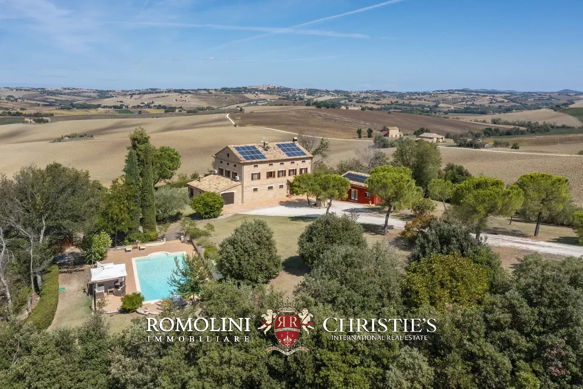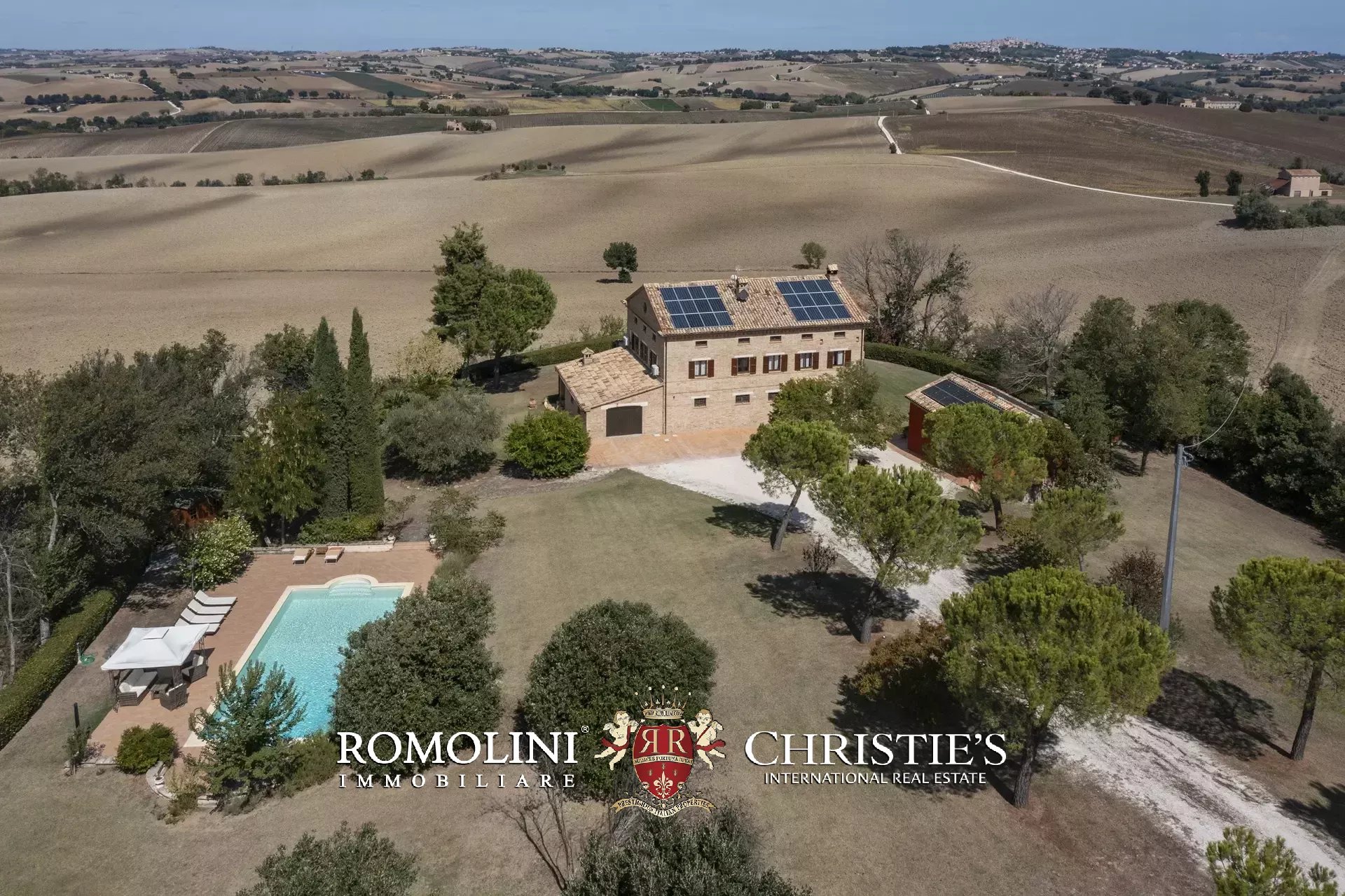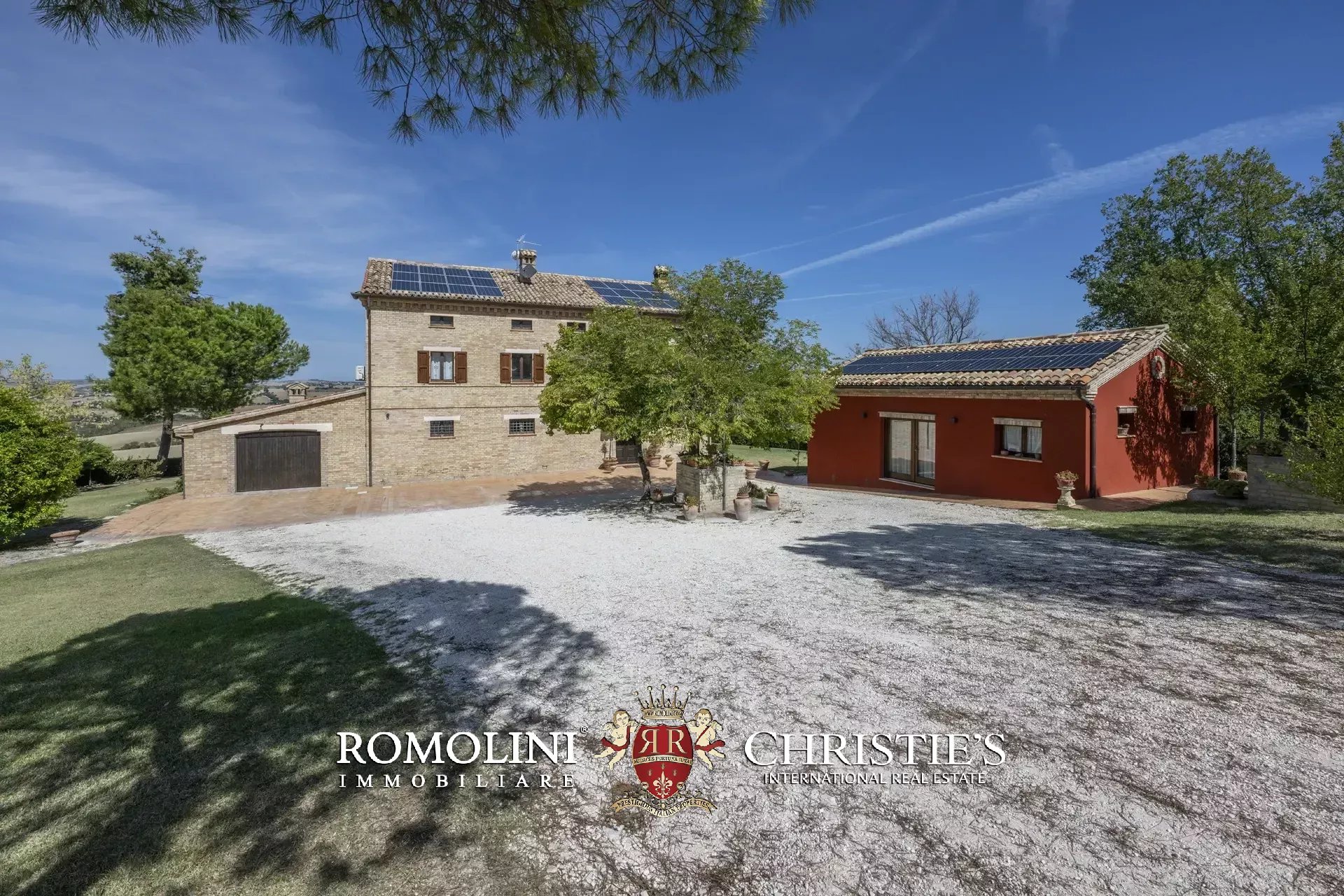 Entrambi gli edifici sono dotati di impianto fotovoltaico: la casa padronale dispone di pannelli per 12 kW mentre la dependance può contare su 8 kW più batteria di accumulo (10 kW) e pannelli solari per la produzione di acqua calda.