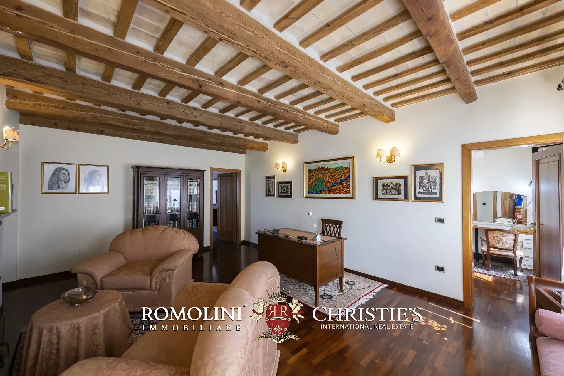 - Piano primo: studio/salotto, camera con terrazzo privato e bagno en-suite (con vasca e doccia idromassaggio), due camere con bagno condiviso e cabina armadio;