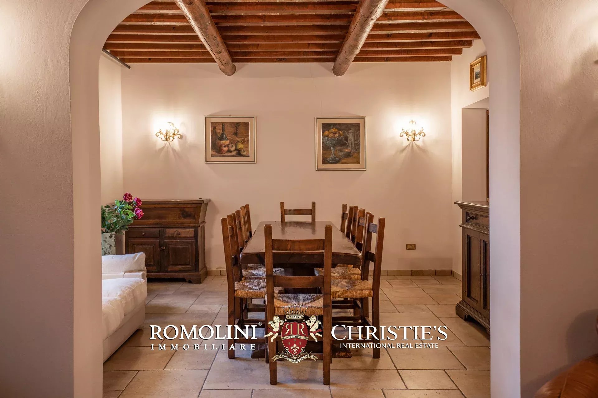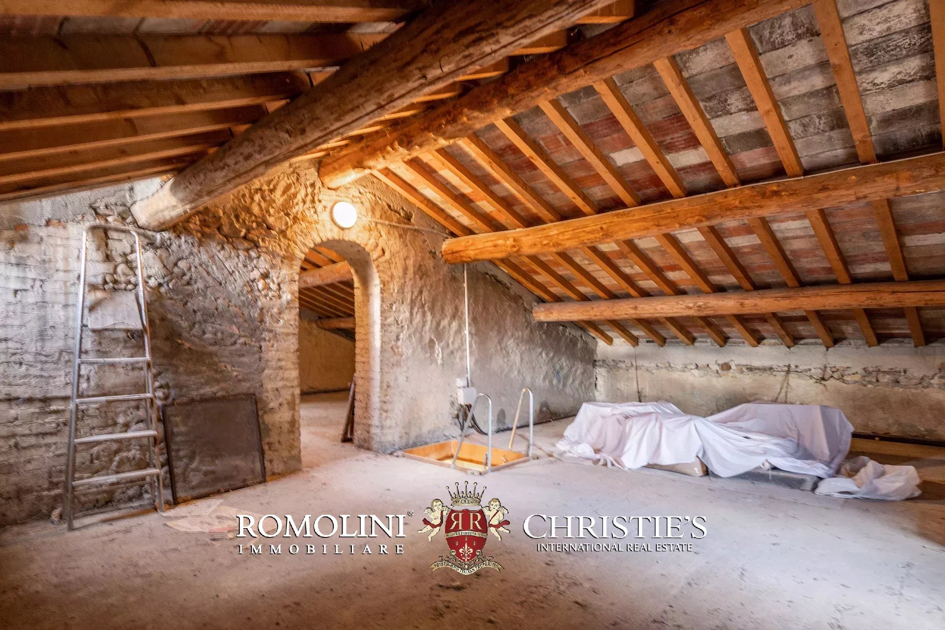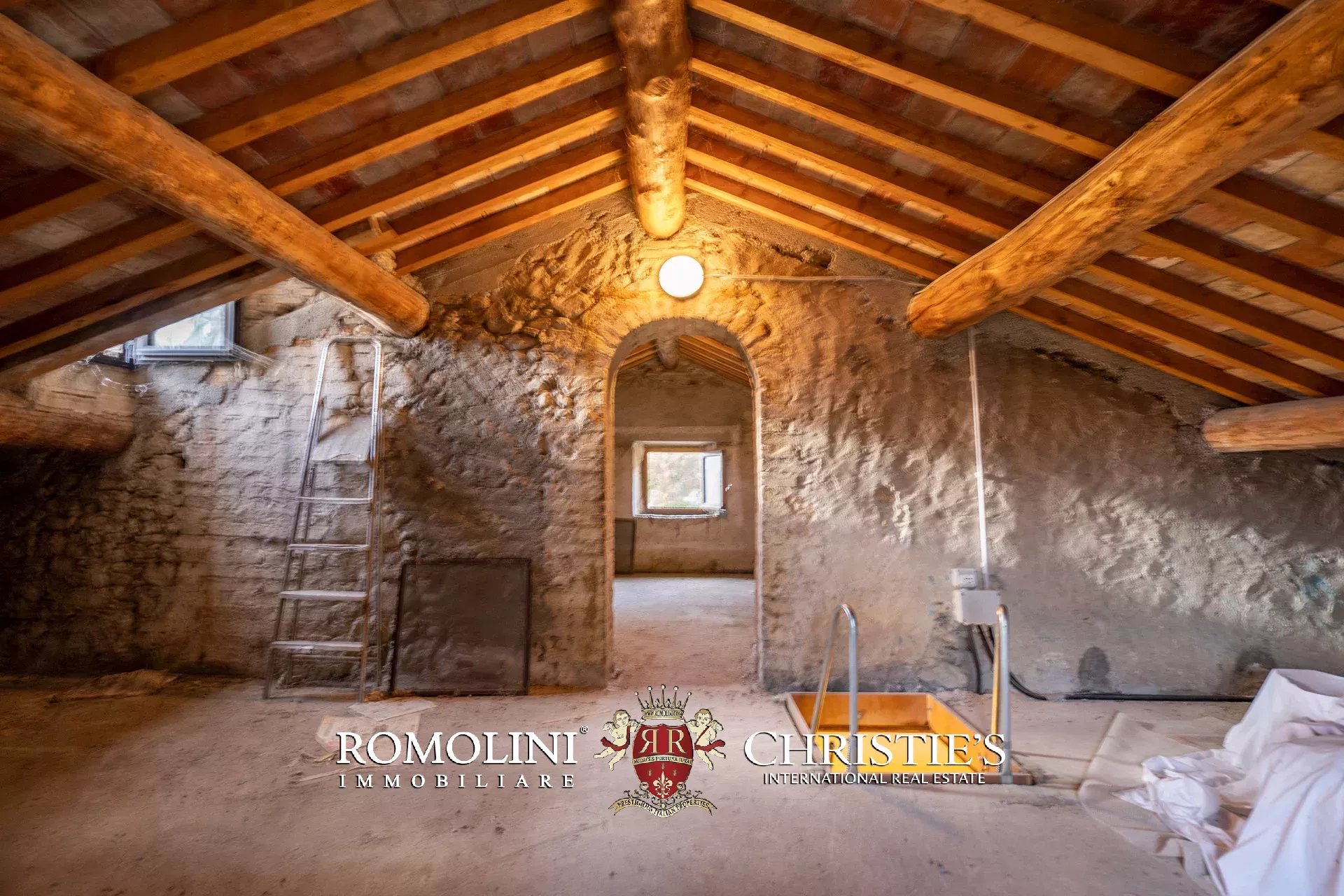 Il casale (183 m²), in ottime condizioni e già abitabile, si articola su tre livelli. Al piano terra troviamo un accogliente salotto con camino, una sala da pranzo, la cucina e un bagno. Un disimpegno conduce al primo piano, che ospita tre camere e un secondo bagno. Le soffitte, abitabili per circa 47 m², offrono un ulteriore spazio da sfruttare per ambienti di servizio e/o camere aggiuntive.