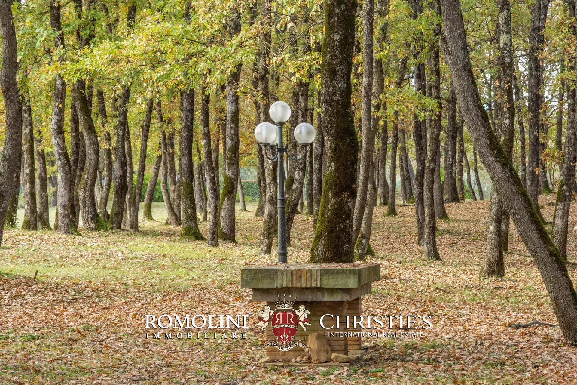 La proprietà è circondata da un giardino recintato di 11.800 m² con un meraviglioso bosco, perfetto per chi desidera privacy, tranquillità e contatto con la natura.