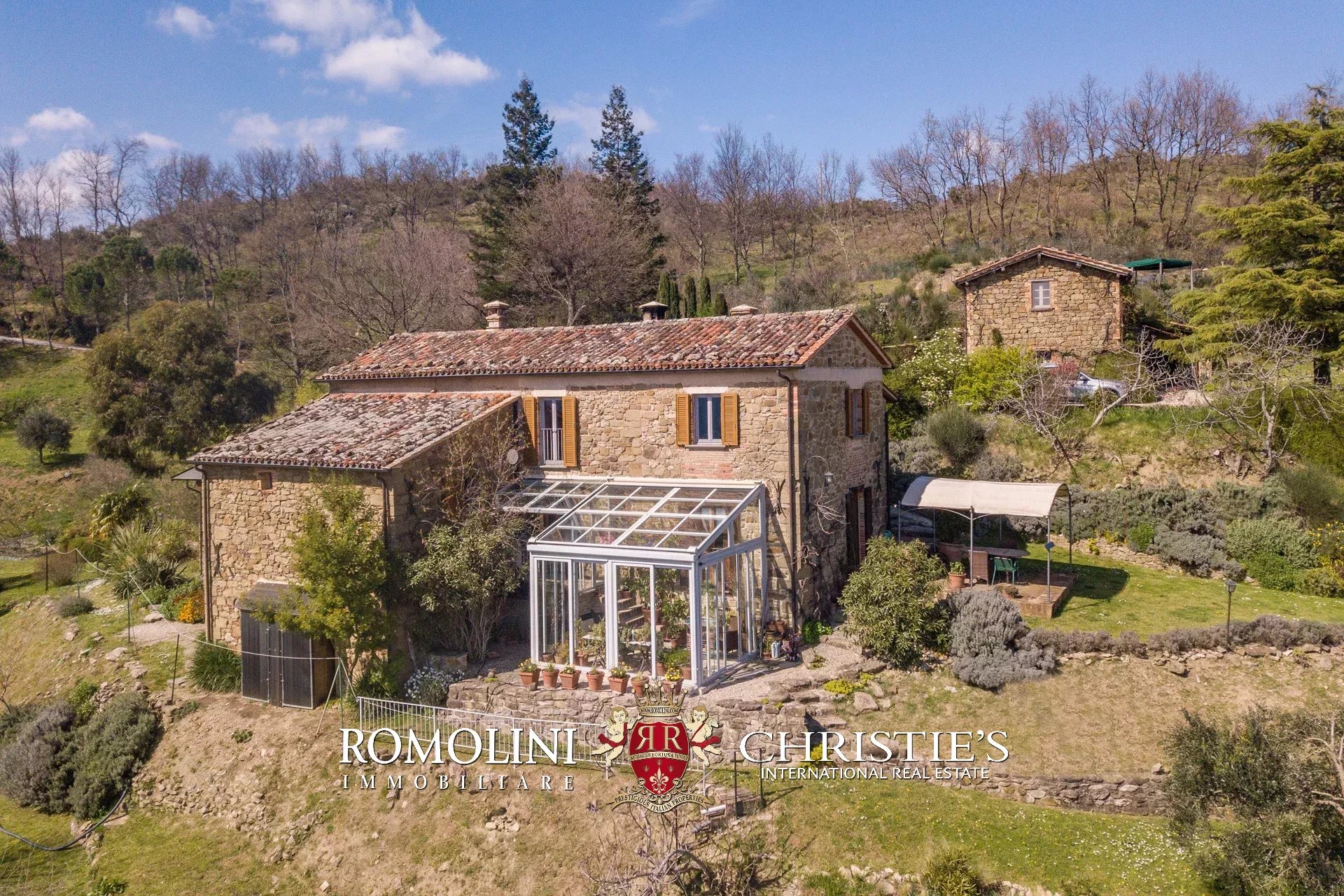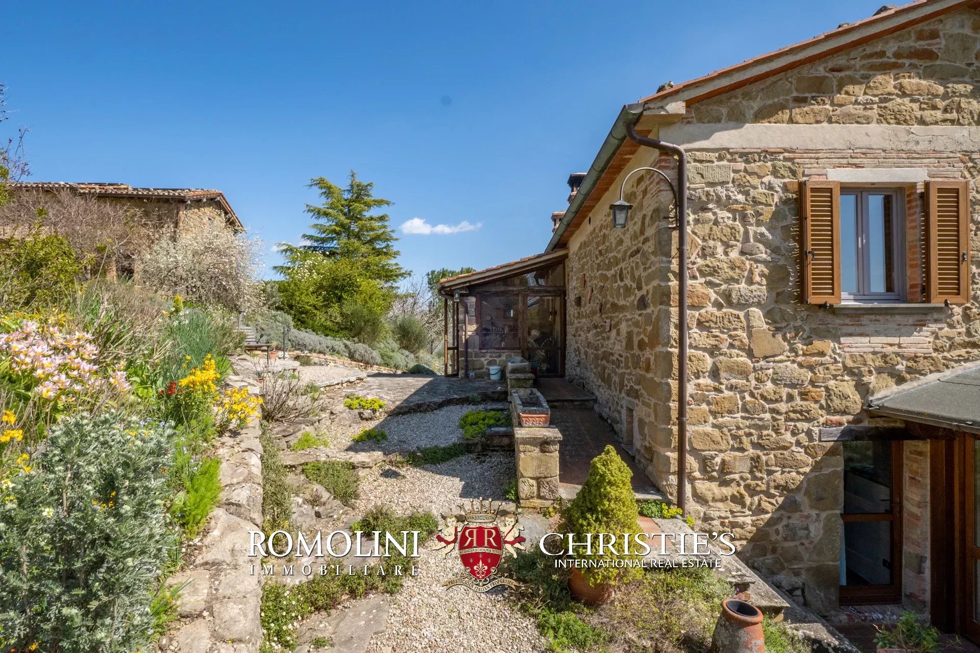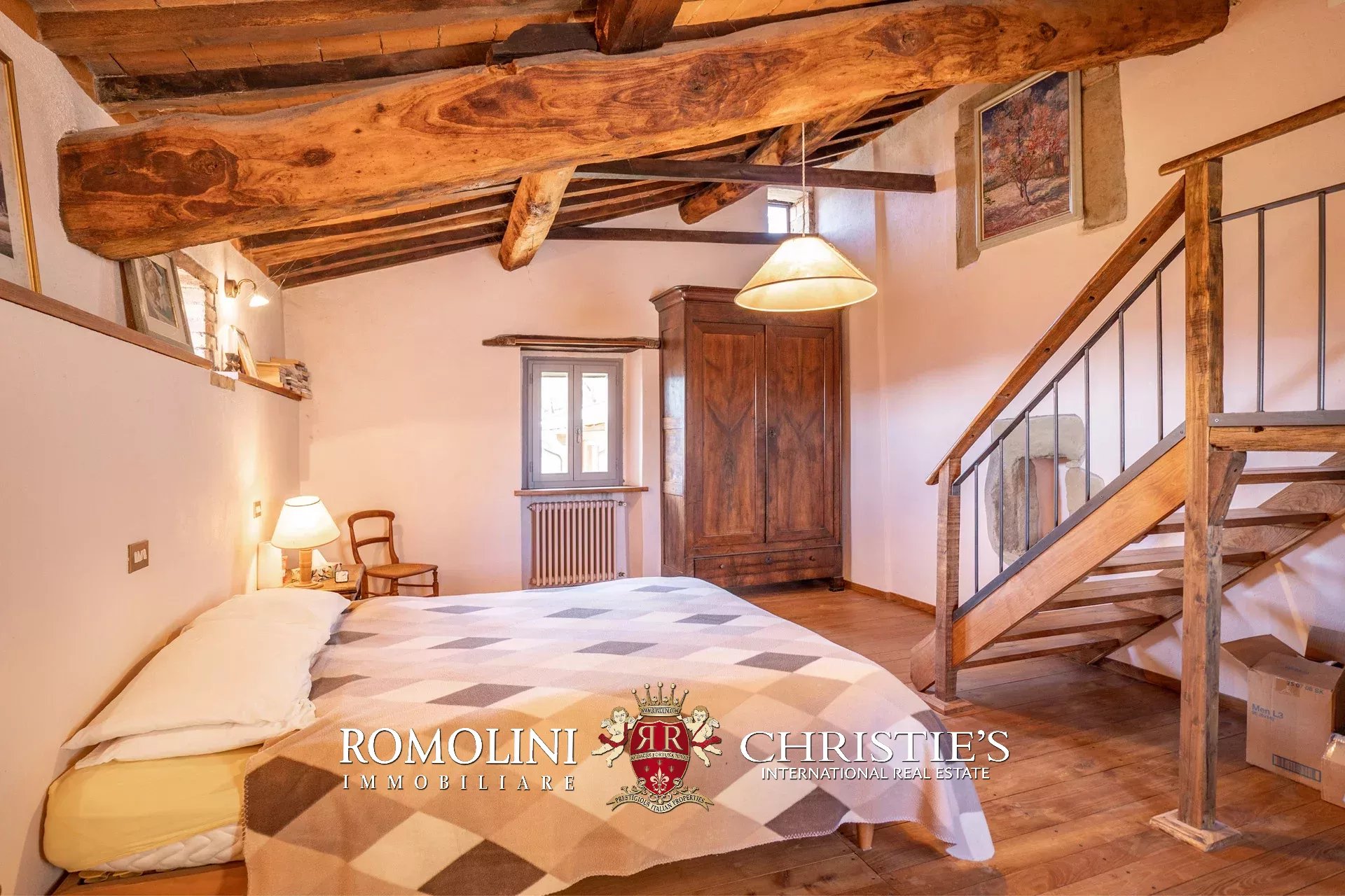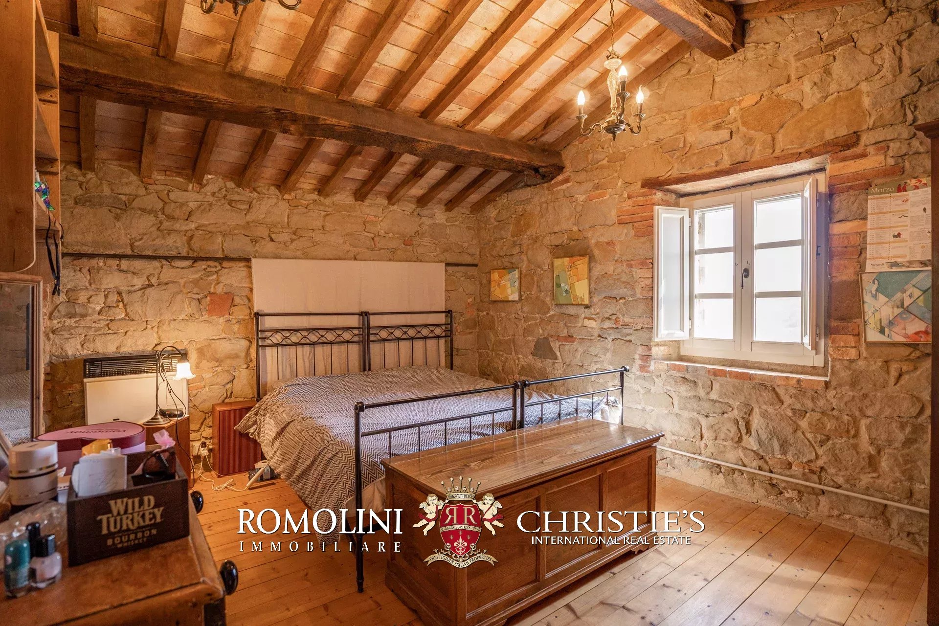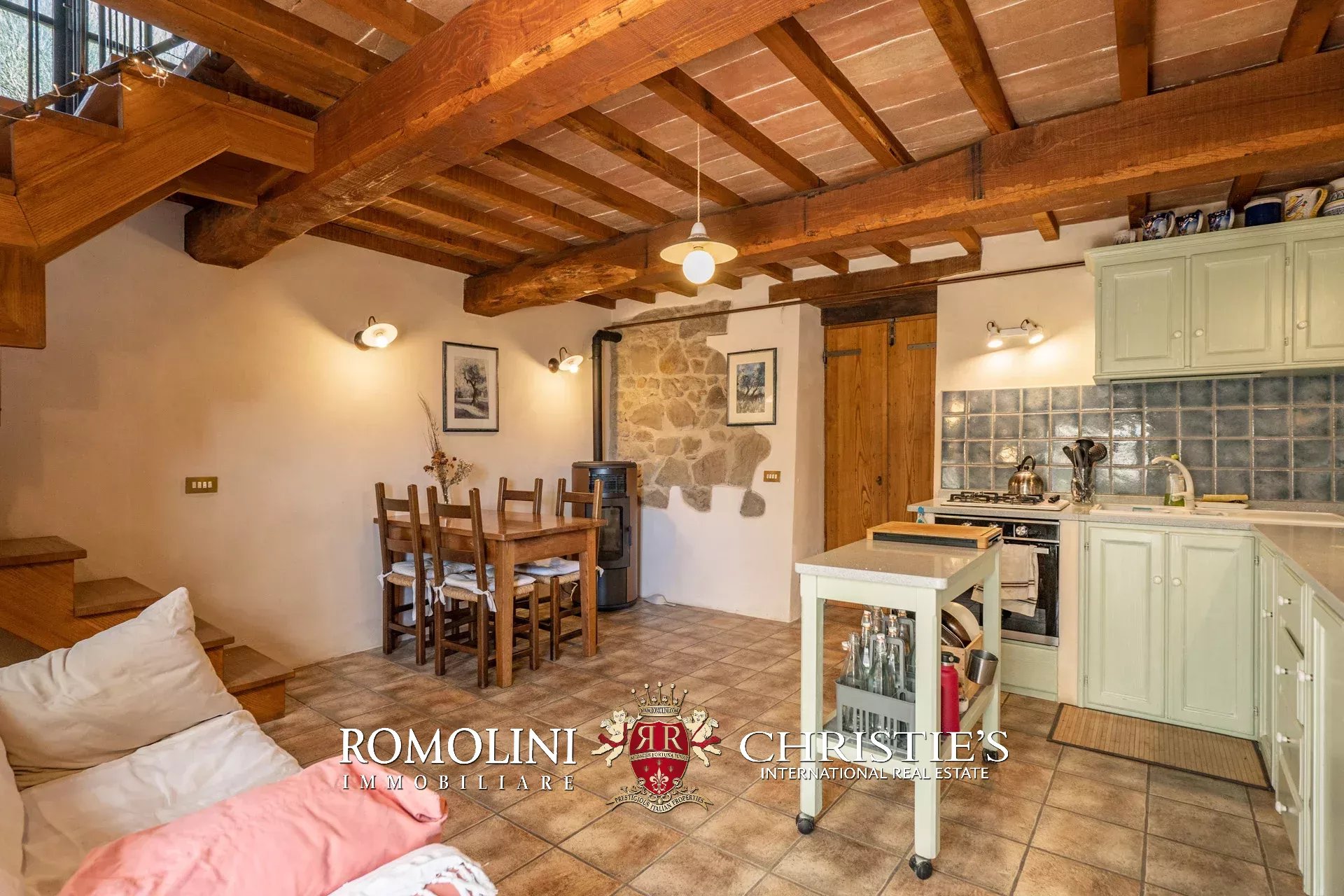 Il casale (255 m², 3 camere e 3 bagni) è un grazioso edificio in pietra, ristrutturato preservandone lo stile rustico e tipico della zona. La casa è attualmente divisa in due appartamenti, uno per piano, oltre a una lavanderia e alla cantina al piano terra.