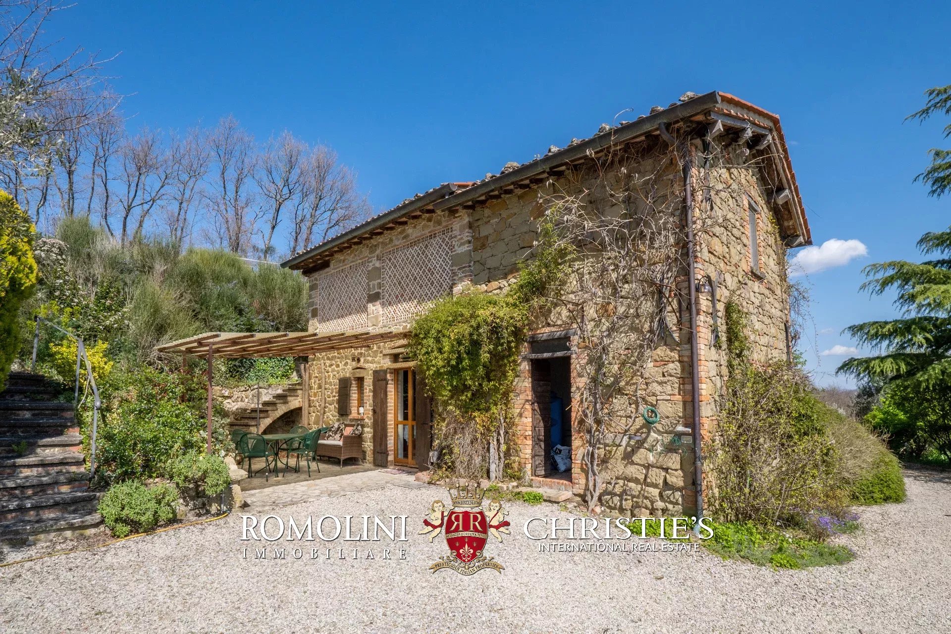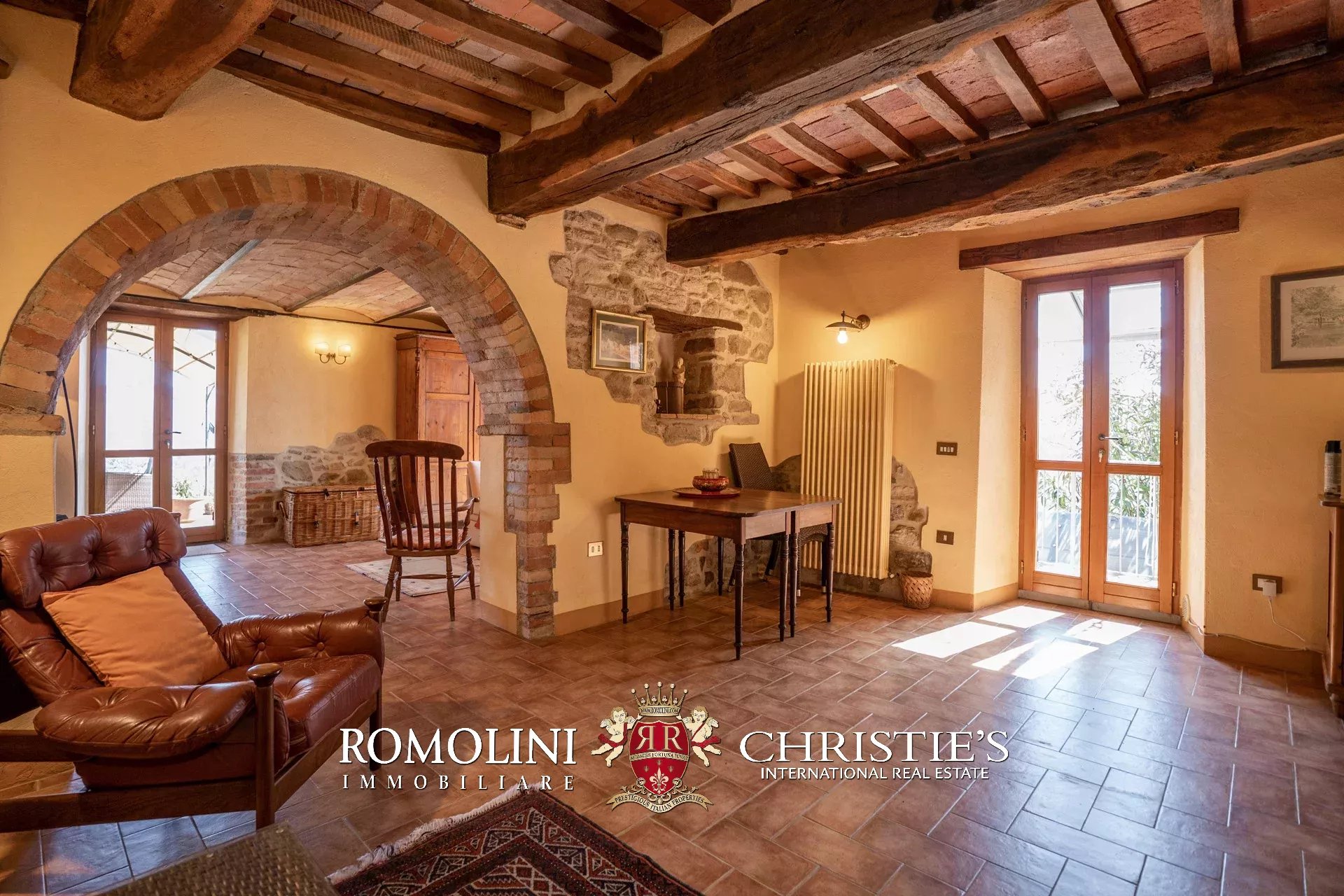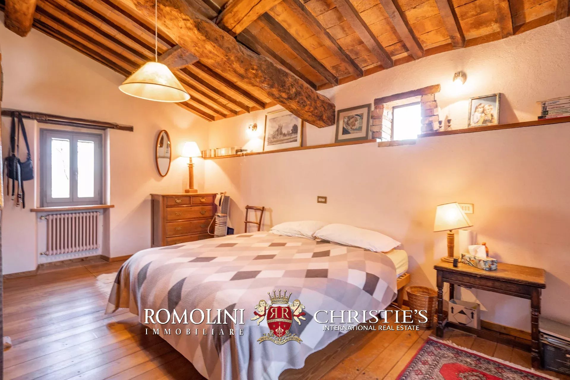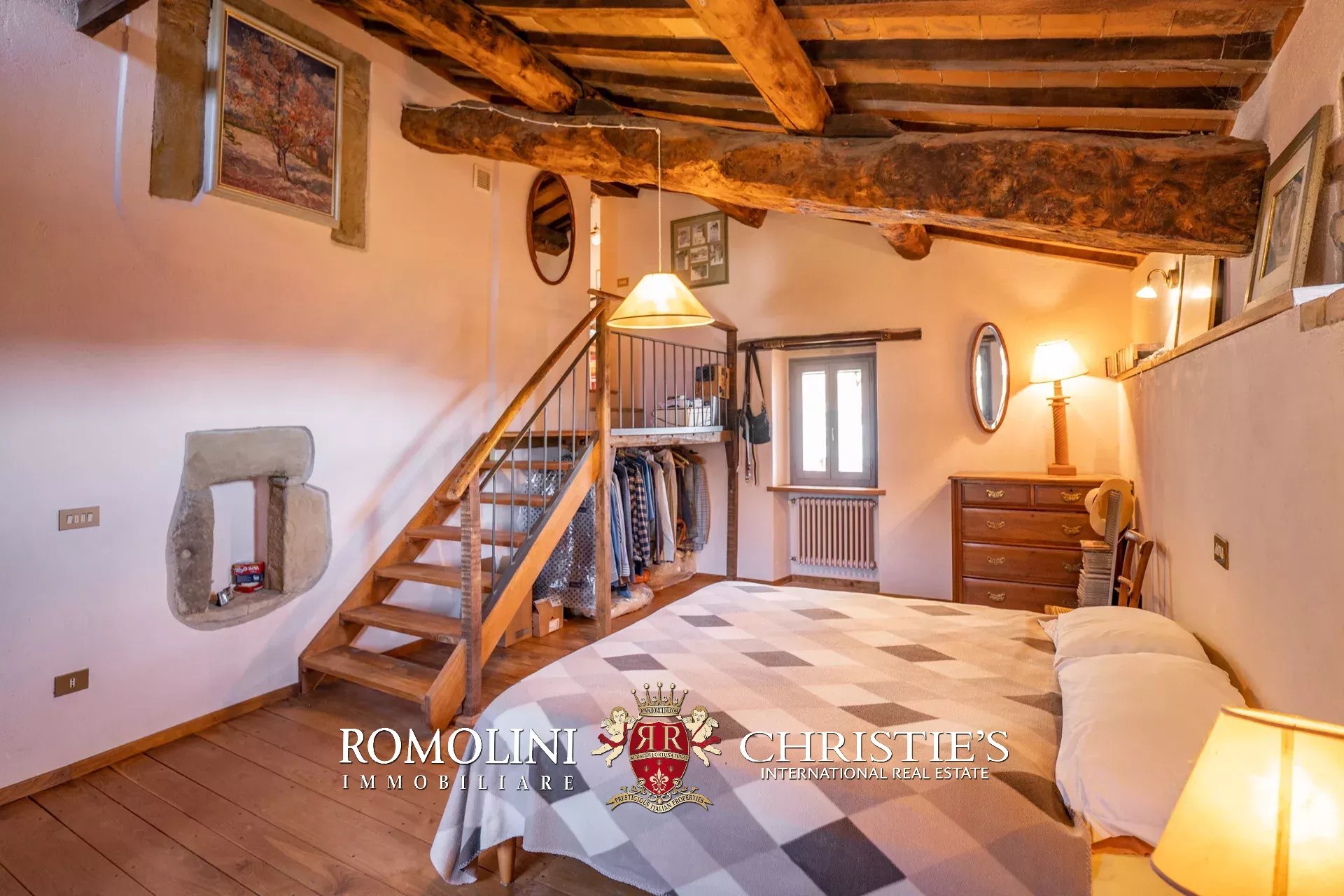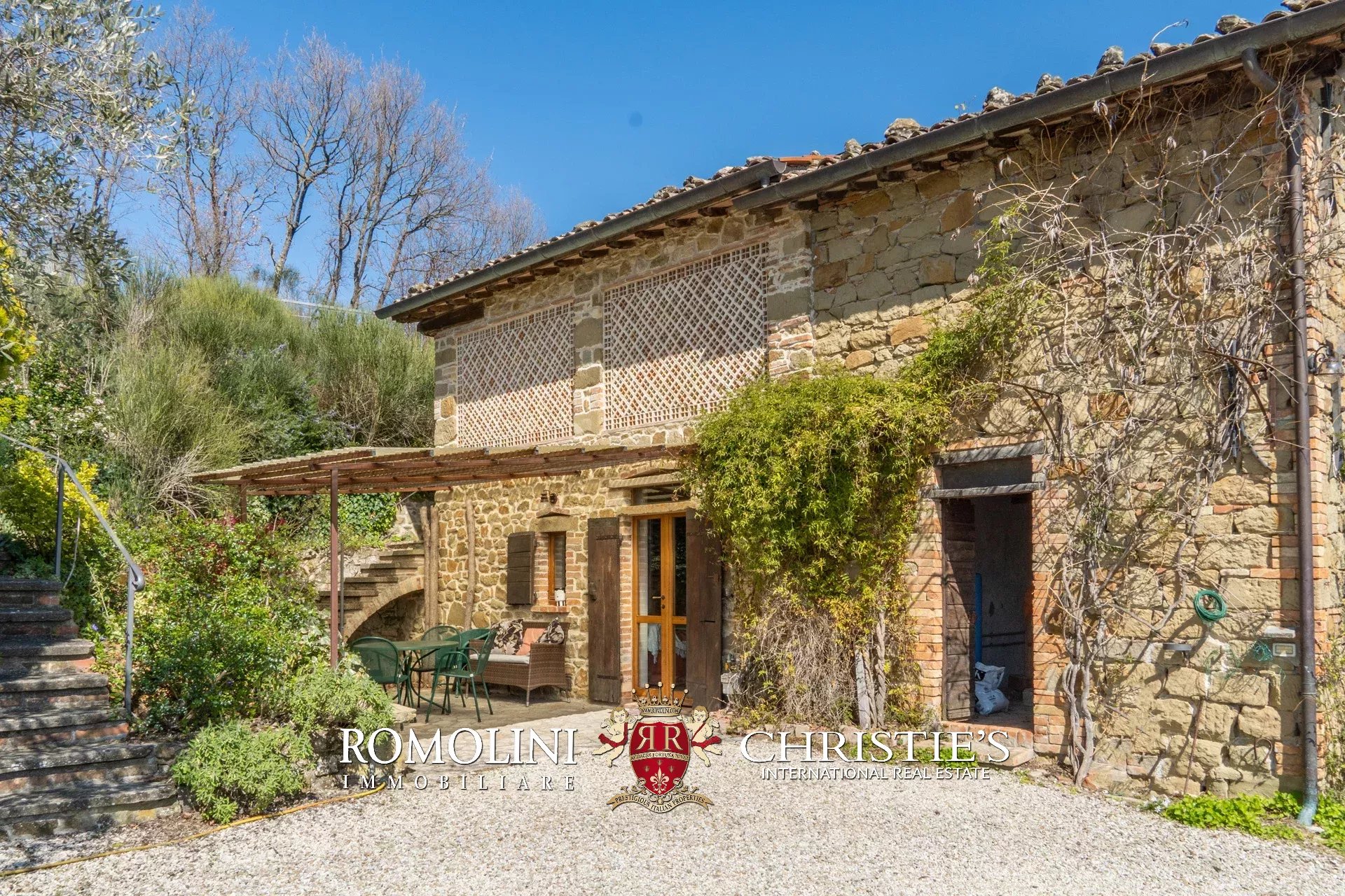 Il casale (255 m², 3 camere e 3 bagni) è un grazioso edificio in pietra, ristrutturato preservandone lo stile rustico e tipico della zona. La casa è attualmente divisa in due appartamenti, uno per piano, oltre a una lavanderia e alla cantina al piano terra.