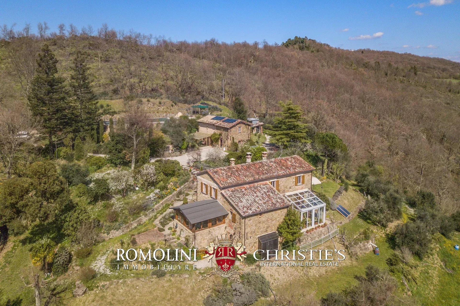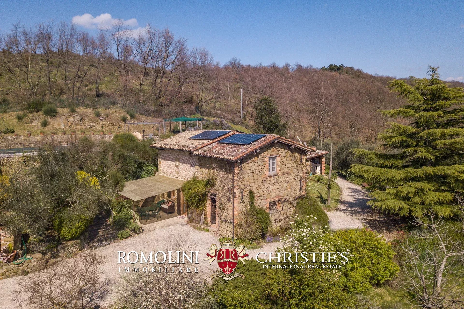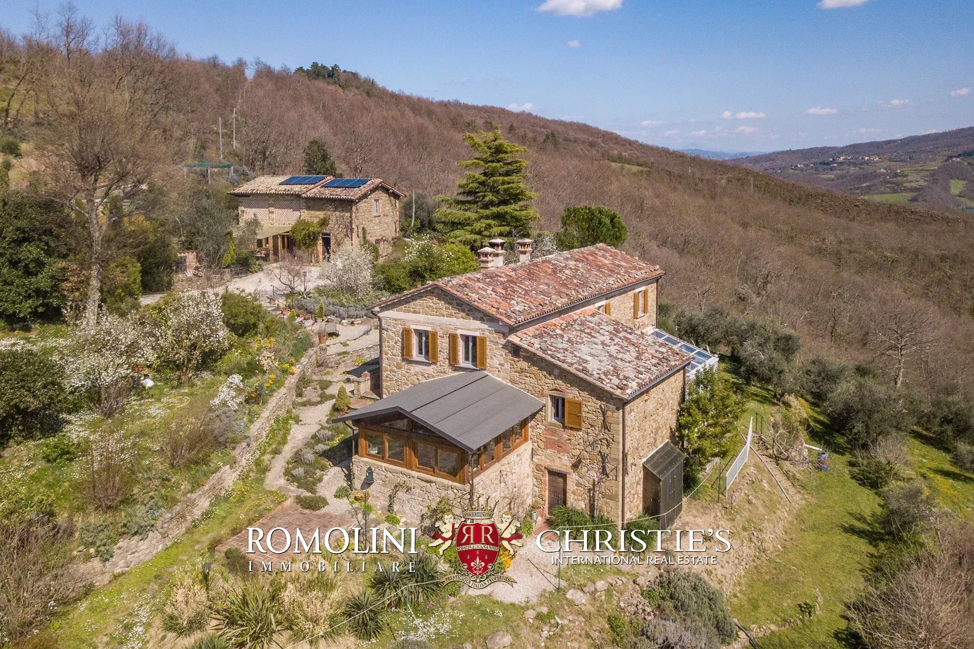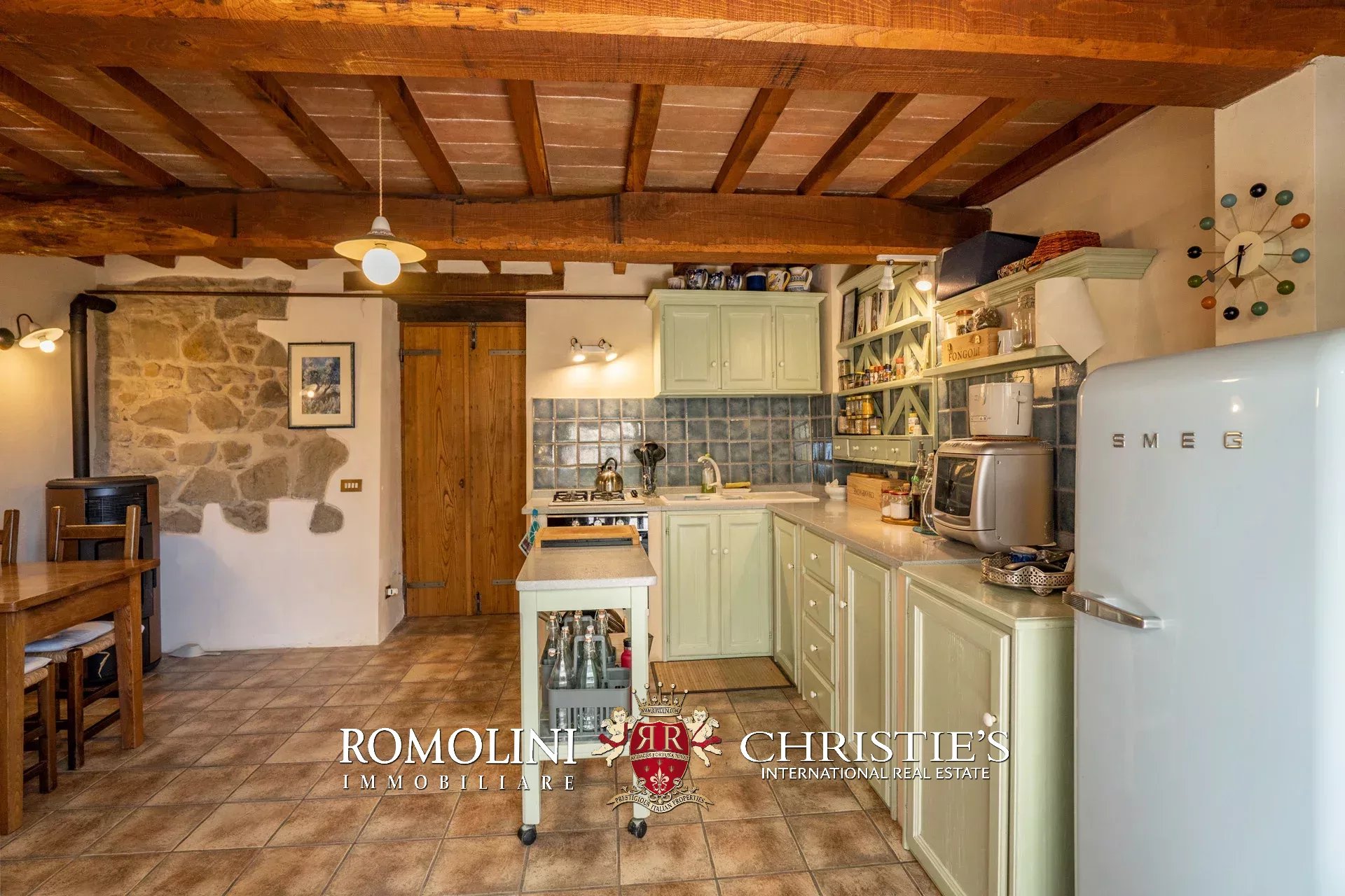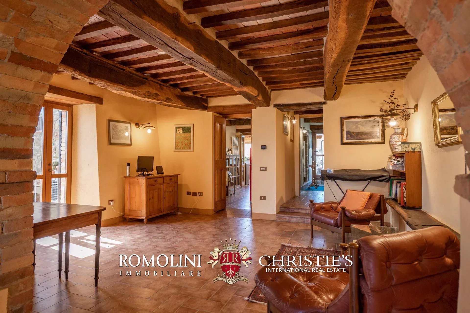 Il casale (255 m², 3 camere e 3 bagni) è un grazioso edificio in pietra, ristrutturato preservandone lo stile rustico e tipico della zona. La casa è attualmente divisa in due appartamenti, uno per piano, oltre a una lavanderia e alla cantina al piano terra.