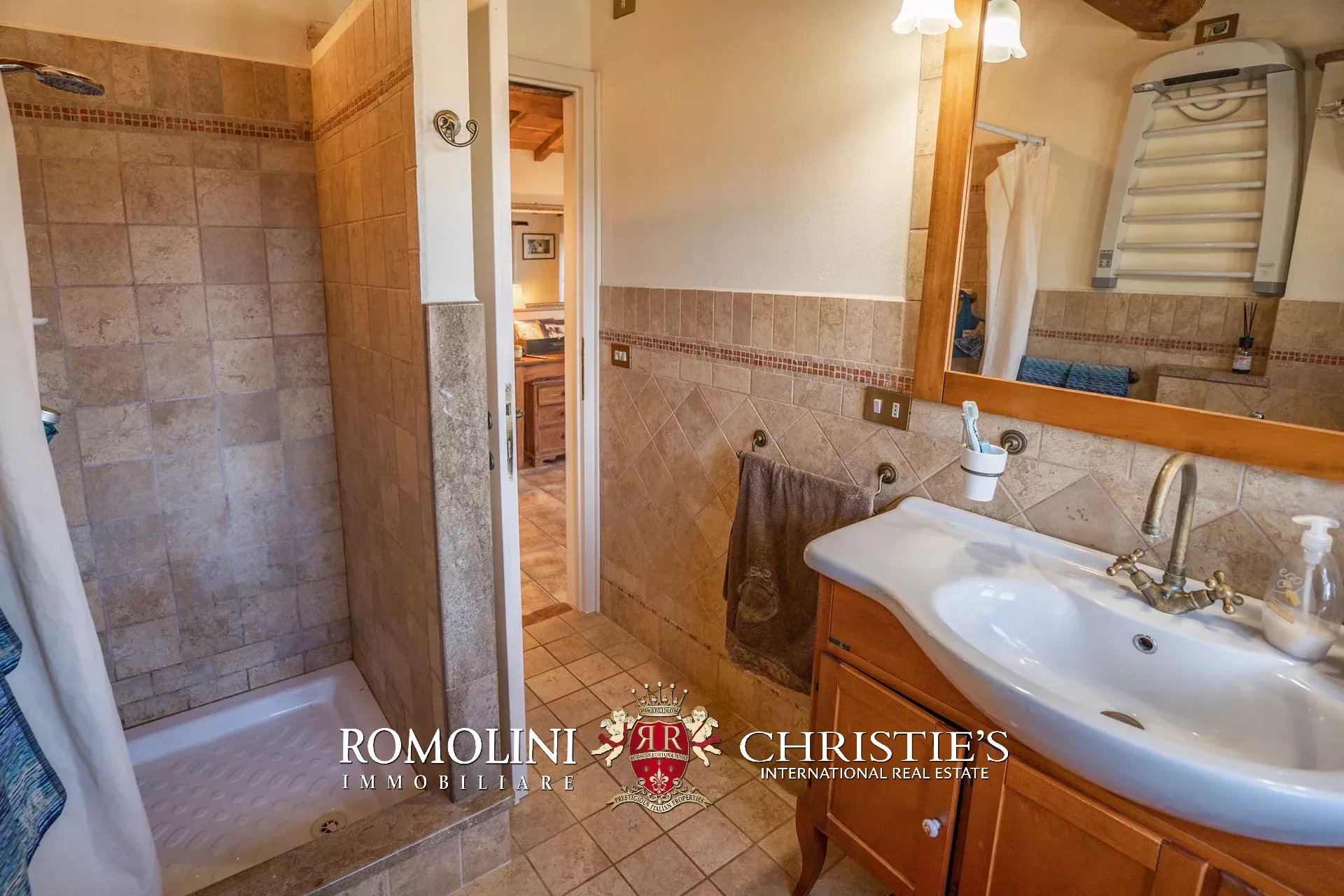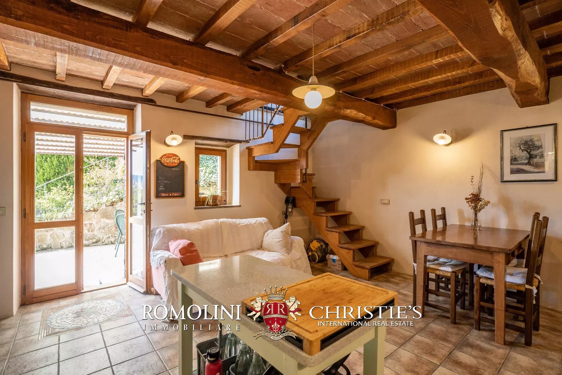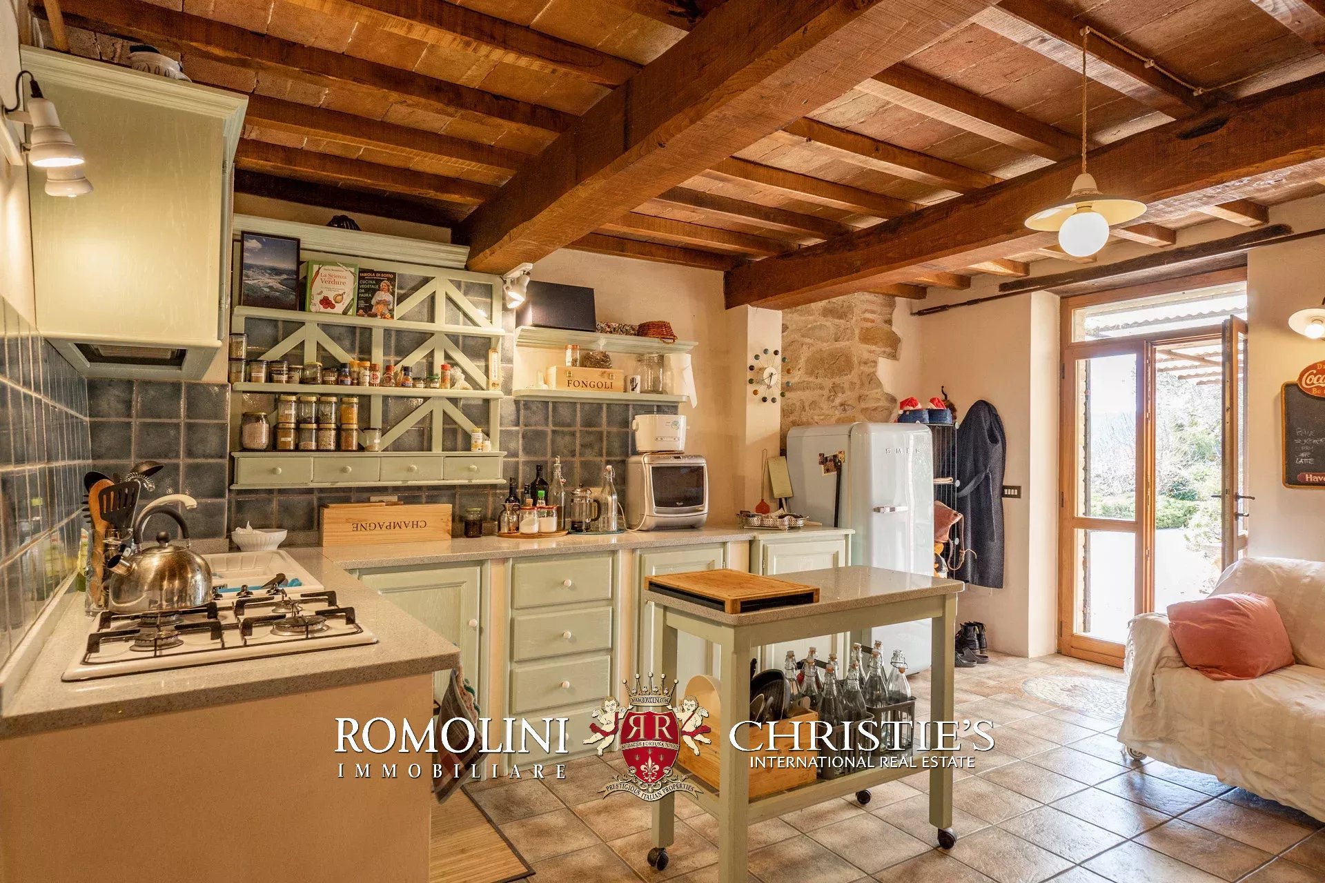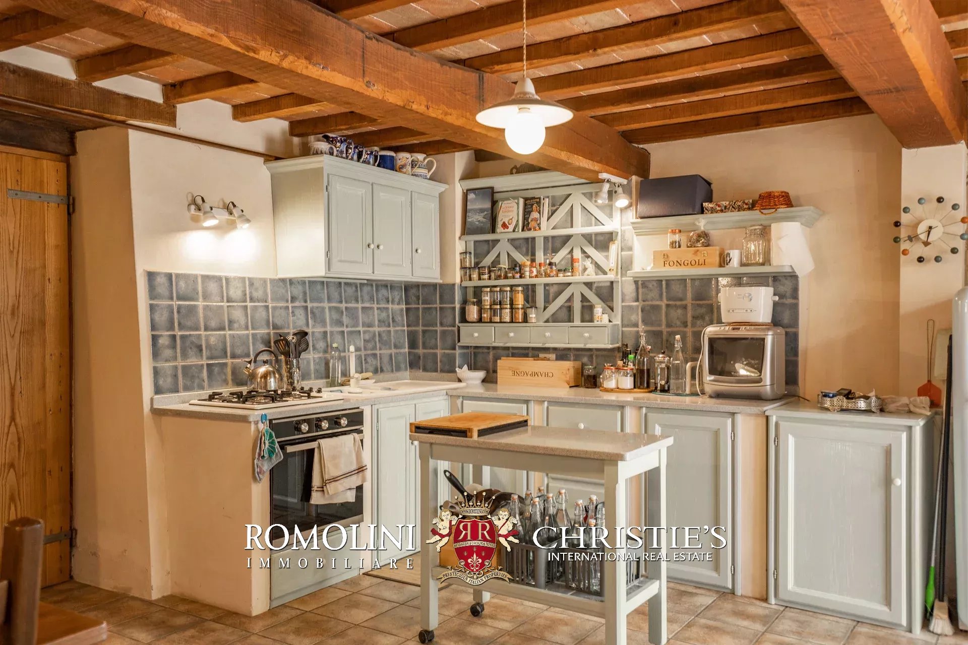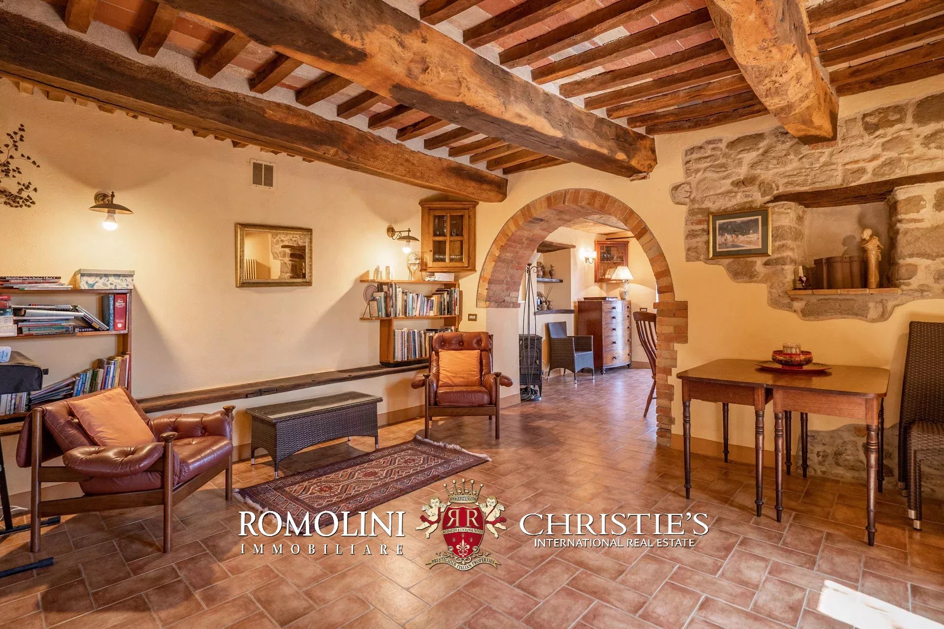 Il casale (255 m², 3 camere e 3 bagni) è un grazioso edificio in pietra, ristrutturato preservandone lo stile rustico e tipico della zona. La casa è attualmente divisa in due appartamenti, uno per piano, oltre a una lavanderia e alla cantina al piano terra.