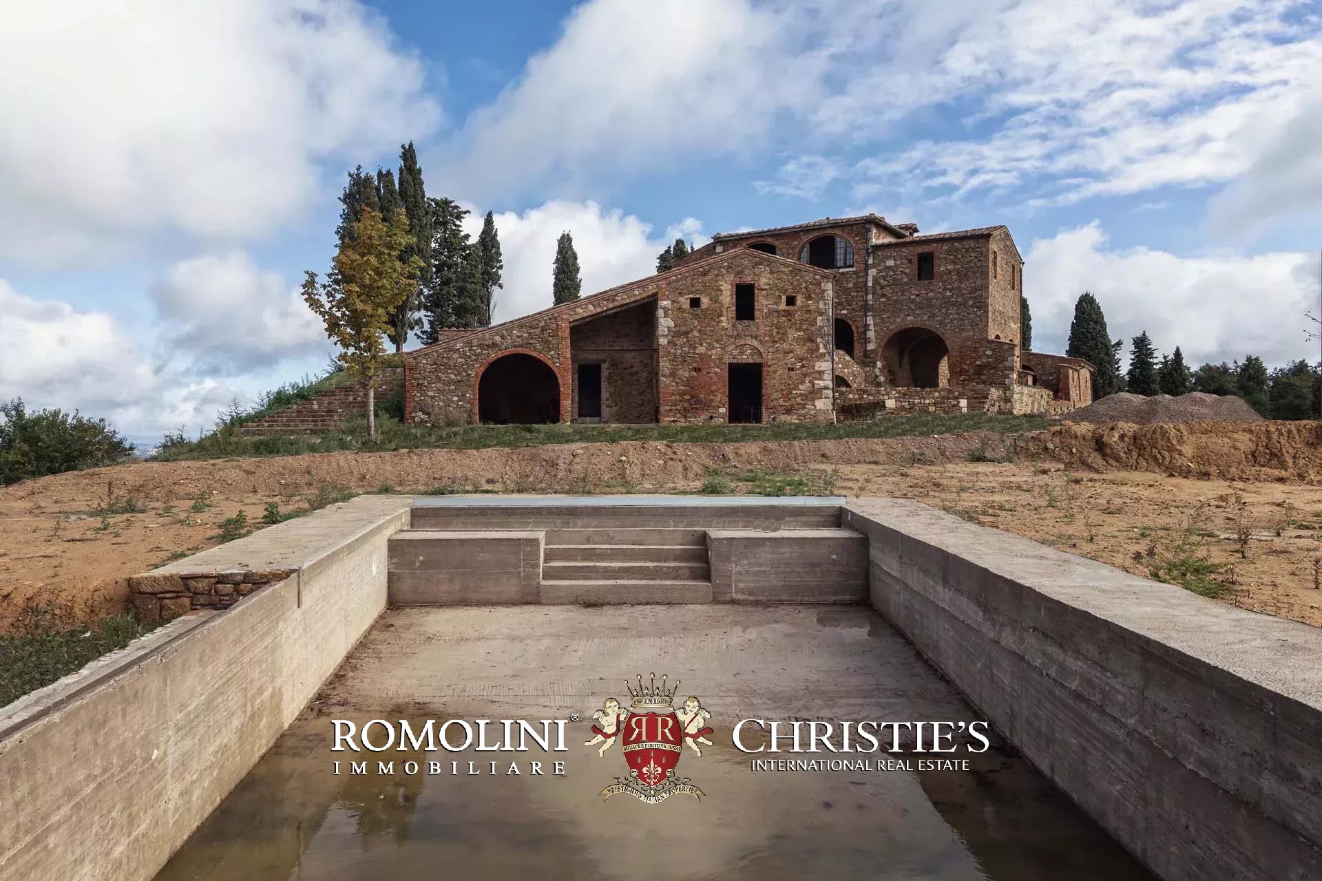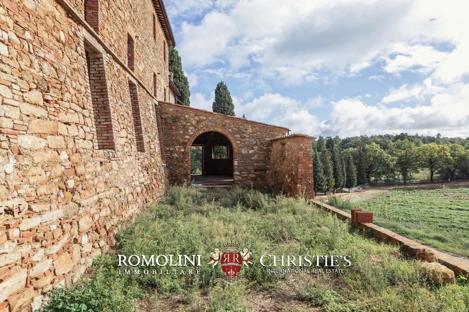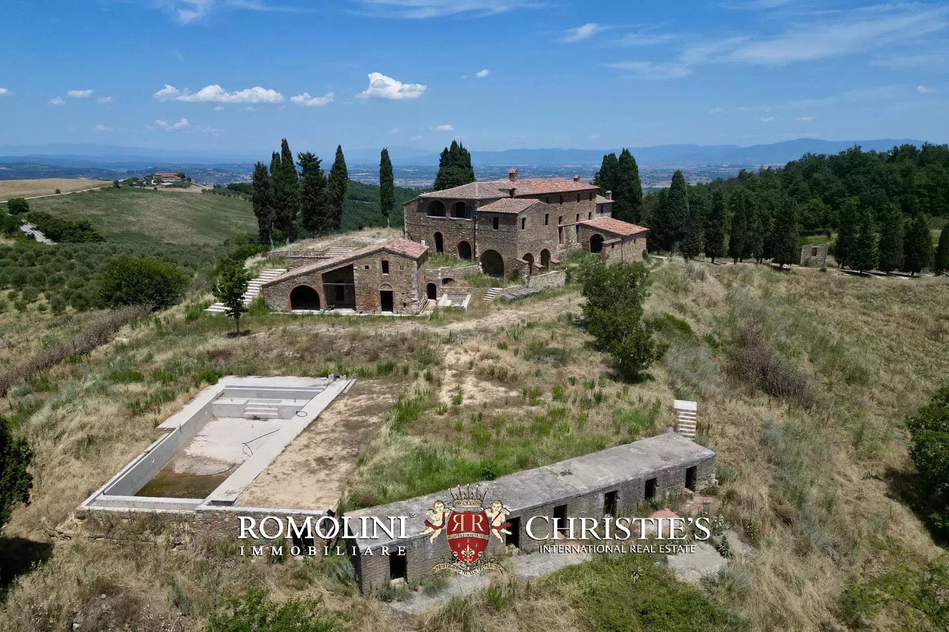 La villa signorile (904 m², 4 camere e 5 bagni) è un grande edificio in pietra e mattoni del XV secolo, in tipico stile toscano, attualmente in ristrutturazione. A livello strutturale il fabbricato è stato interamente consolidato, sia nelle mura che nei tetti, mentre a livello di finiture si trova in stato di grezzo da completare. Durante i lavori la scelta è stata quella di preservare tutte le finiture originali del casale che quindi mantiene inalterati i soffitti a volta tipici dei locali agricoli al piano inferiore, le travi in legno sui soffitti e le grandi arcate esterne che incorniciano i porticati. Il progetto attualmente presentato prevede la seguente distribuzione: