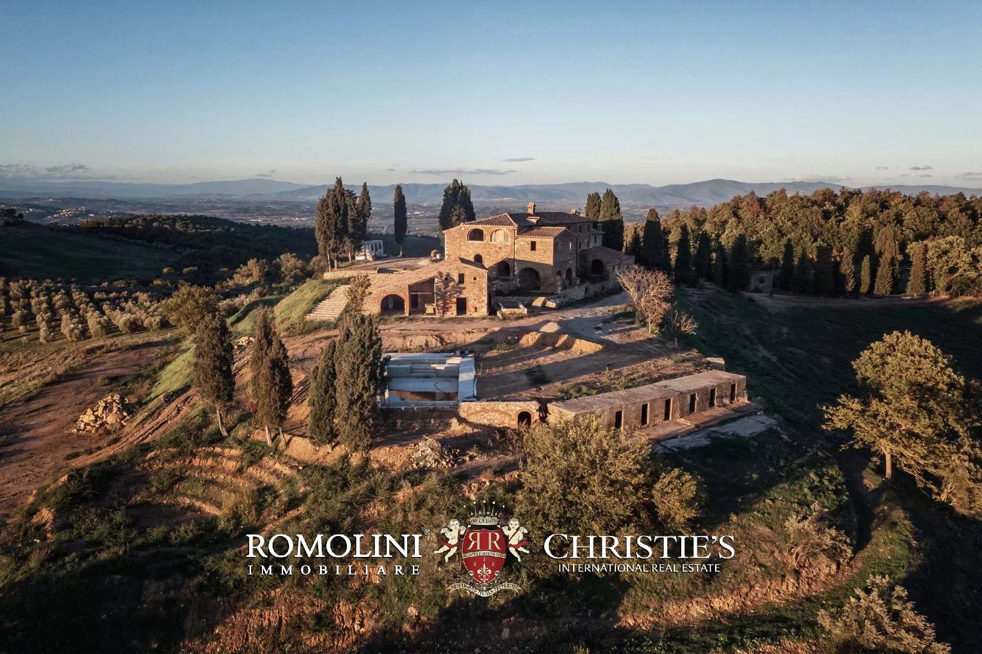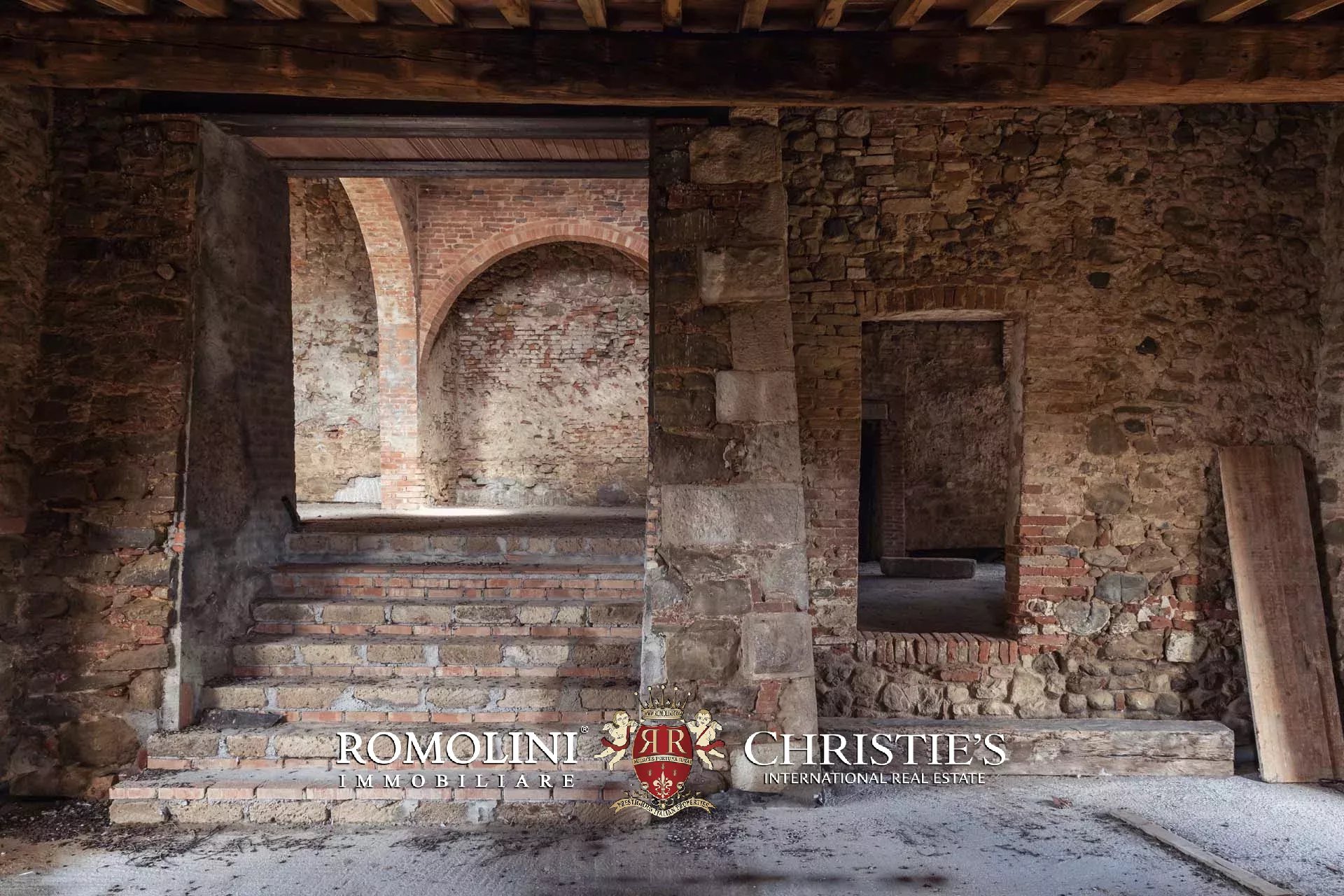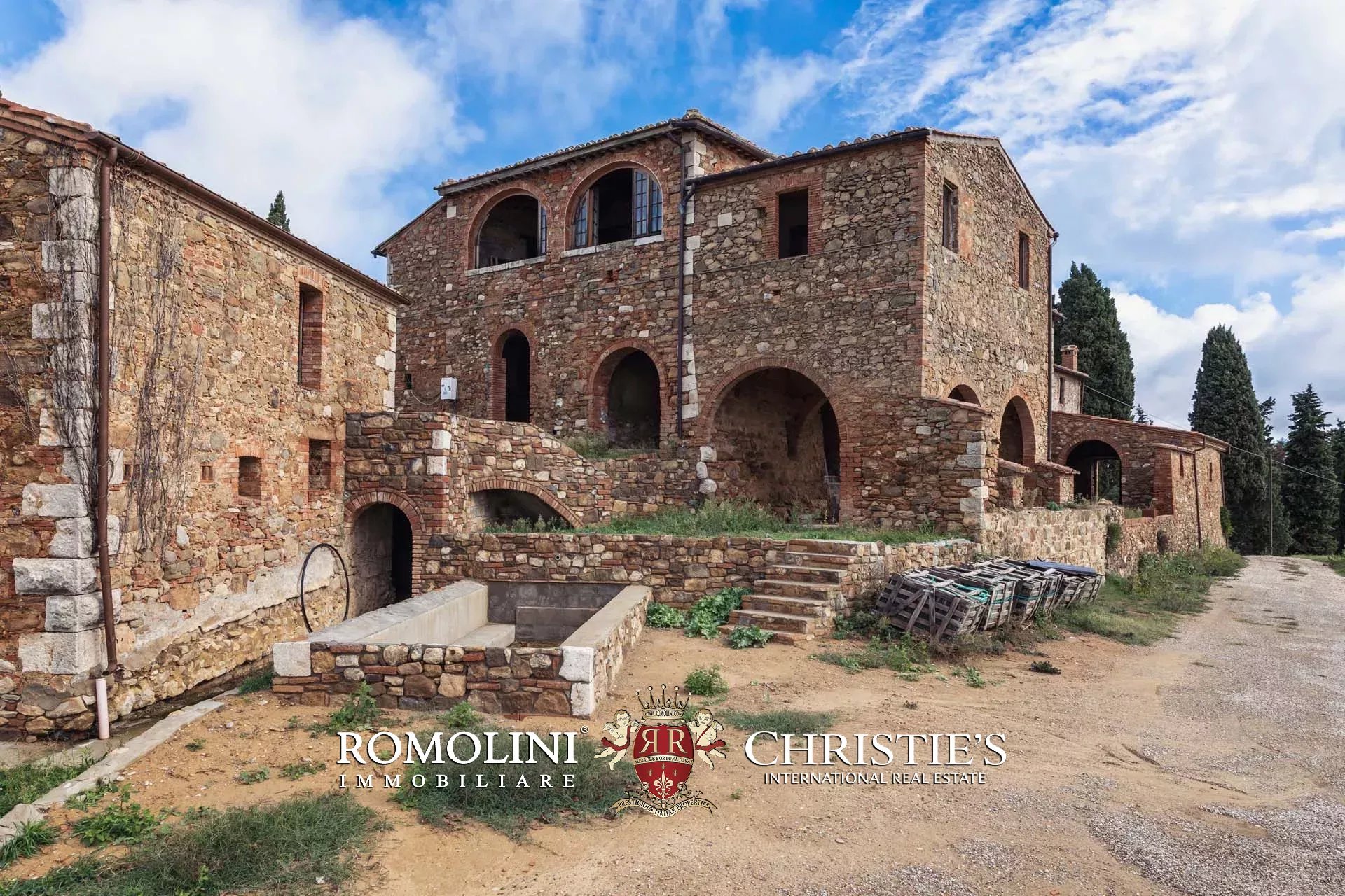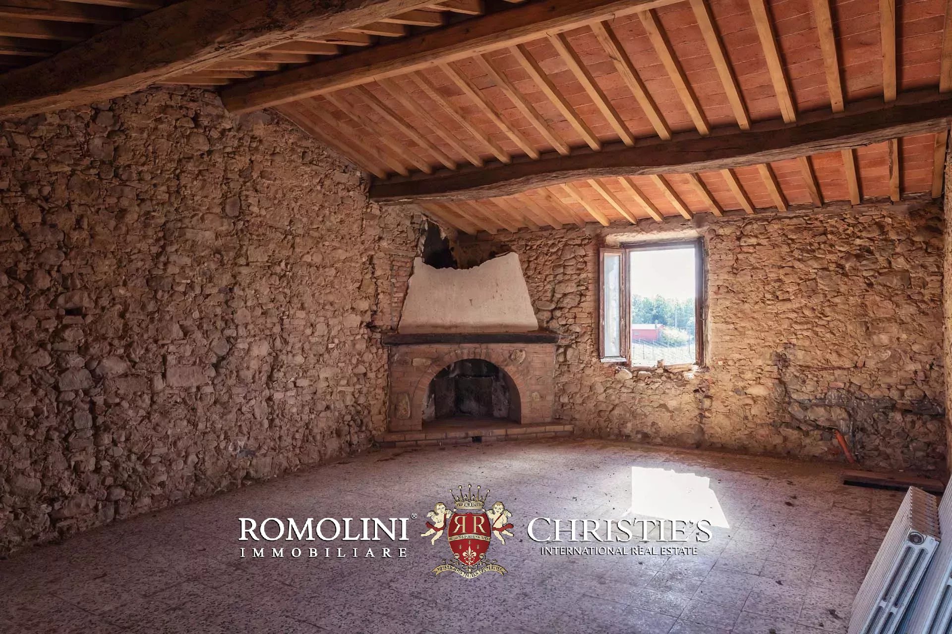 La villa signorile (904 m², 4 camere e 5 bagni) è un grande edificio in pietra e mattoni del XV secolo, in tipico stile toscano, attualmente in ristrutturazione. A livello strutturale il fabbricato è stato interamente consolidato, sia nelle mura che nei tetti, mentre a livello di finiture si trova in stato di grezzo da completare. Durante i lavori la scelta è stata quella di preservare tutte le finiture originali del casale che quindi mantiene inalterati i soffitti a volta tipici dei locali agricoli al piano inferiore, le travi in legno sui soffitti e le grandi arcate esterne che incorniciano i porticati. Il progetto attualmente presentato prevede la seguente distribuzione: