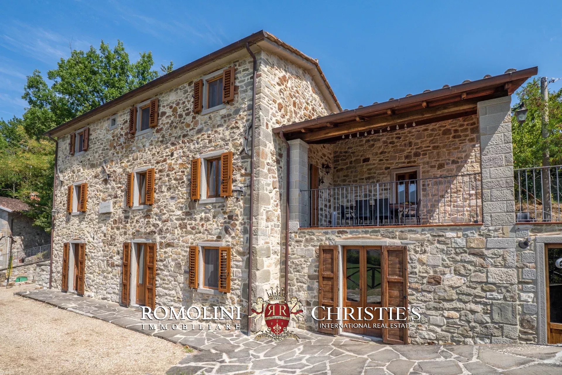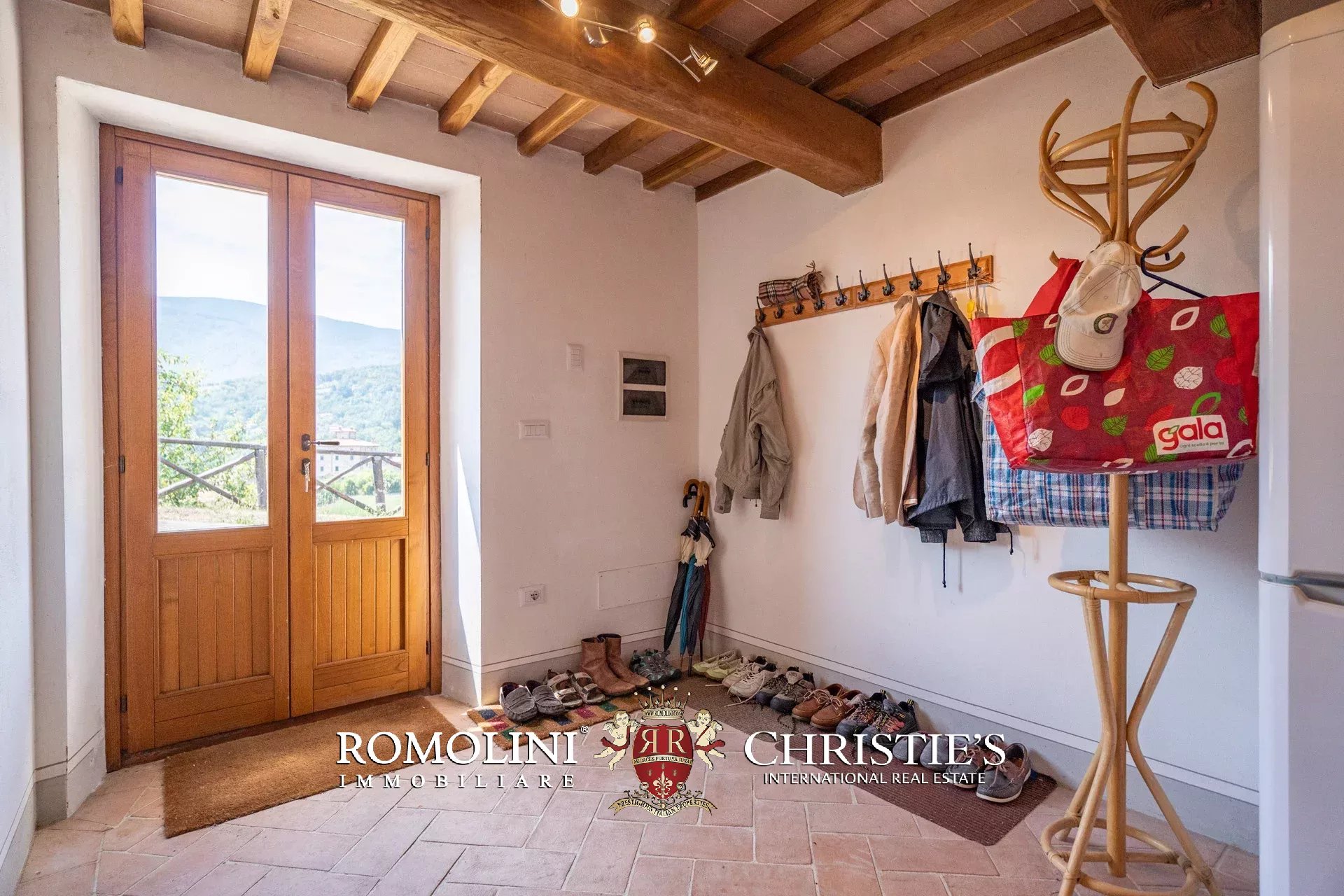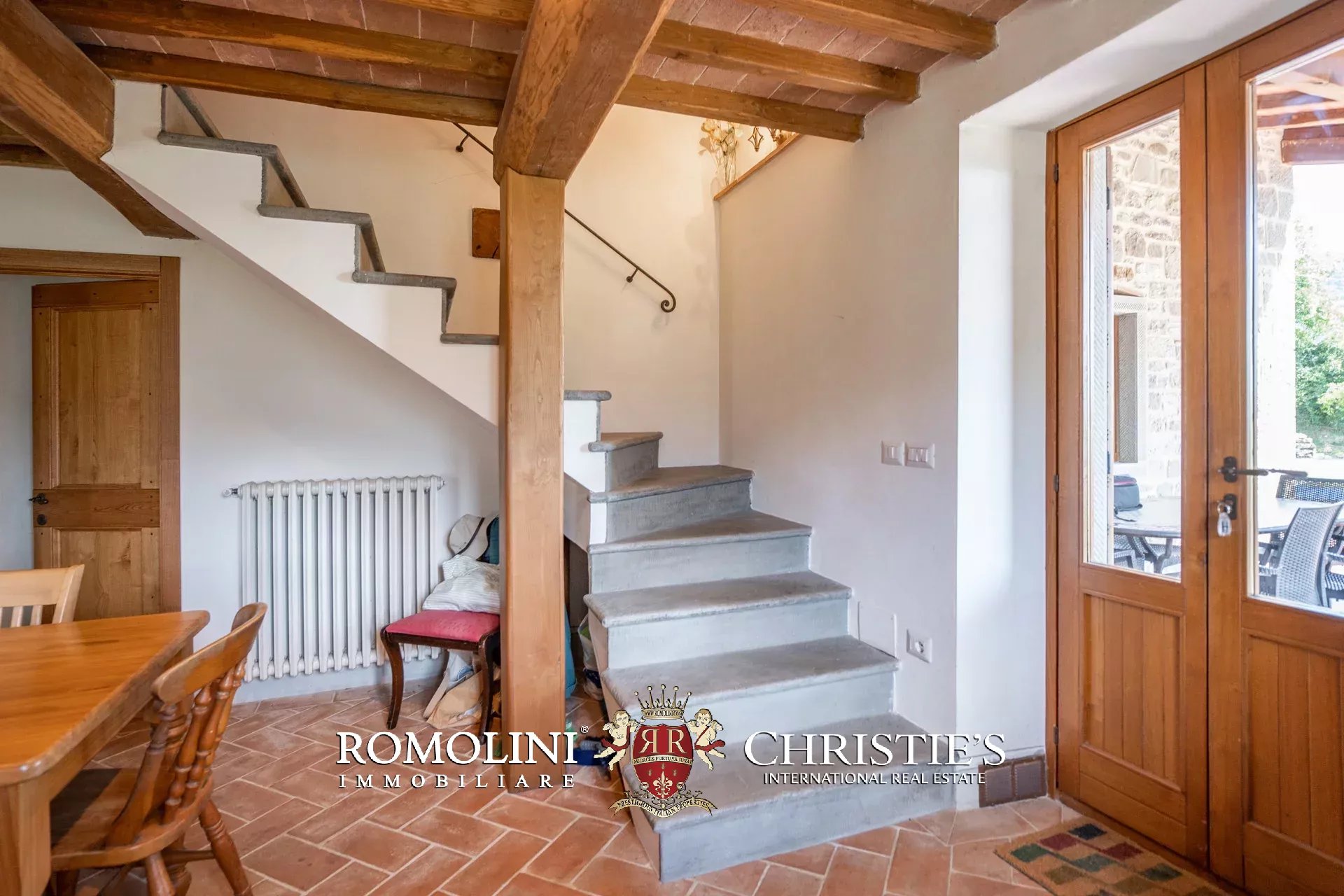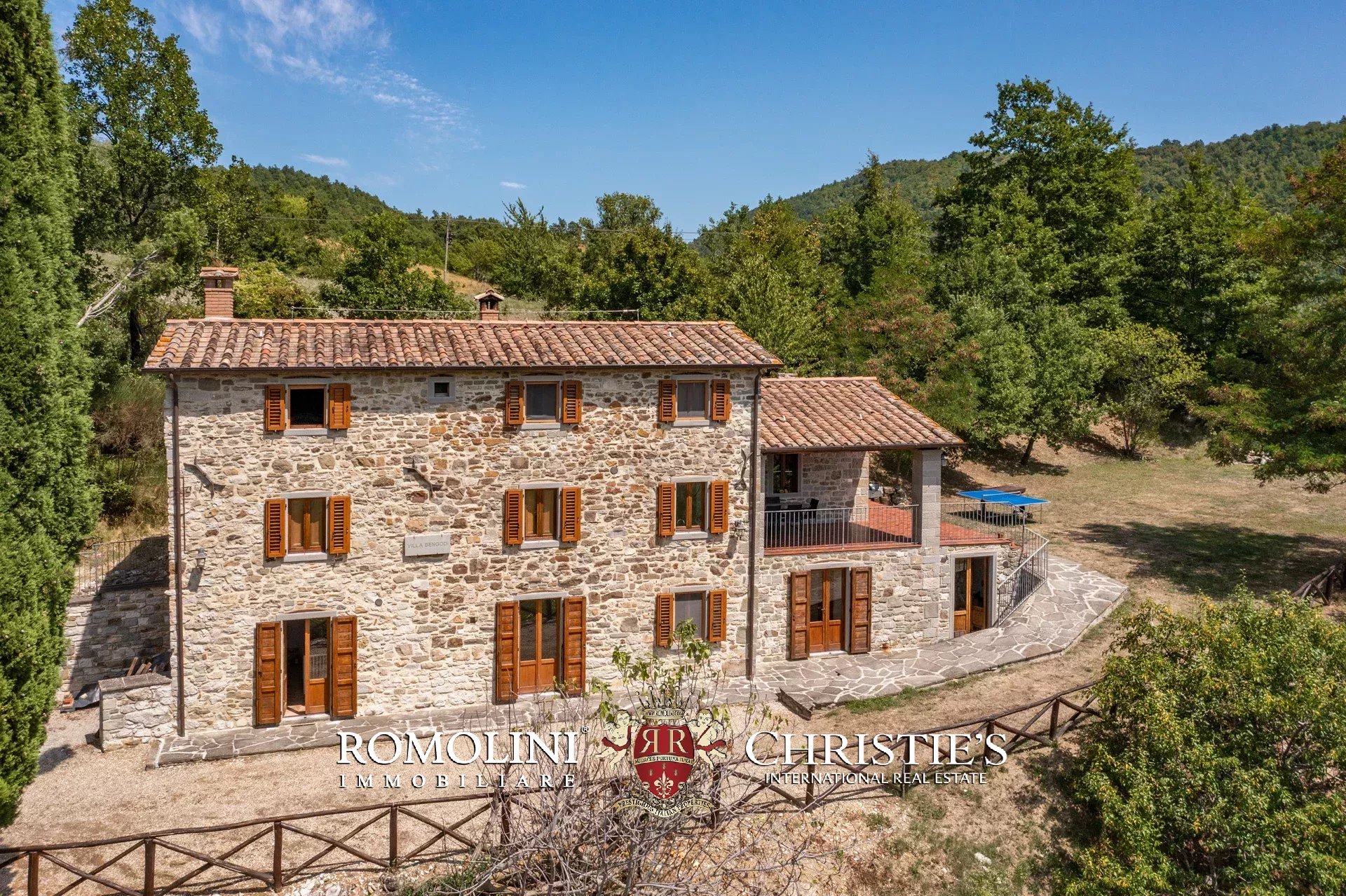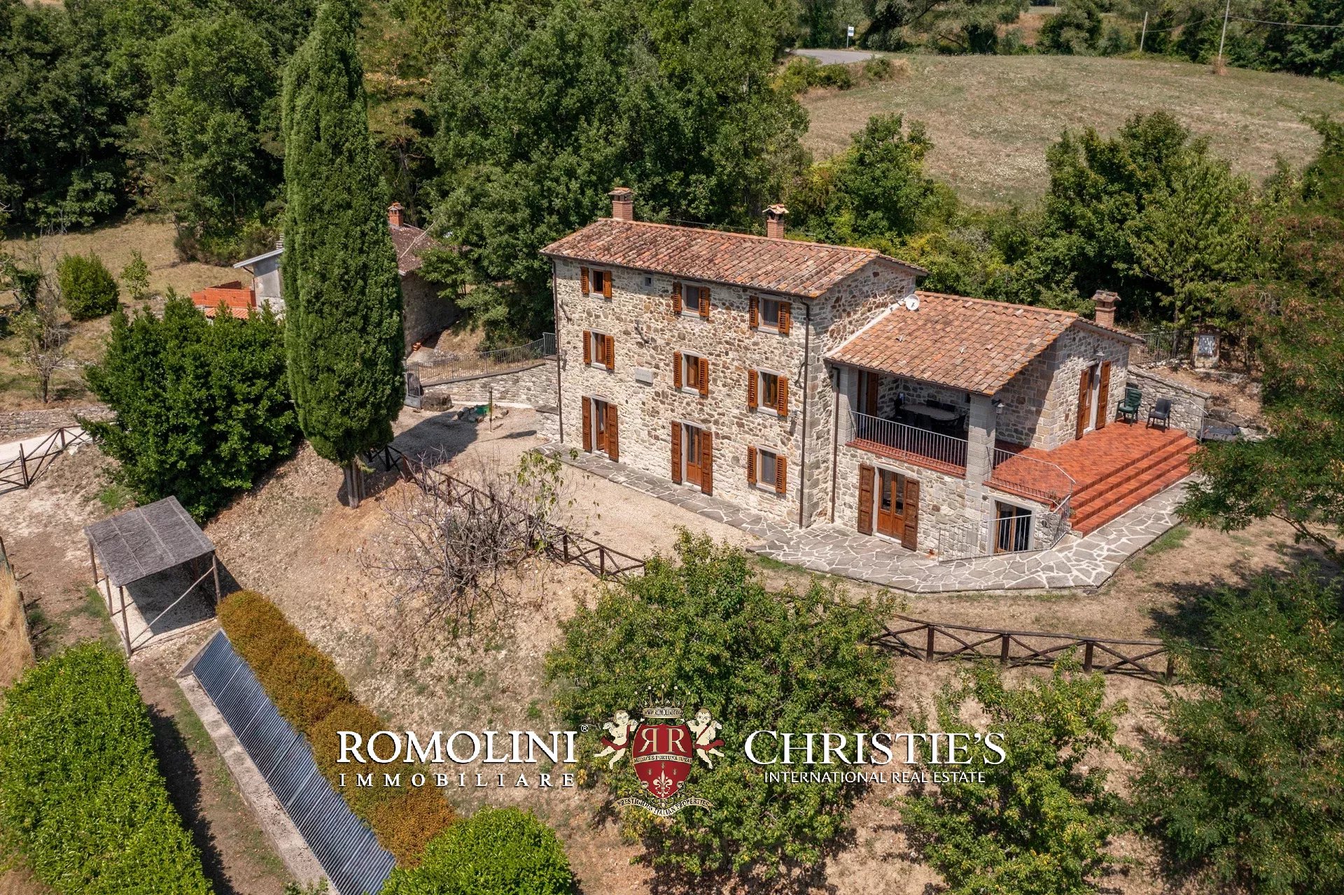 Immerso nel verde delle colline toscane, in posizione panoramica nel comune di Caprese Michelangelo, suggestivo casale ristrutturato con piscina in vendita. La casa (230 m²), facilmente accessibile tramite strada asfaltata, si sviluppa su tre livelli: