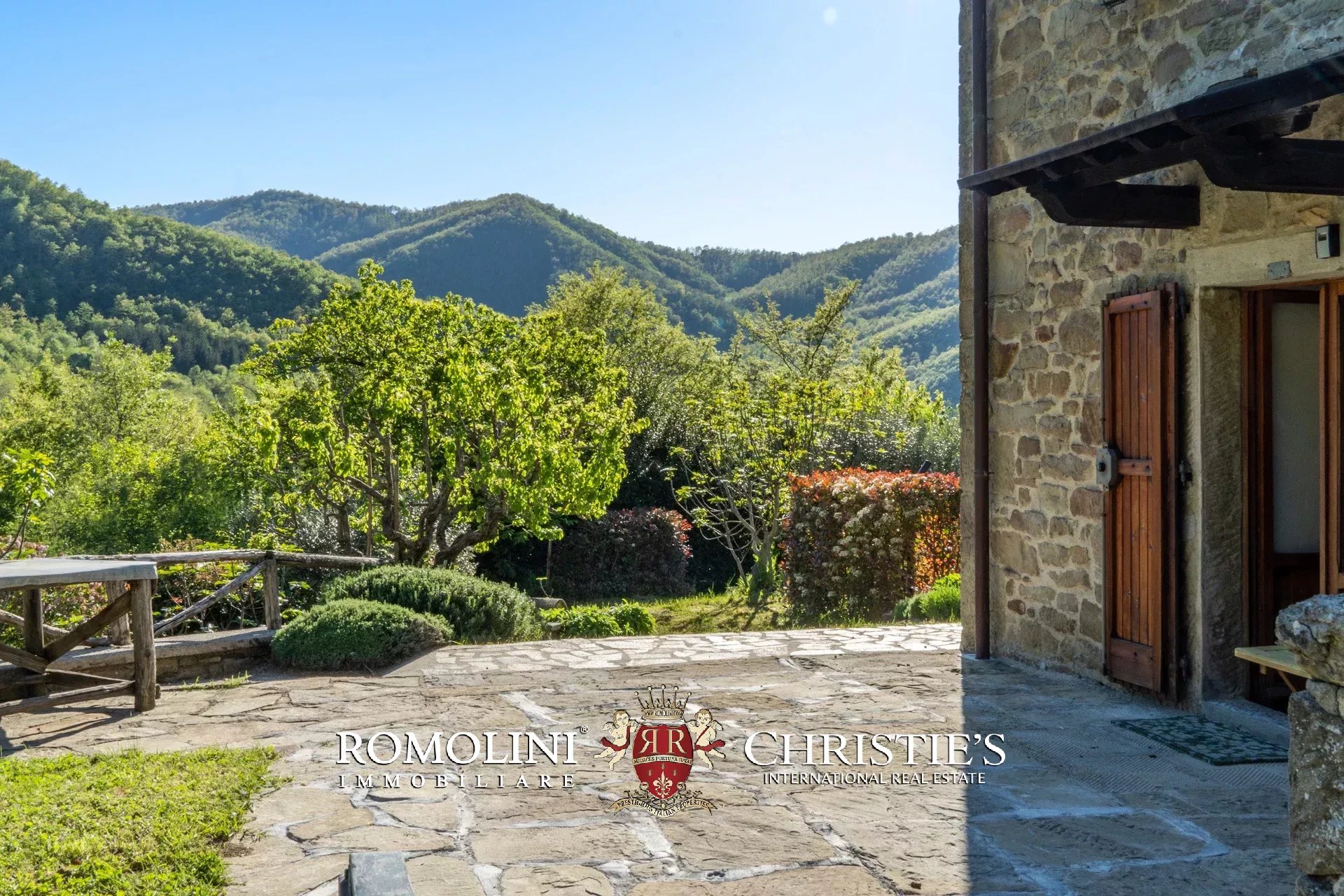 Gli edifici sono circondati da circa 1,9 ettari di terreno, coperti prevalentemente da prati e seminativi e attorniati da boschi che assicurano privacy e riservatezza. Di fronte al casale è stata costruita la piscina 8 × 4 m con solarium in pietra. Il giardino è piantumato con erbe aromatiche (rosmarino, timo, lavanda, salvia e origano) e alberi da frutto (ciliegi Bigarreau, prugni, meli, peri, mandorli, kaki, viti, peschi, noccioli e castagni).