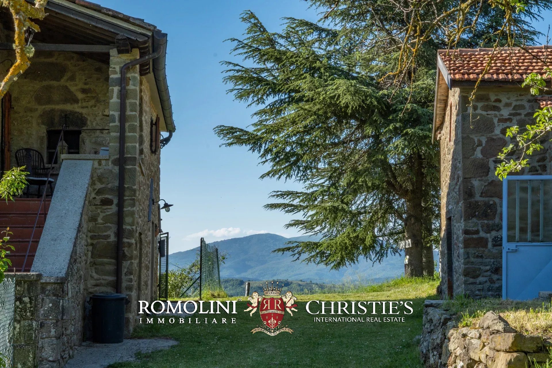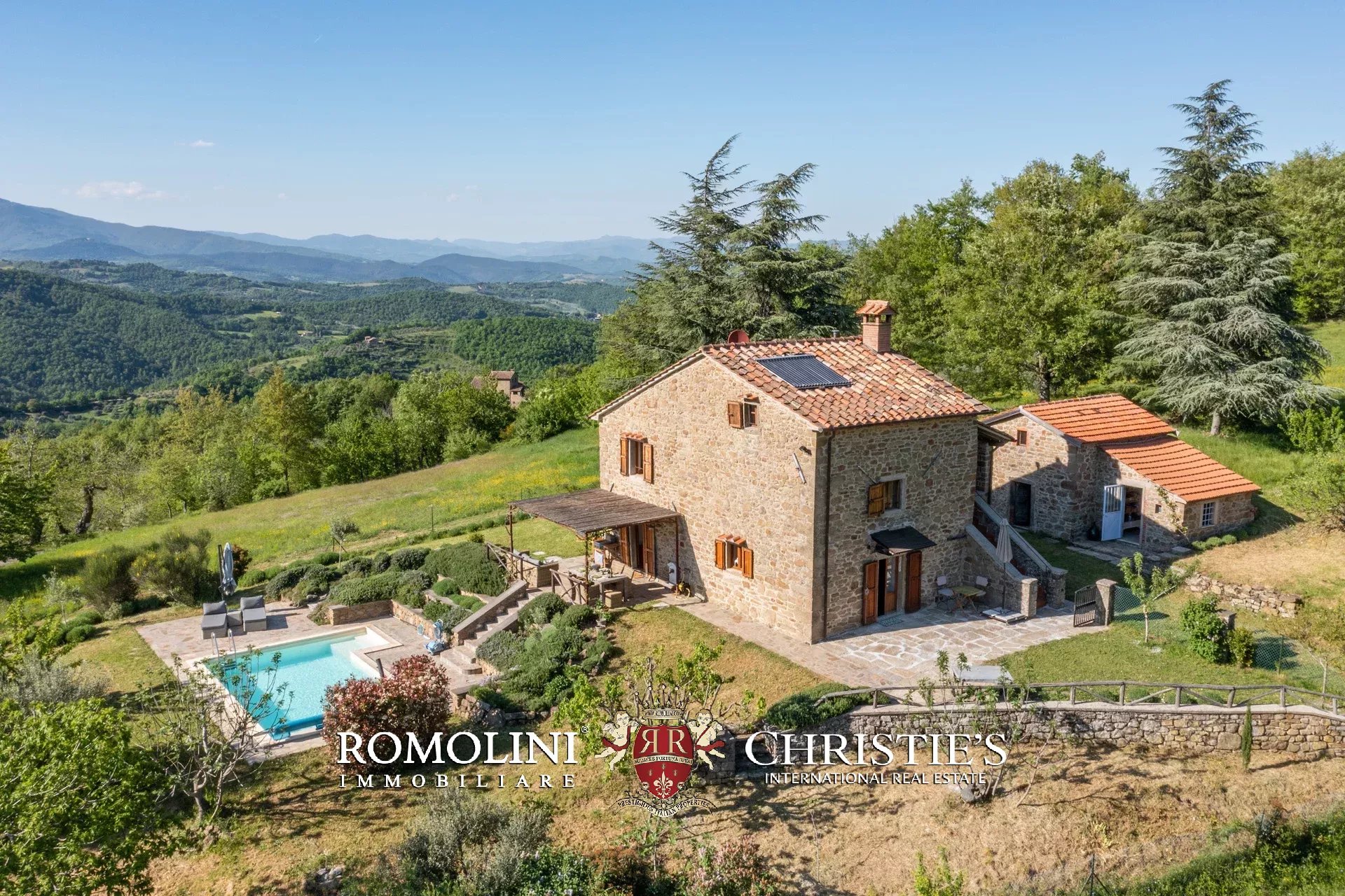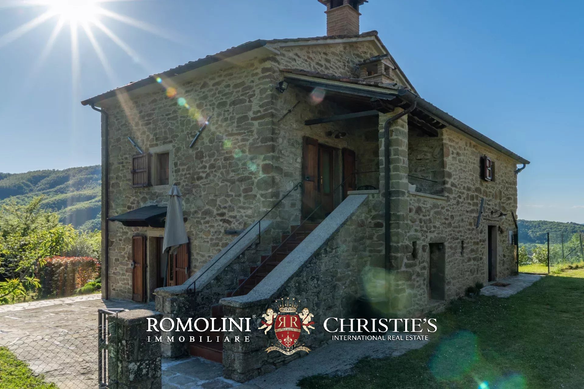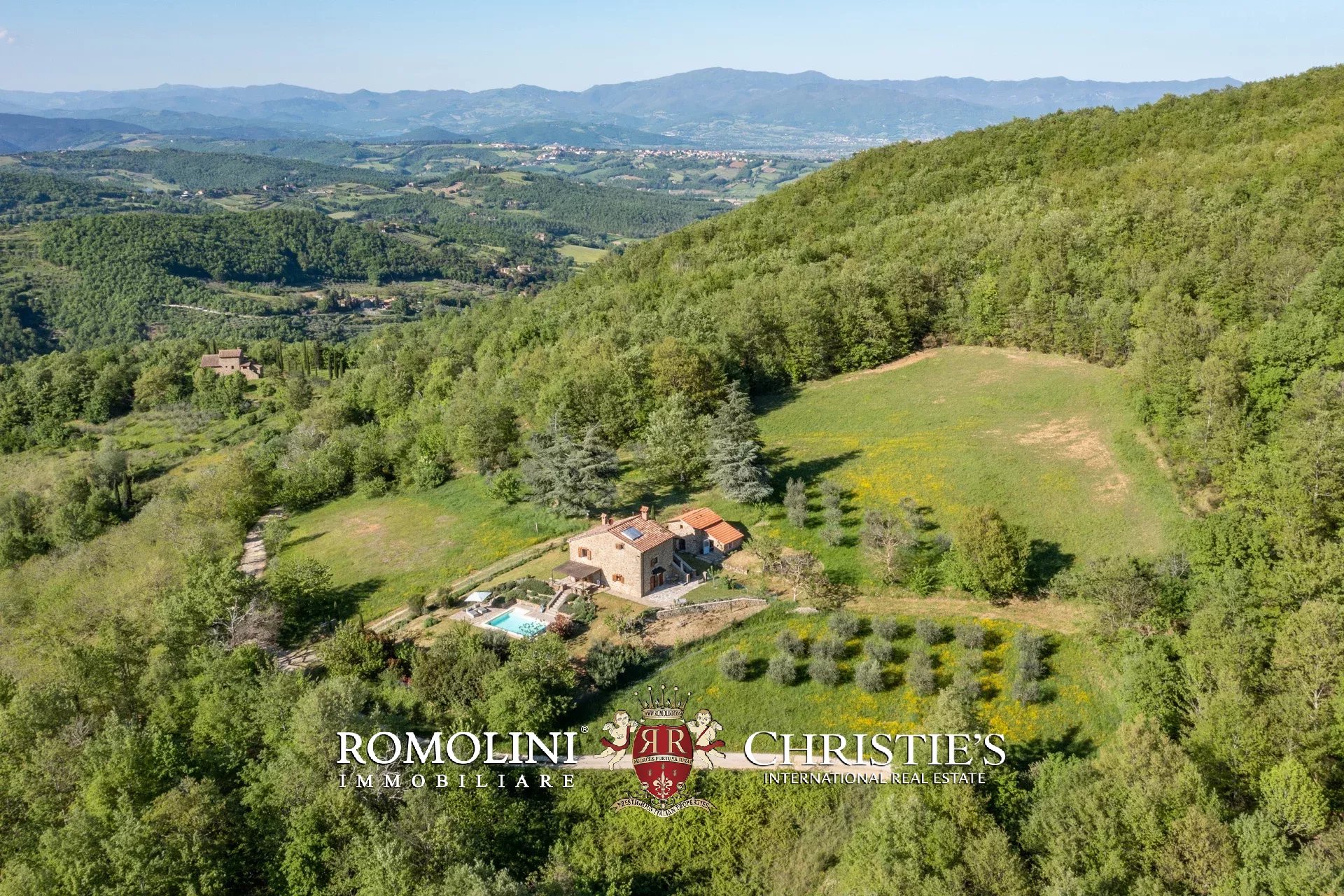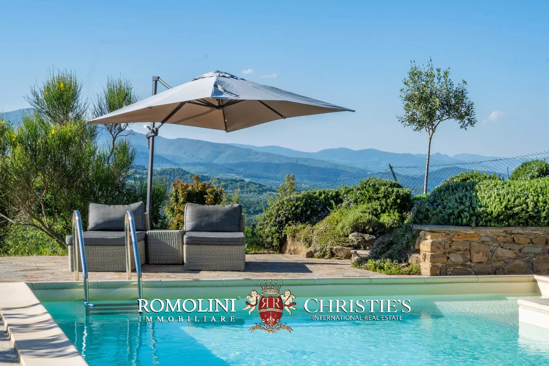 In posizione panoramica in cima a una collina, non lontano da Anghiari, casale finemente ristrutturato con piscina e dependance in vendita. L’immobile, molto curato e rifinito con gusto, è attualmente affittato dai proprietari come casa vacanze con ottimi risultati ma si presta molto bene a divenire una casa privata per chi cerca pace e tranquillità.