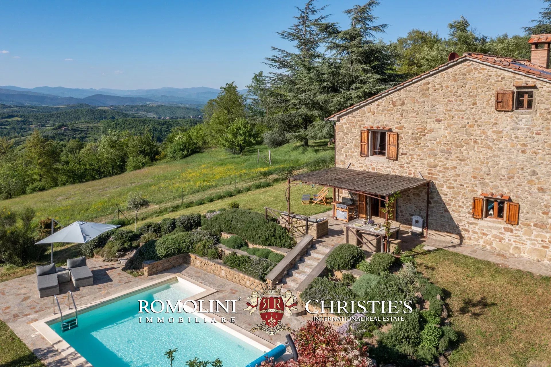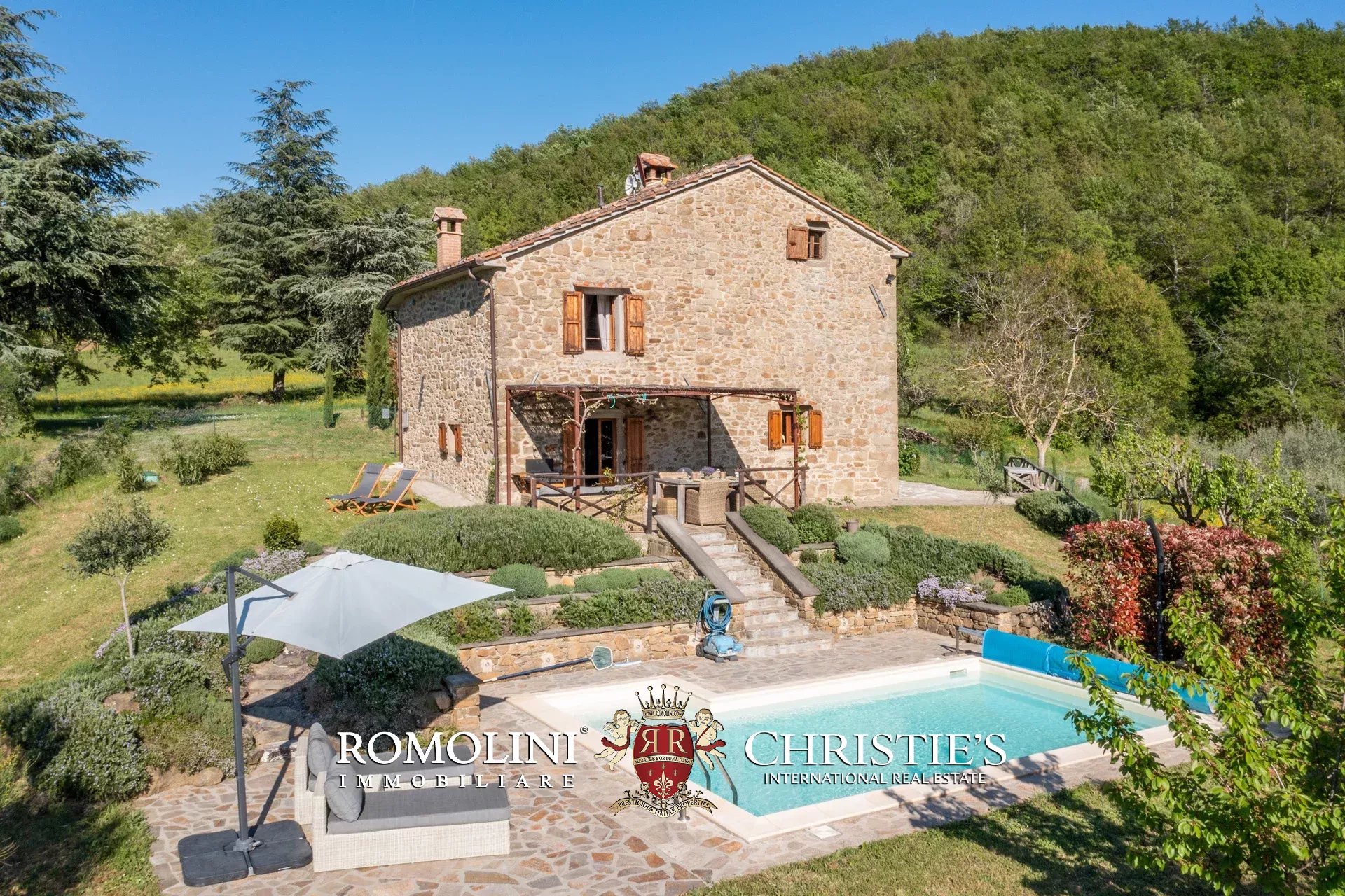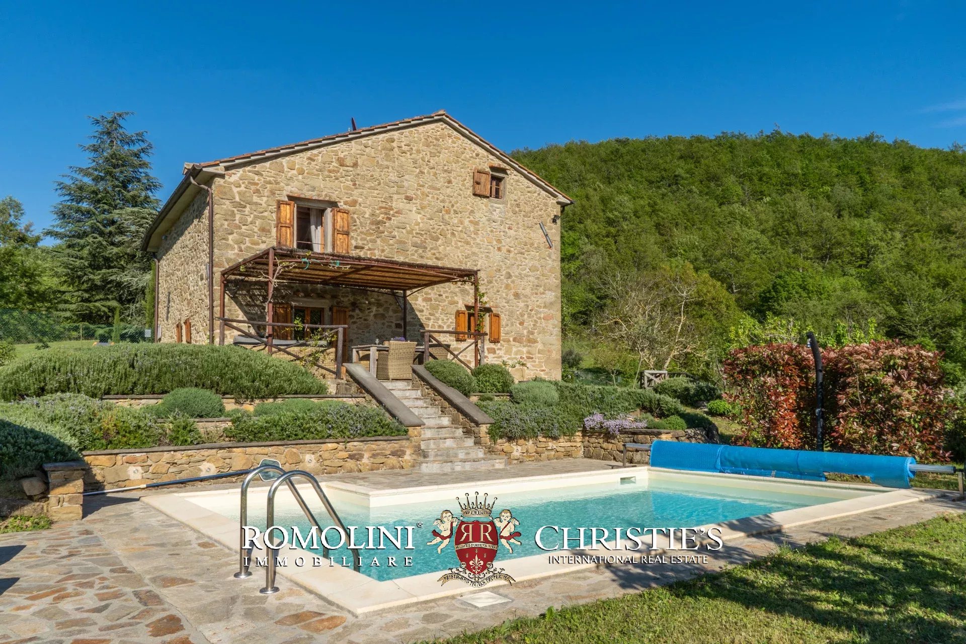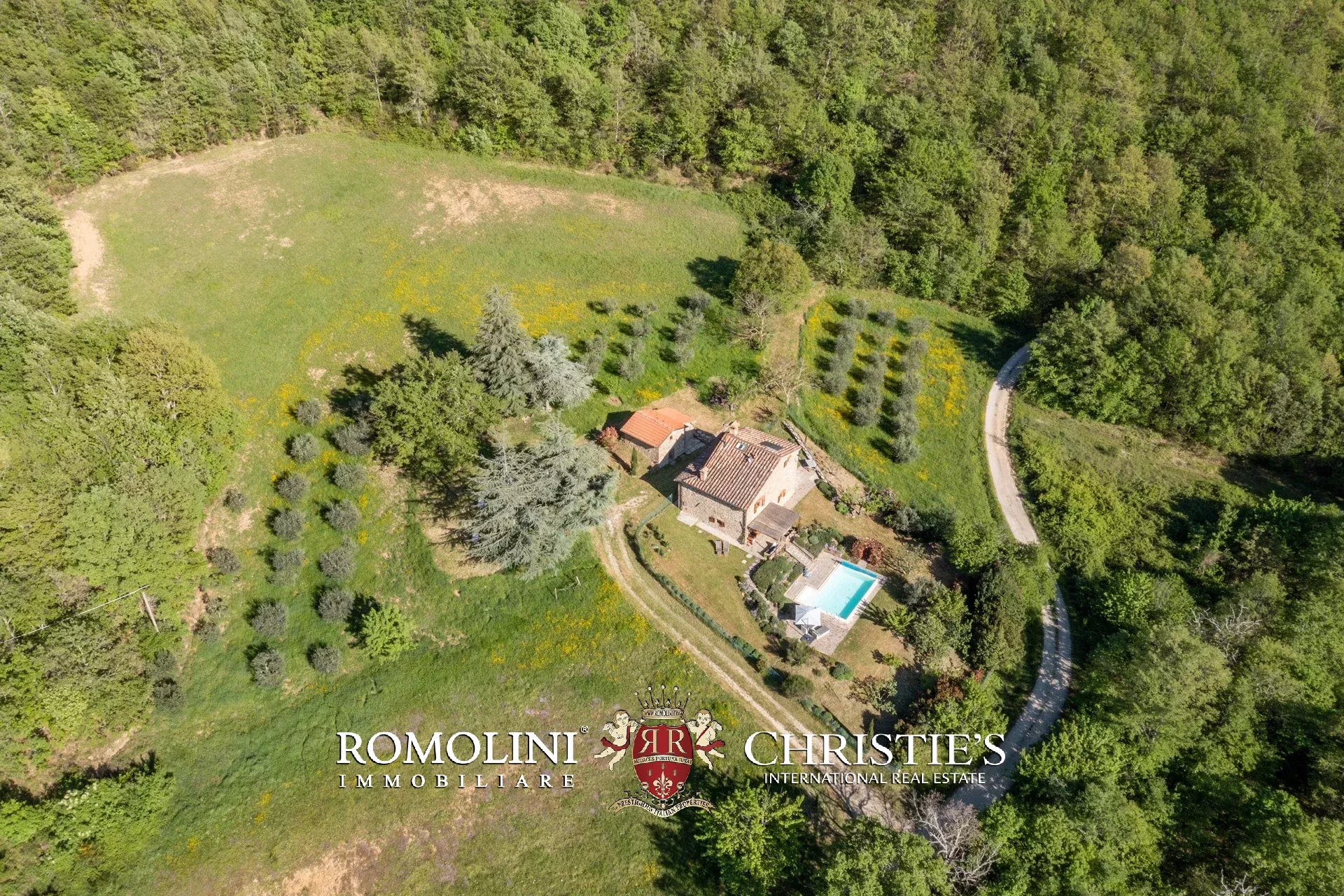 In posizione panoramica in cima a una collina, non lontano da Anghiari, casale finemente ristrutturato con piscina e dependance in vendita. L’immobile, molto curato e rifinito con gusto, è attualmente affittato dai proprietari come casa vacanze con ottimi risultati ma si presta molto bene a divenire una casa privata per chi cerca pace e tranquillità.