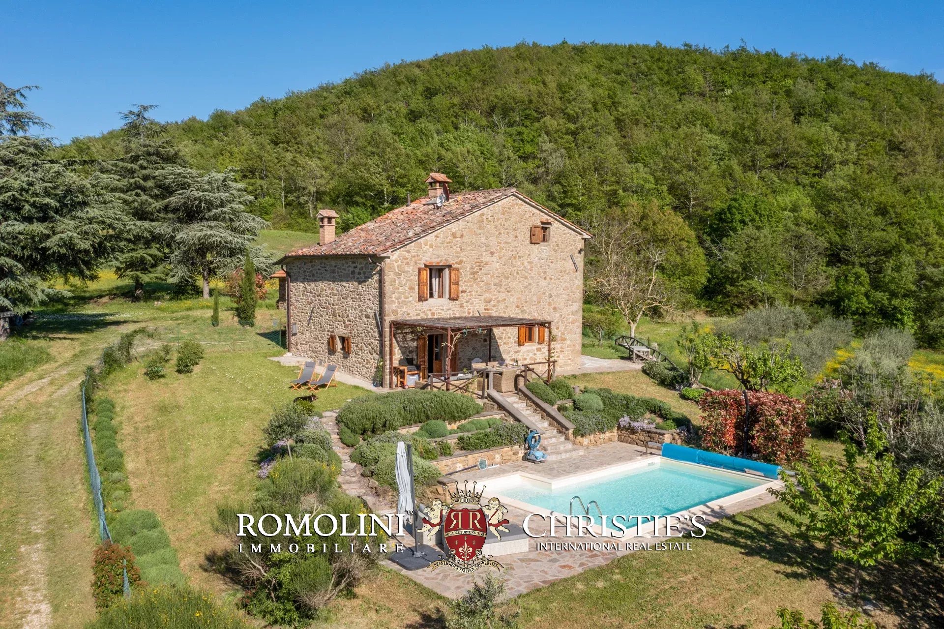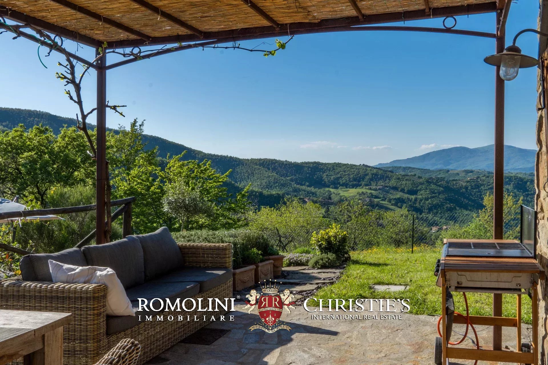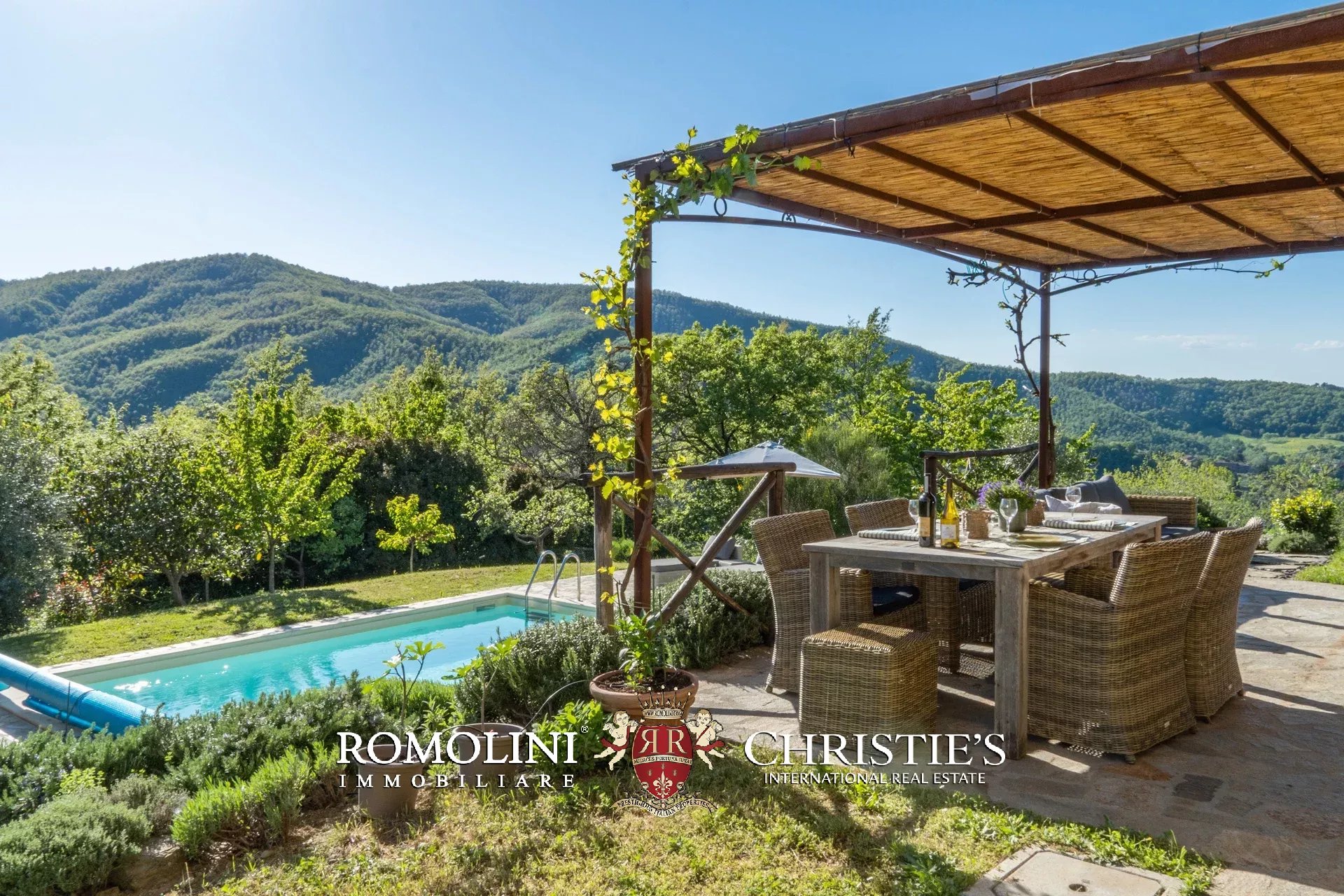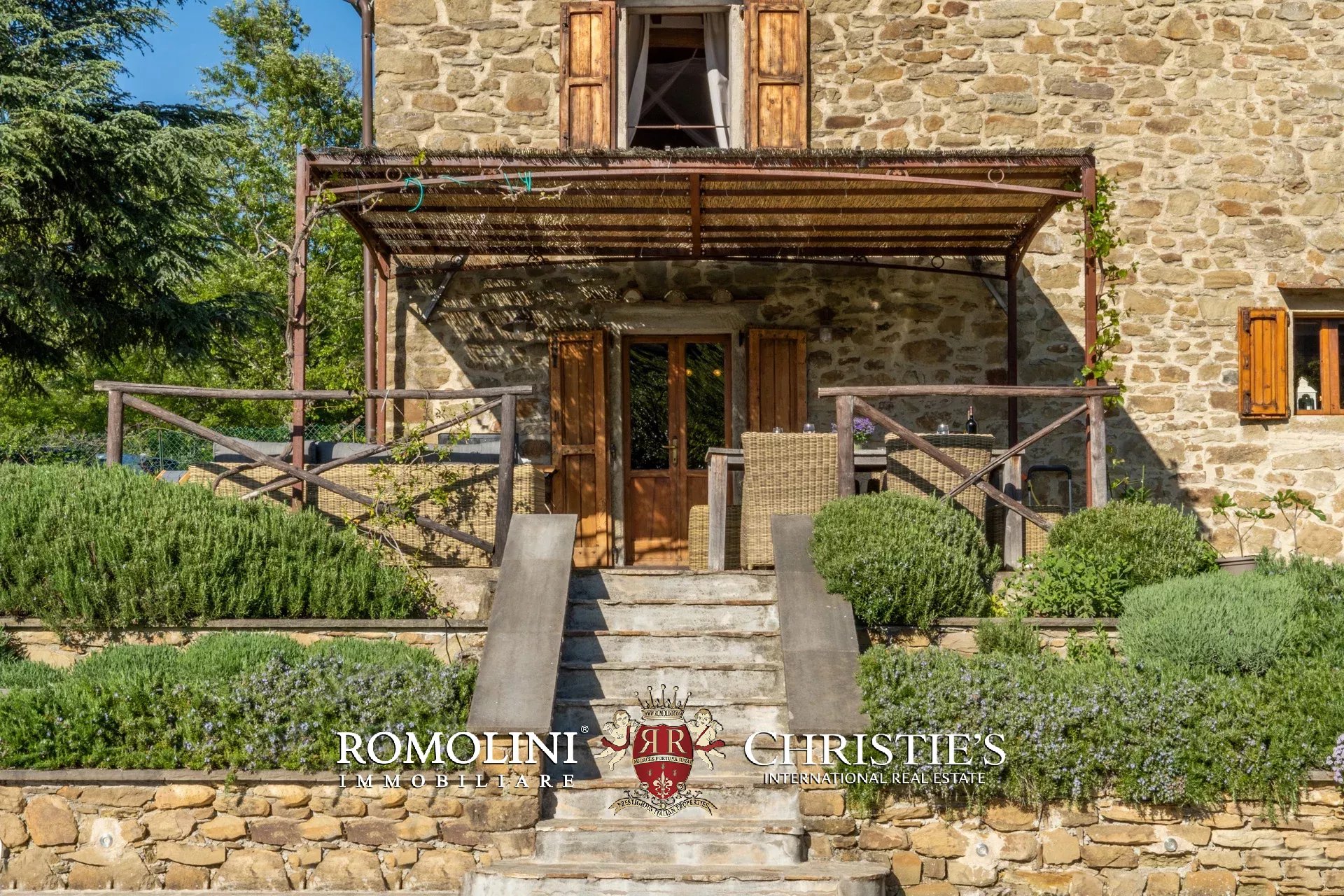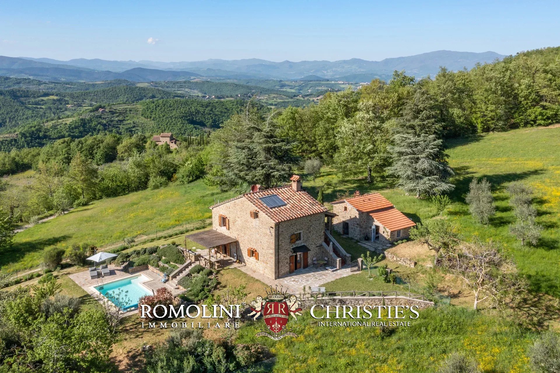 In posizione panoramica in cima a una collina, non lontano da Anghiari, casale finemente ristrutturato con piscina e dependance in vendita. L’immobile, molto curato e rifinito con gusto, è attualmente affittato dai proprietari come casa vacanze con ottimi risultati ma si presta molto bene a divenire una casa privata per chi cerca pace e tranquillità.