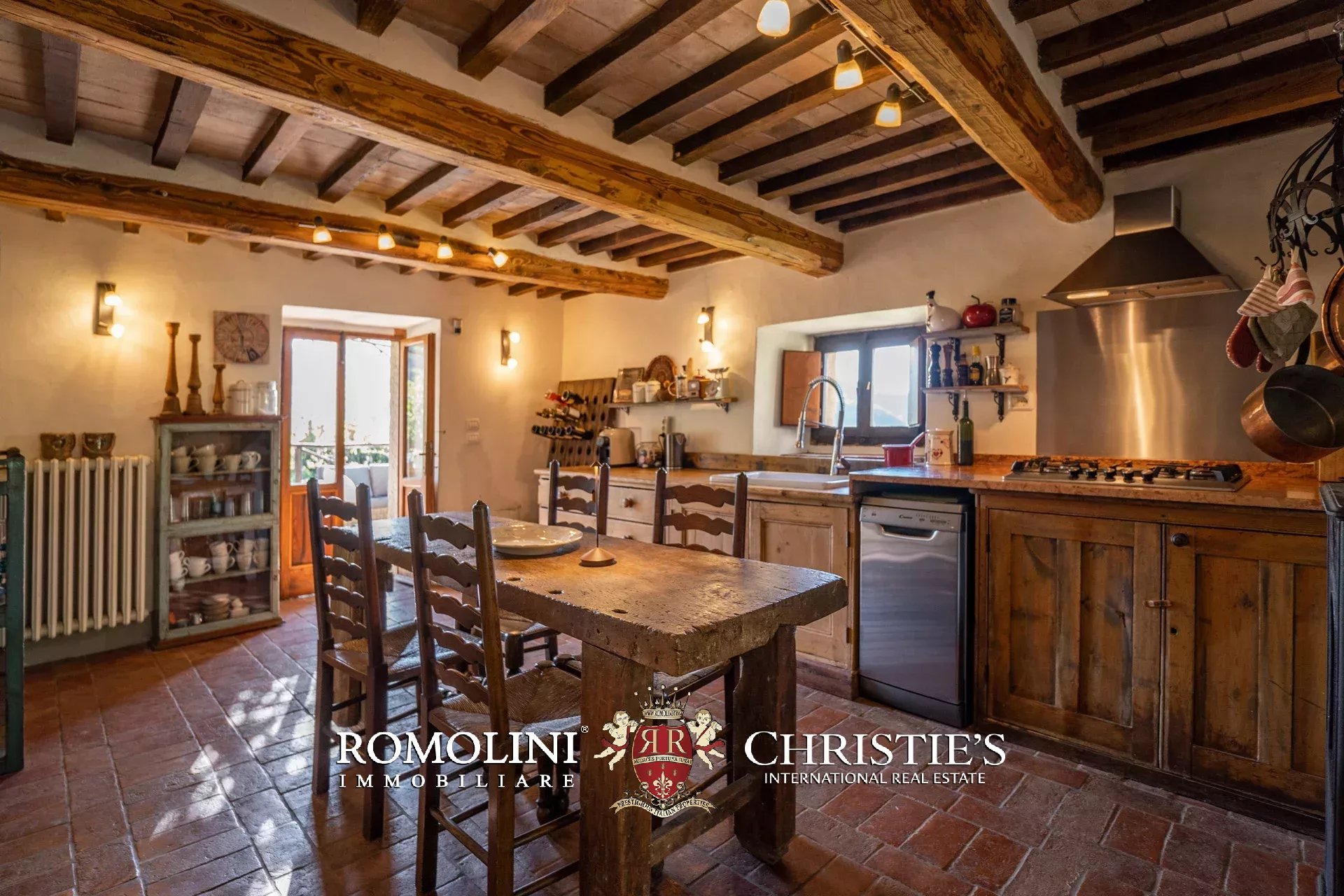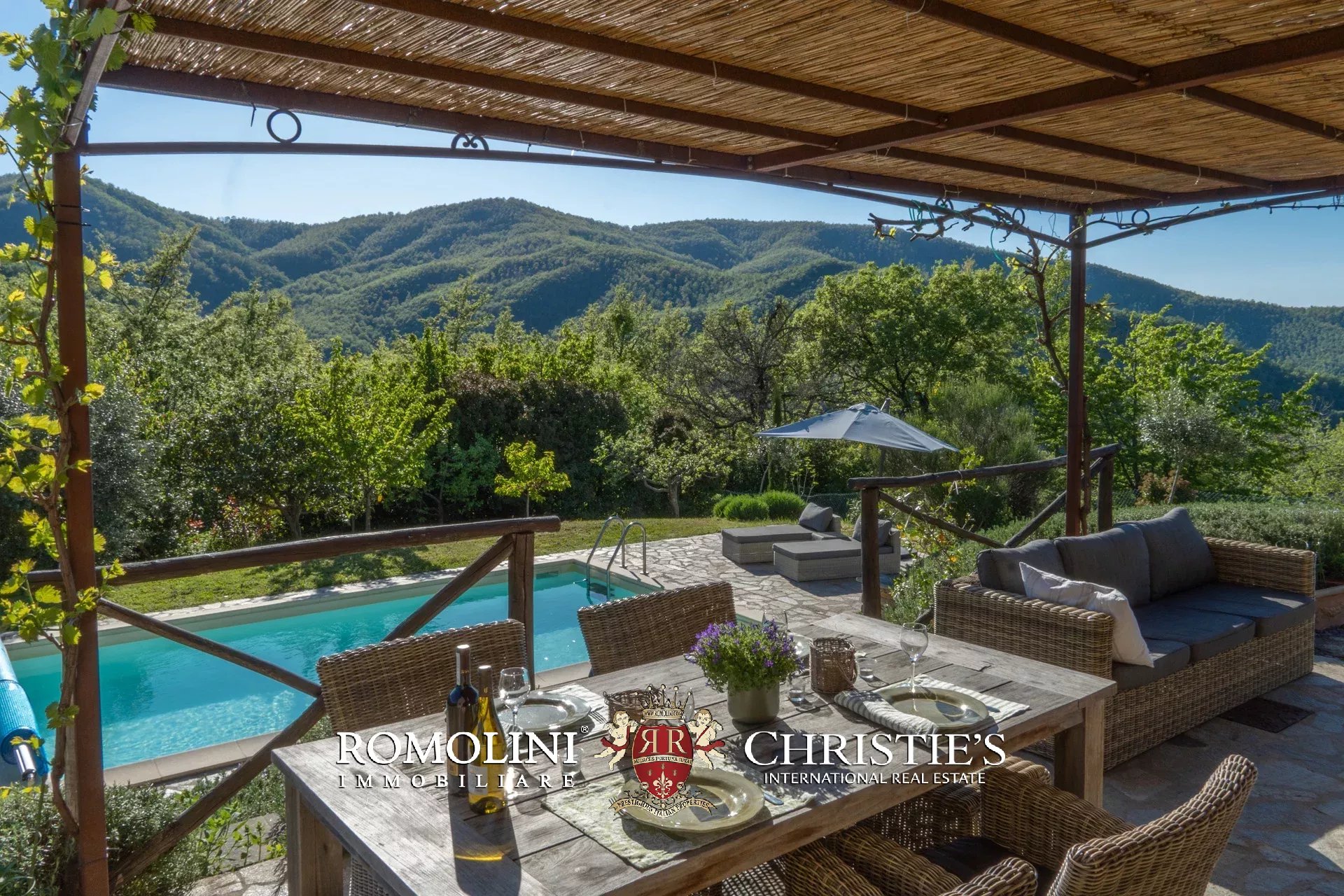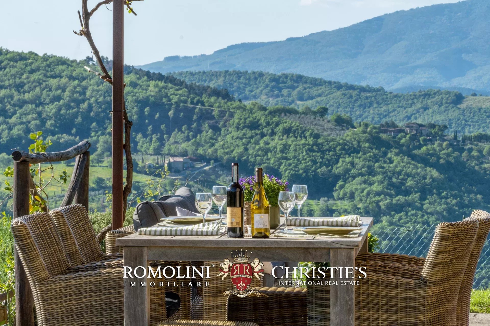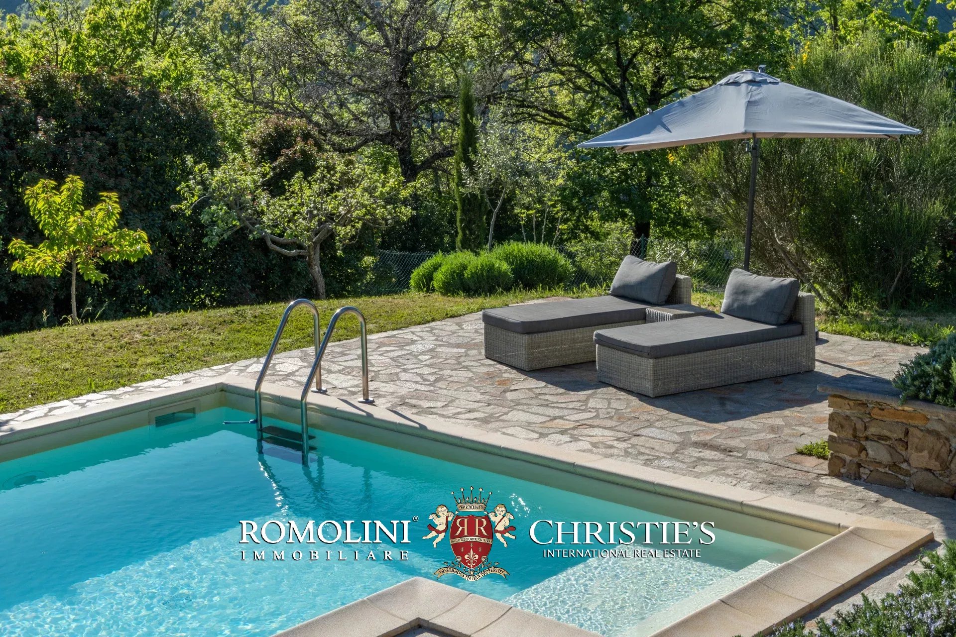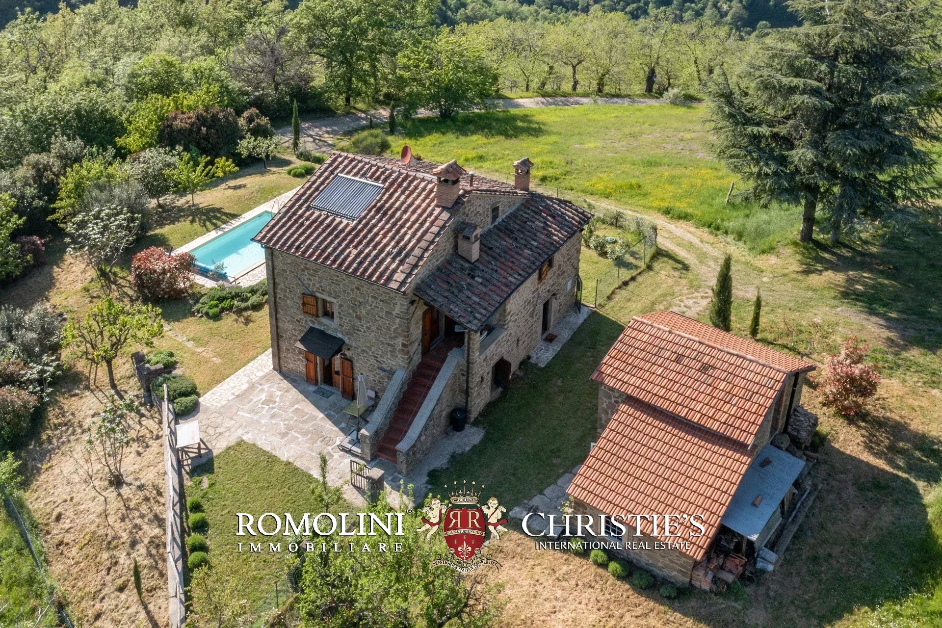 In posizione panoramica in cima a una collina, non lontano da Anghiari, casale finemente ristrutturato con piscina e dependance in vendita. L’immobile, molto curato e rifinito con gusto, è attualmente affittato dai proprietari come casa vacanze con ottimi risultati ma si presta molto bene a divenire una casa privata per chi cerca pace e tranquillità.
