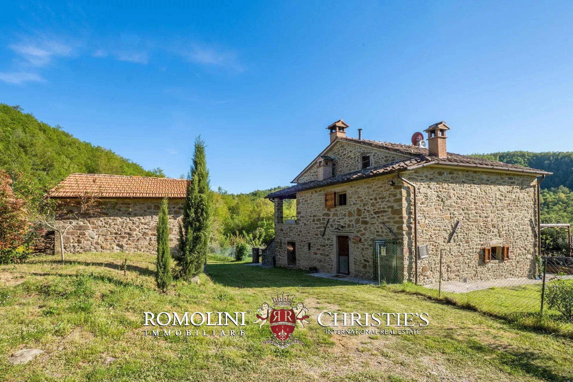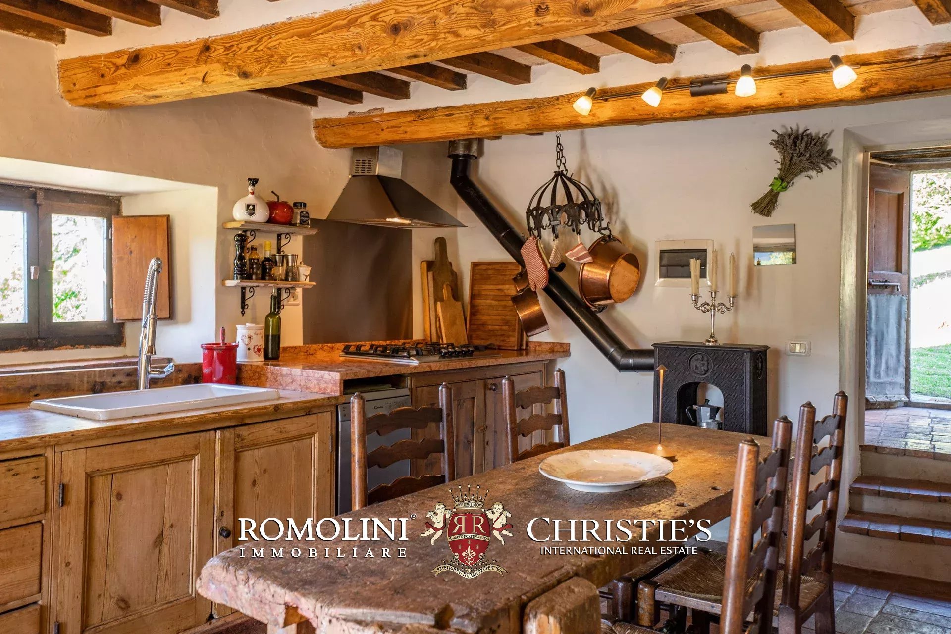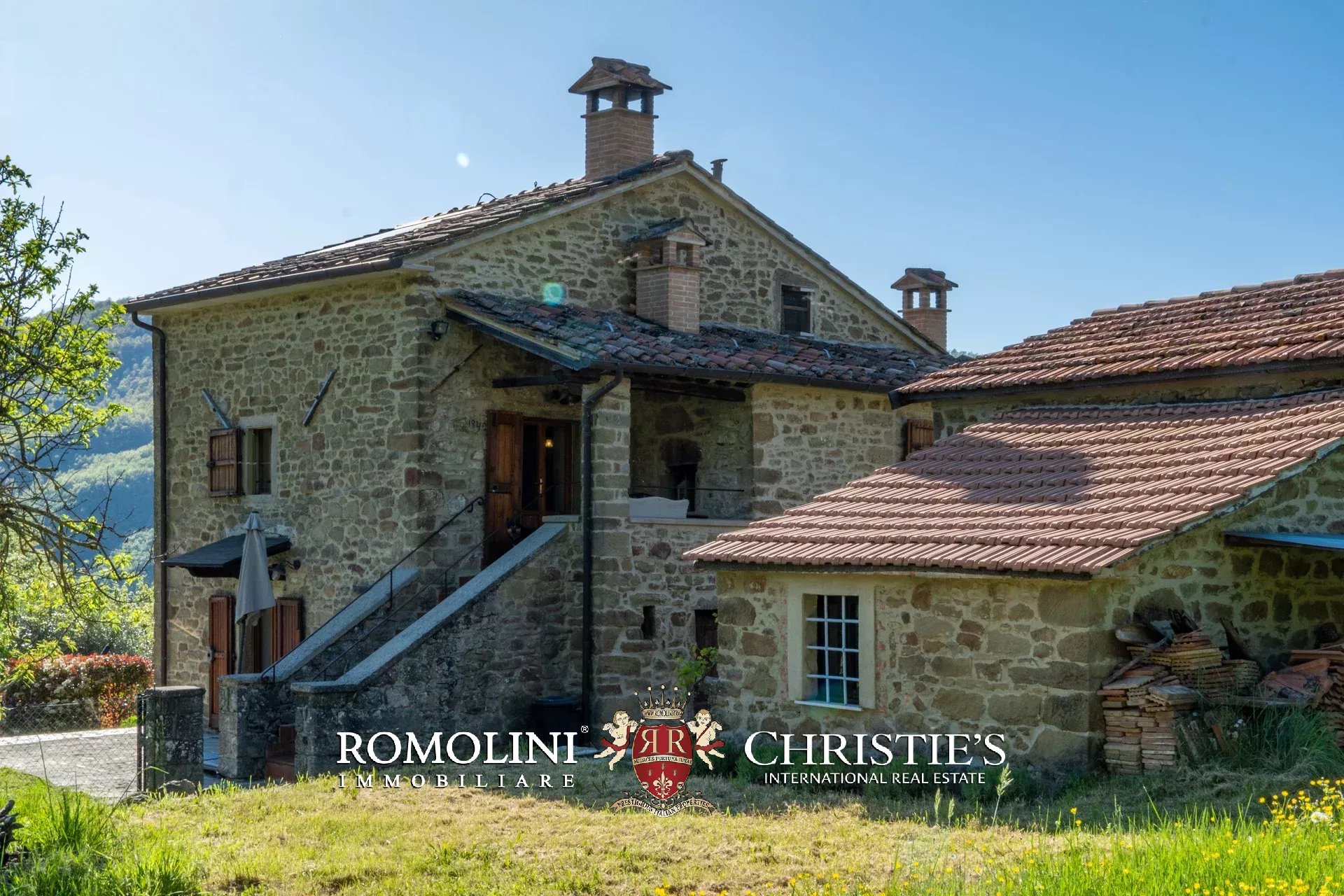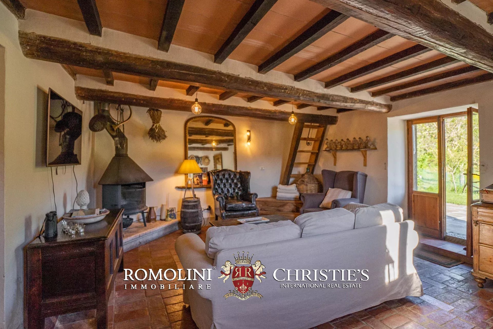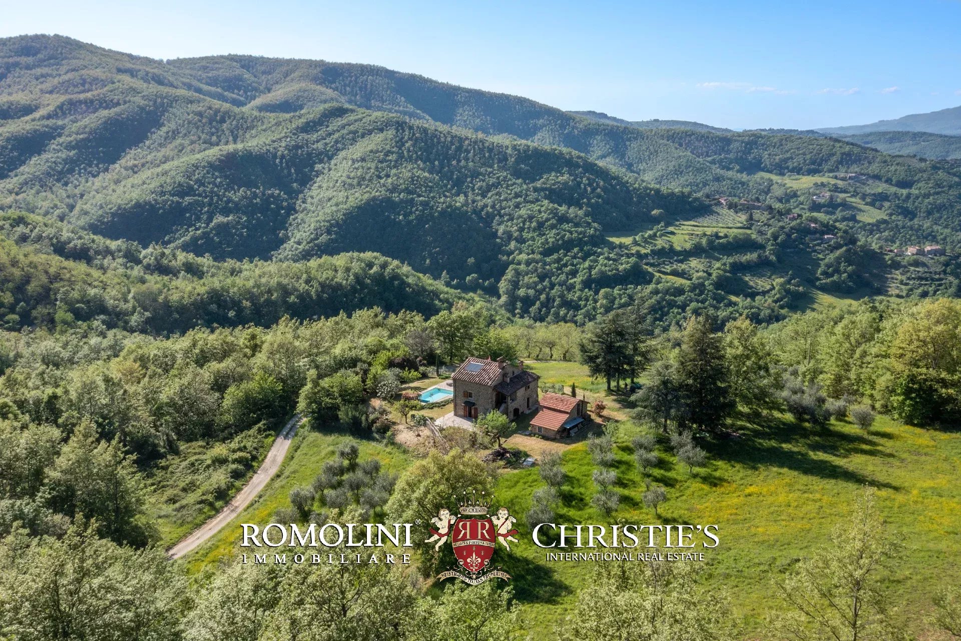 In posizione panoramica in cima a una collina, non lontano da Anghiari, casale finemente ristrutturato con piscina e dependance in vendita. L’immobile, molto curato e rifinito con gusto, è attualmente affittato dai proprietari come casa vacanze con ottimi risultati ma si presta molto bene a divenire una casa privata per chi cerca pace e tranquillità.