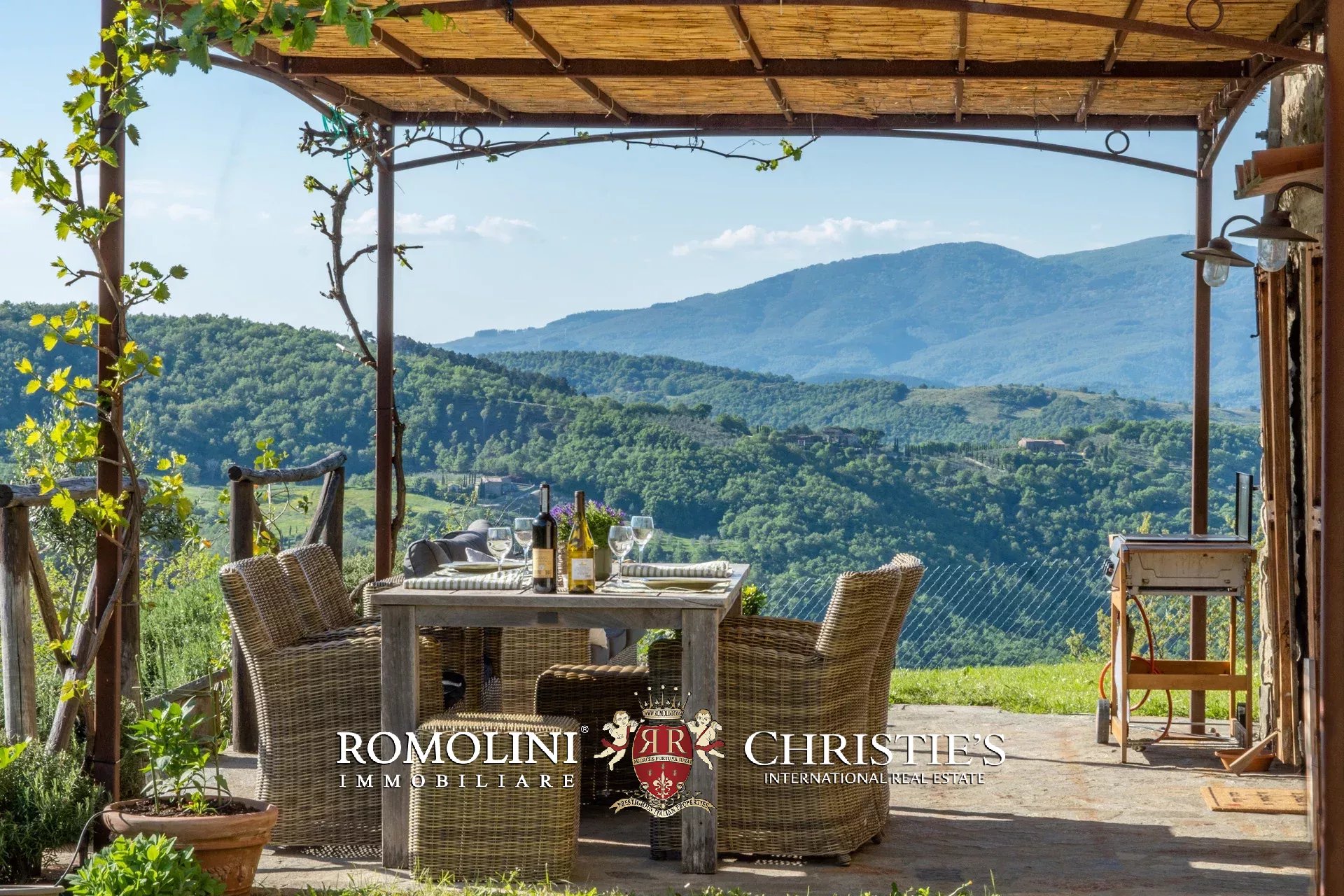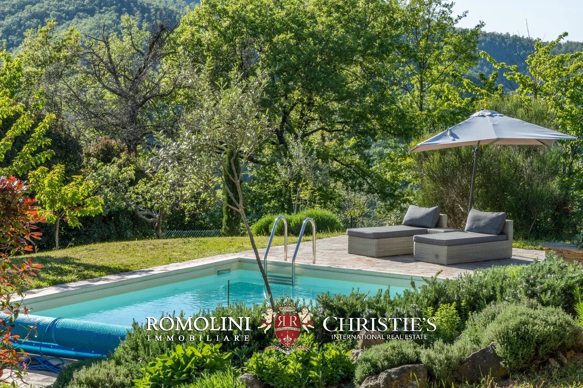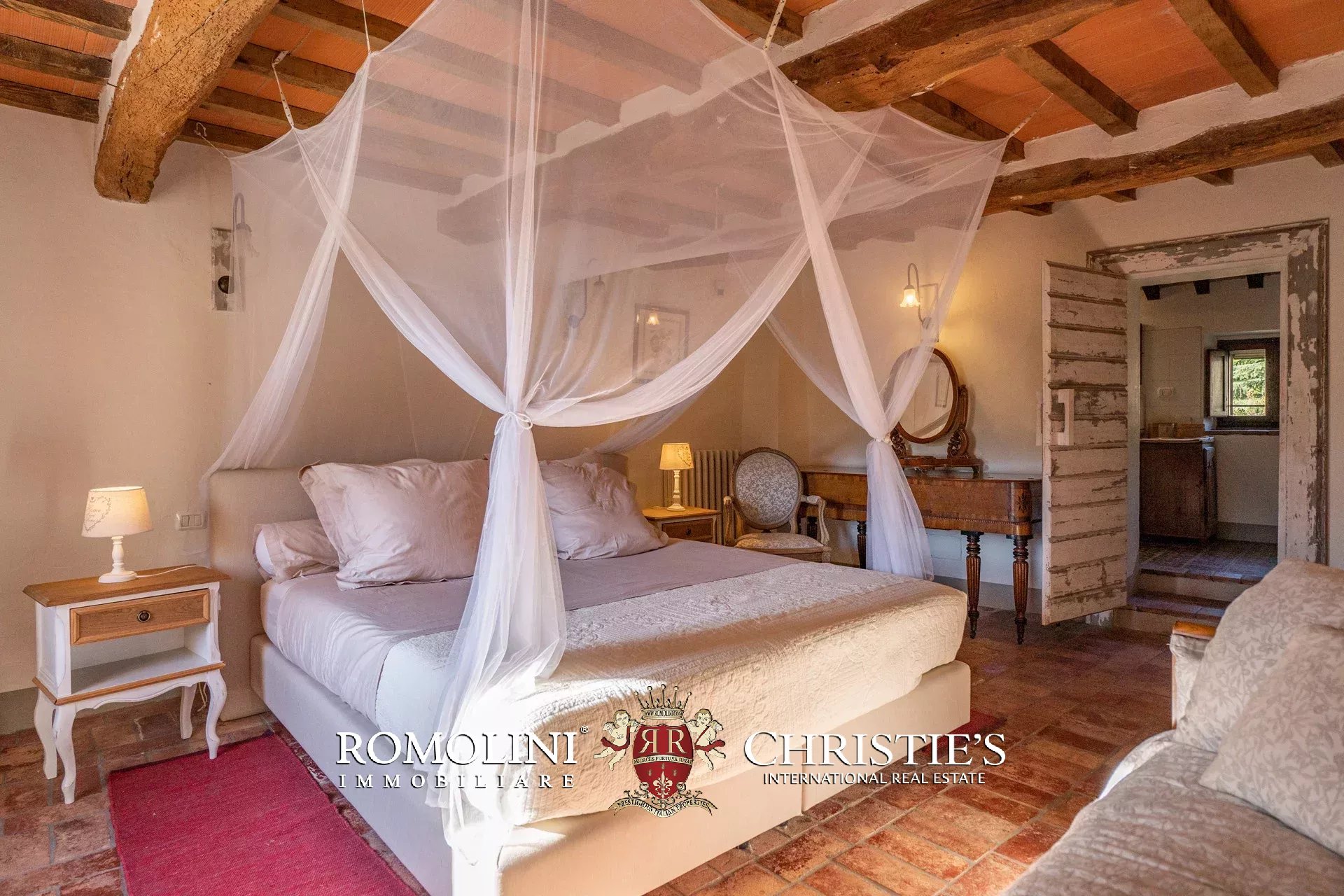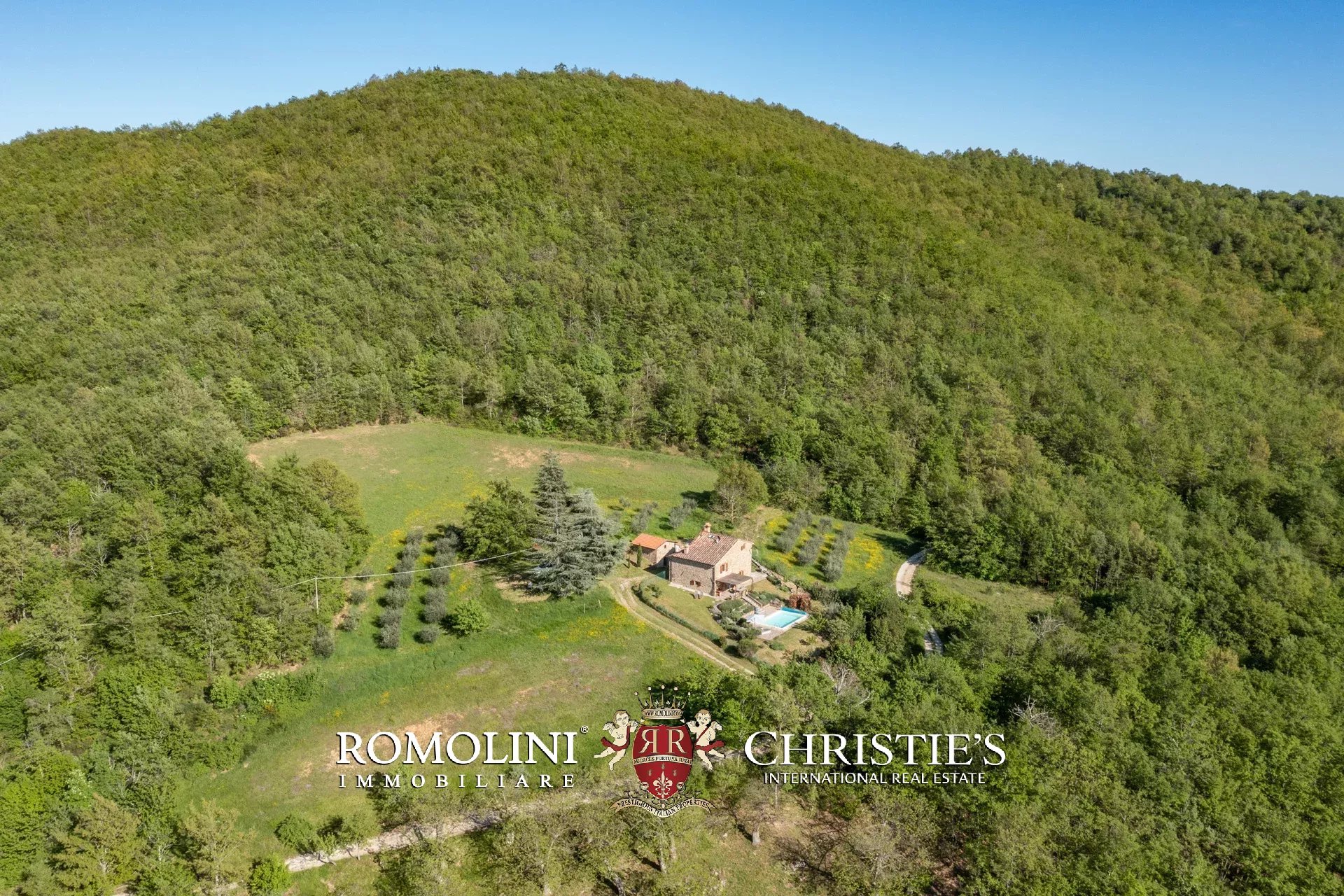 In posizione panoramica in cima a una collina, non lontano da Anghiari, casale finemente ristrutturato con piscina e dependance in vendita. L’immobile, molto curato e rifinito con gusto, è attualmente affittato dai proprietari come casa vacanze con ottimi risultati ma si presta molto bene a divenire una casa privata per chi cerca pace e tranquillità.
