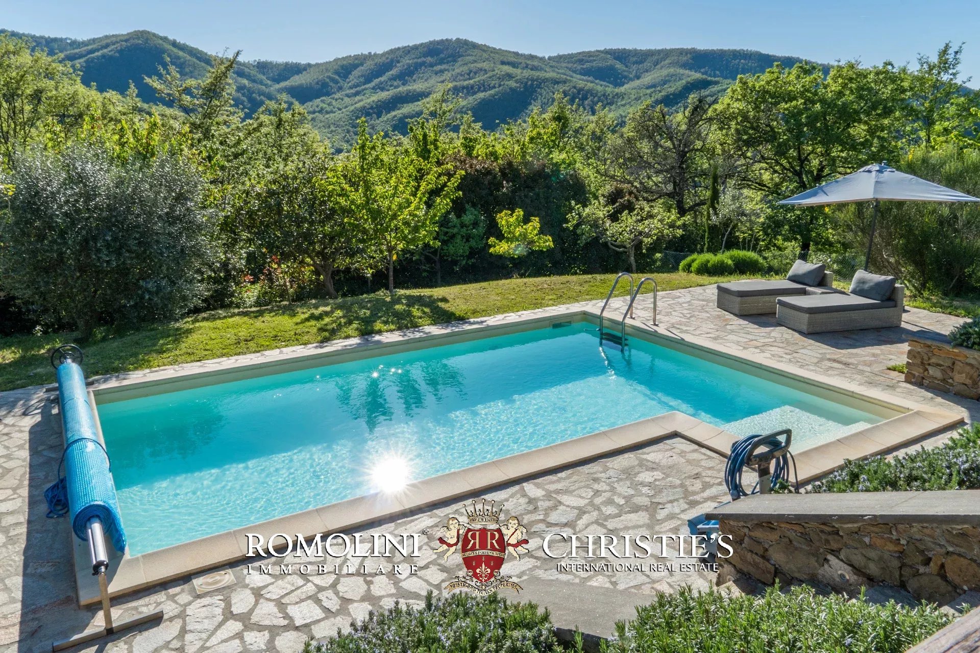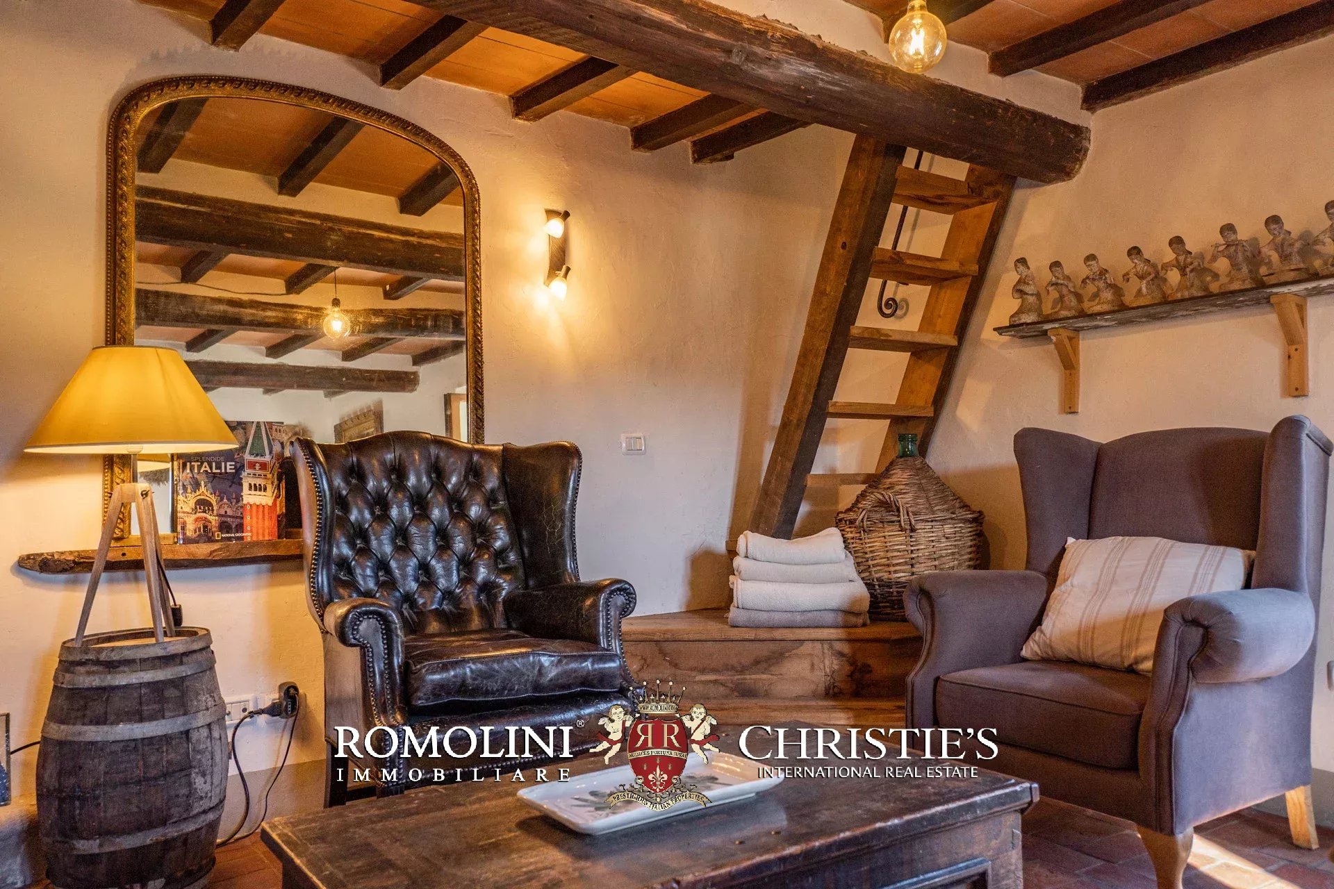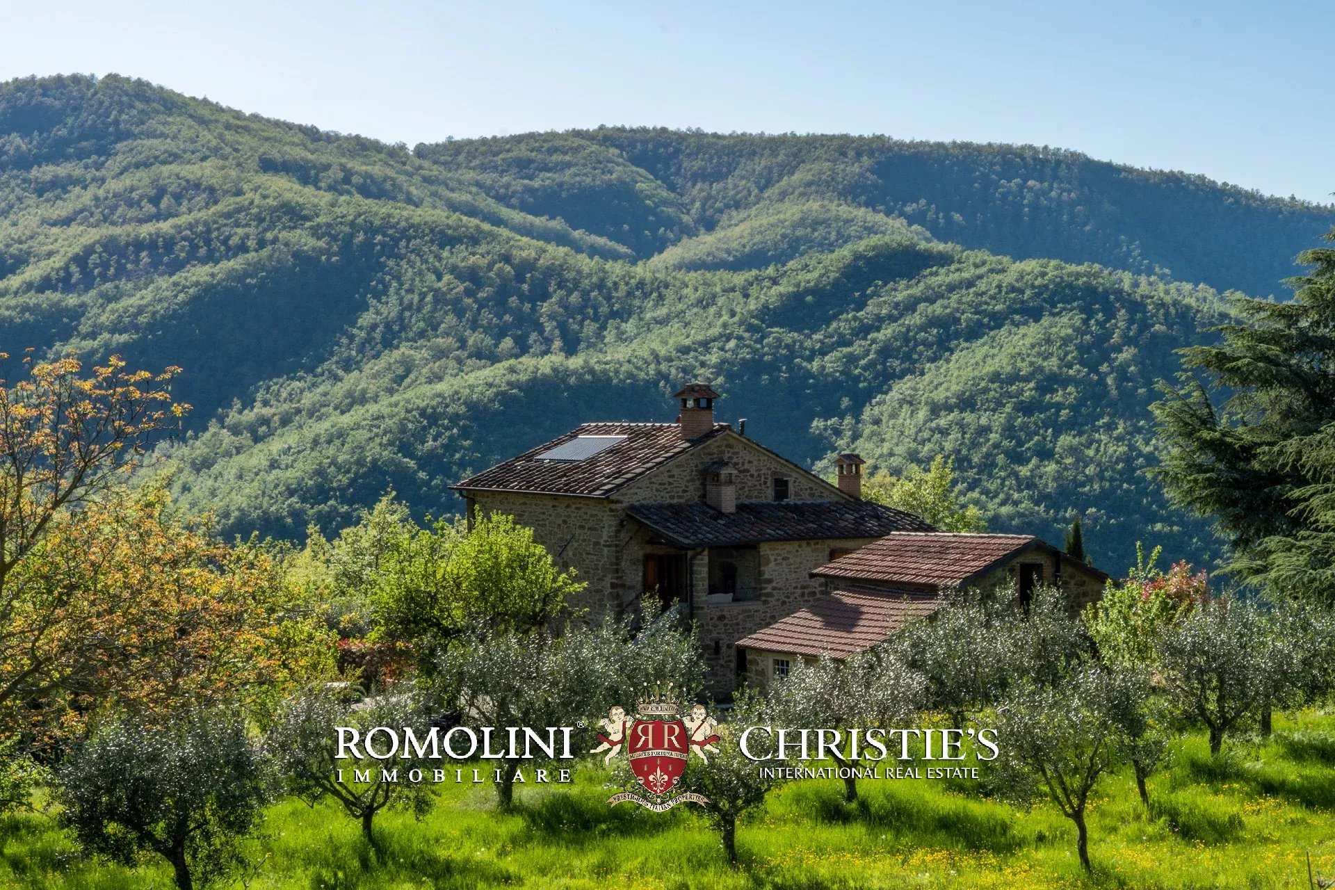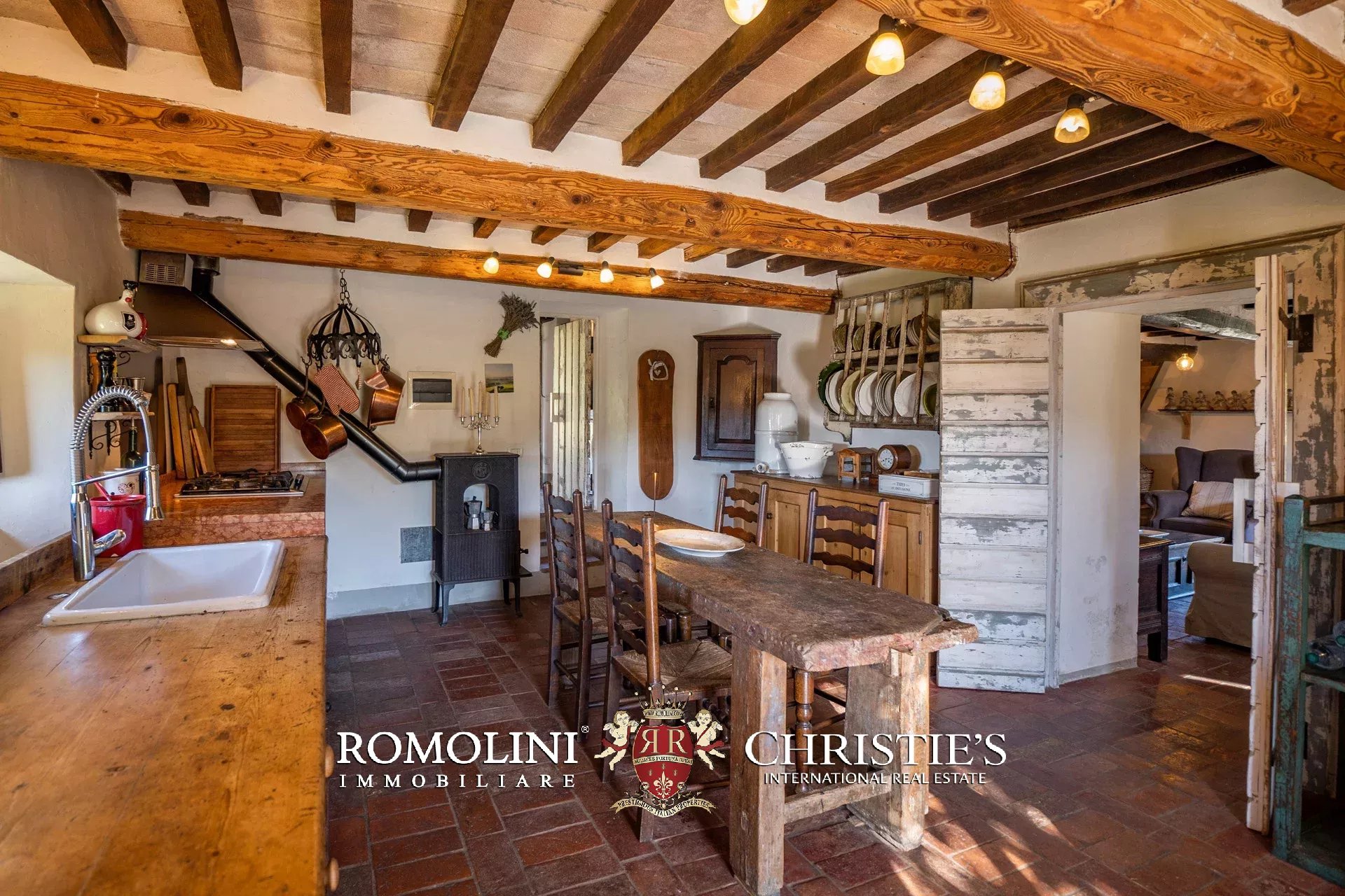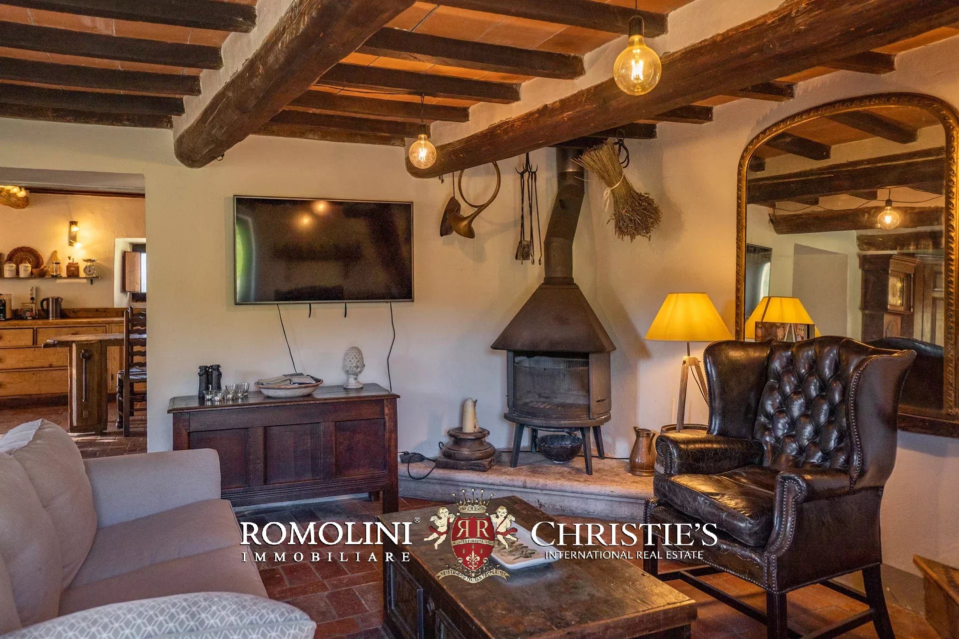 In posizione panoramica in cima a una collina, non lontano da Anghiari, casale finemente ristrutturato con piscina e dependance in vendita. L’immobile, molto curato e rifinito con gusto, è attualmente affittato dai proprietari come casa vacanze con ottimi risultati ma si presta molto bene a divenire una casa privata per chi cerca pace e tranquillità.