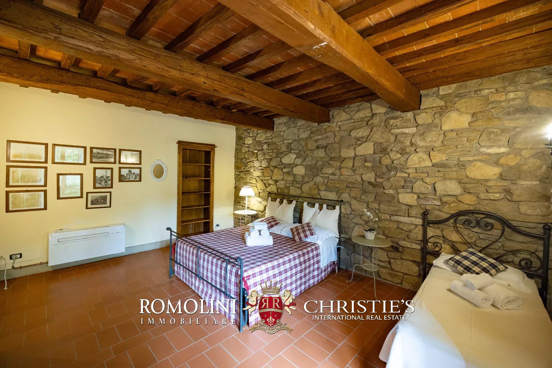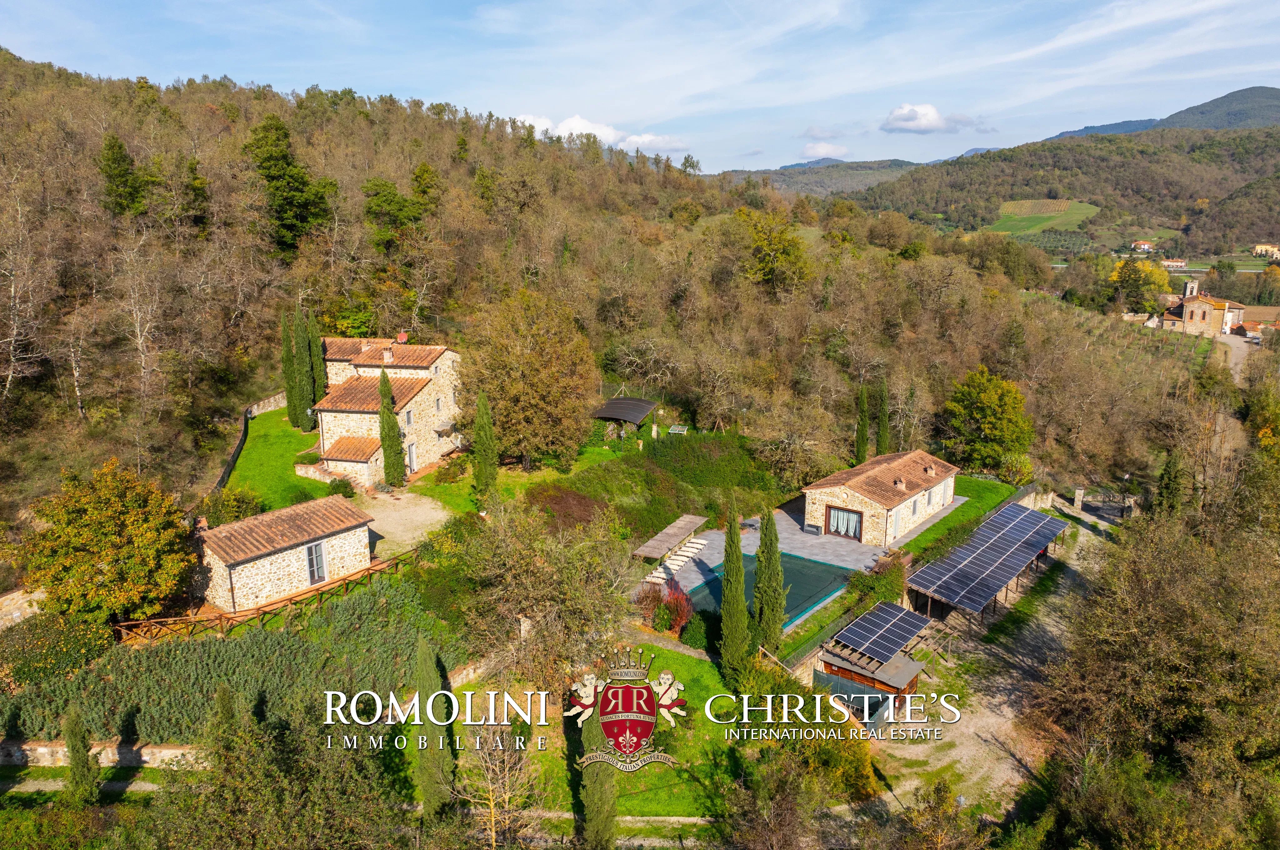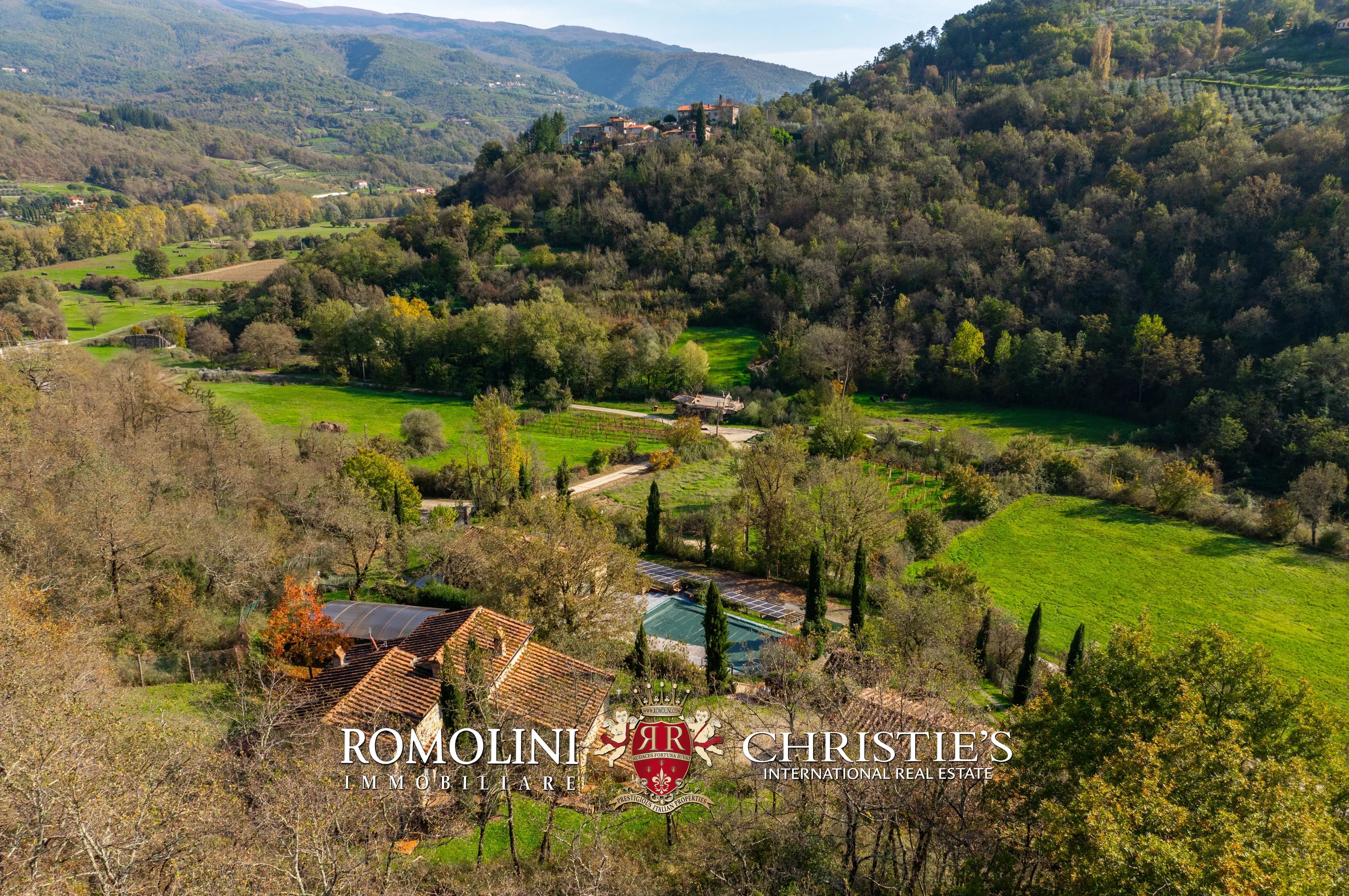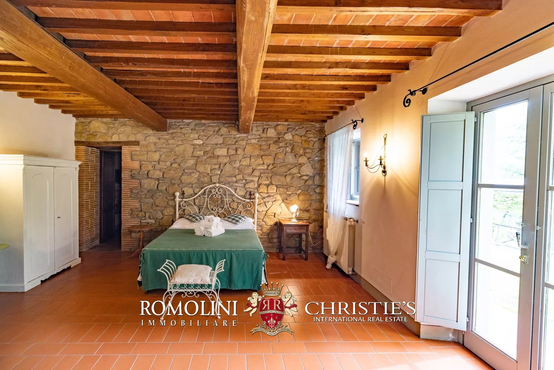Alle porte del Casentino, non lontano da Subbiano e Castel Focognano, casa colonica ristrutturata con dependance in vendita. La proprietà si compone di una casa principale e due dependance (per un totale di 8 camere) circondate da un bellissimo giardino di 4.000 m² con piscina 12 × 6 m, solarium e tettoia per le auto.