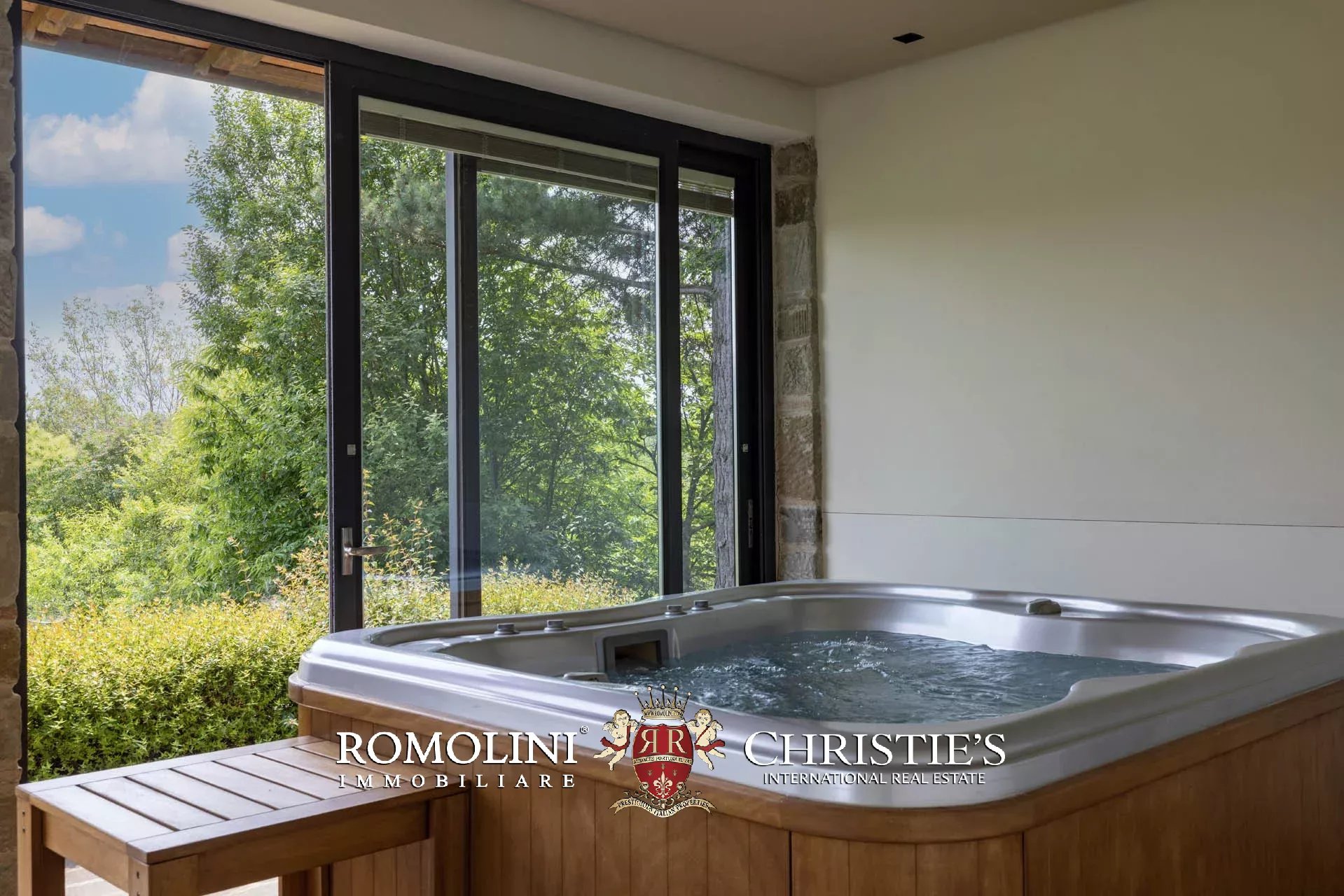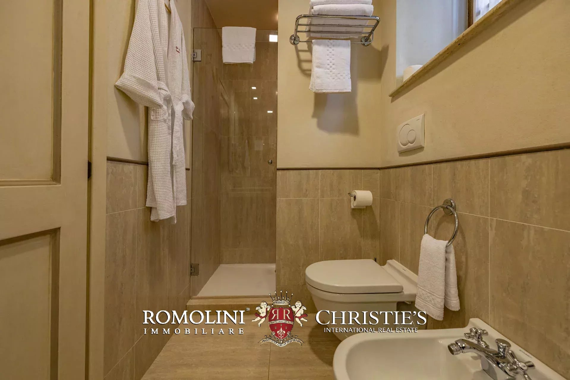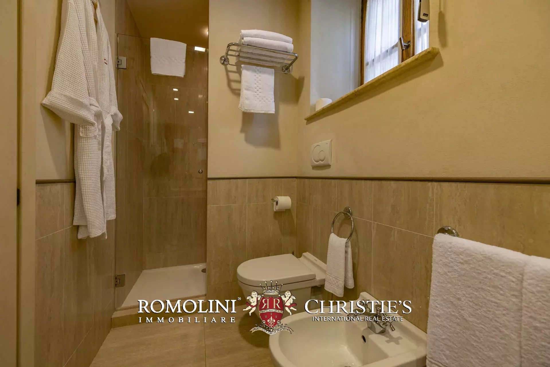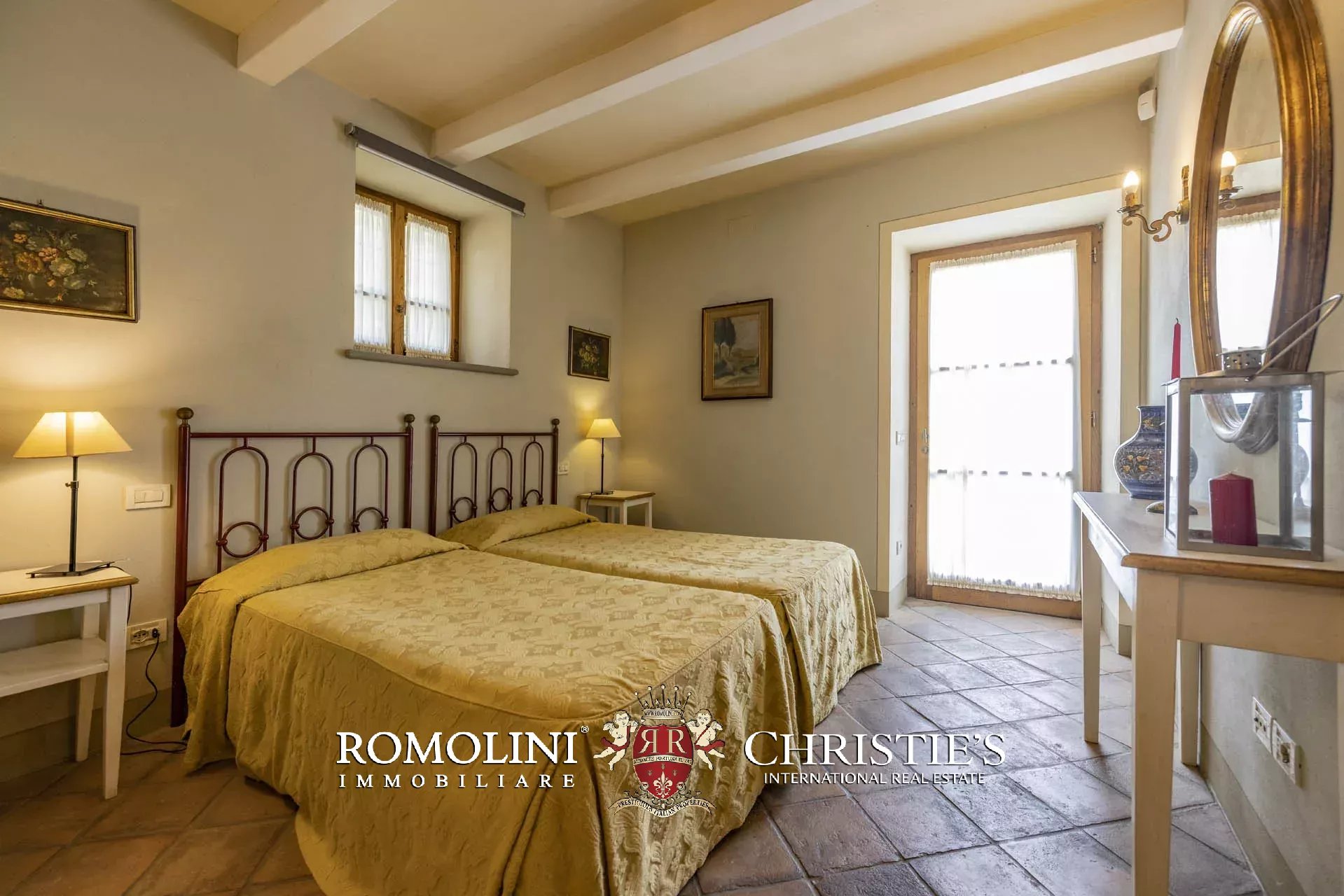Attualmente il collegamento al piano inferiore della villa è realizzato attraverso una scala esterna accessibile dal soggiorno e dalla cucina, nel pianerottolo di accesso alle scale è presente un forno a legna perfettamente funzionante. Al piano inferiore sono presenti due camere con bagno en-suite e due spaziose suite con bagno. Tutte le camere hanno accesso indipendente al grande parco che degrada dolcemente verso valle.