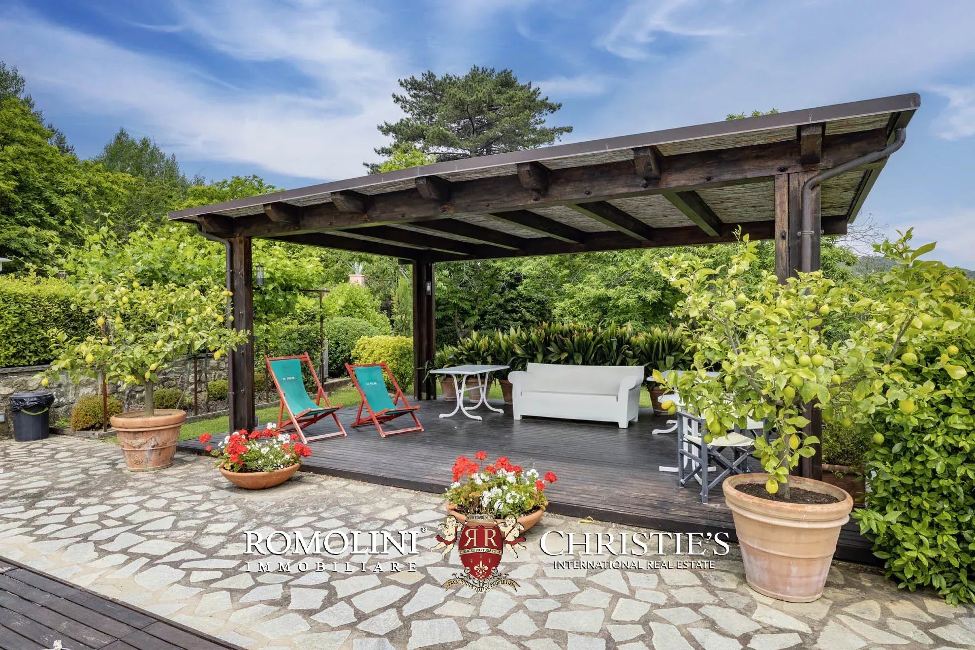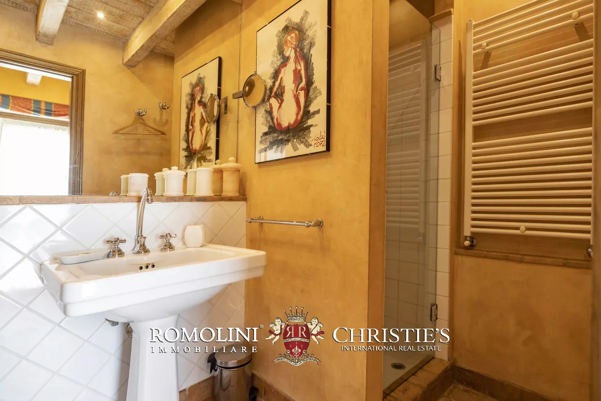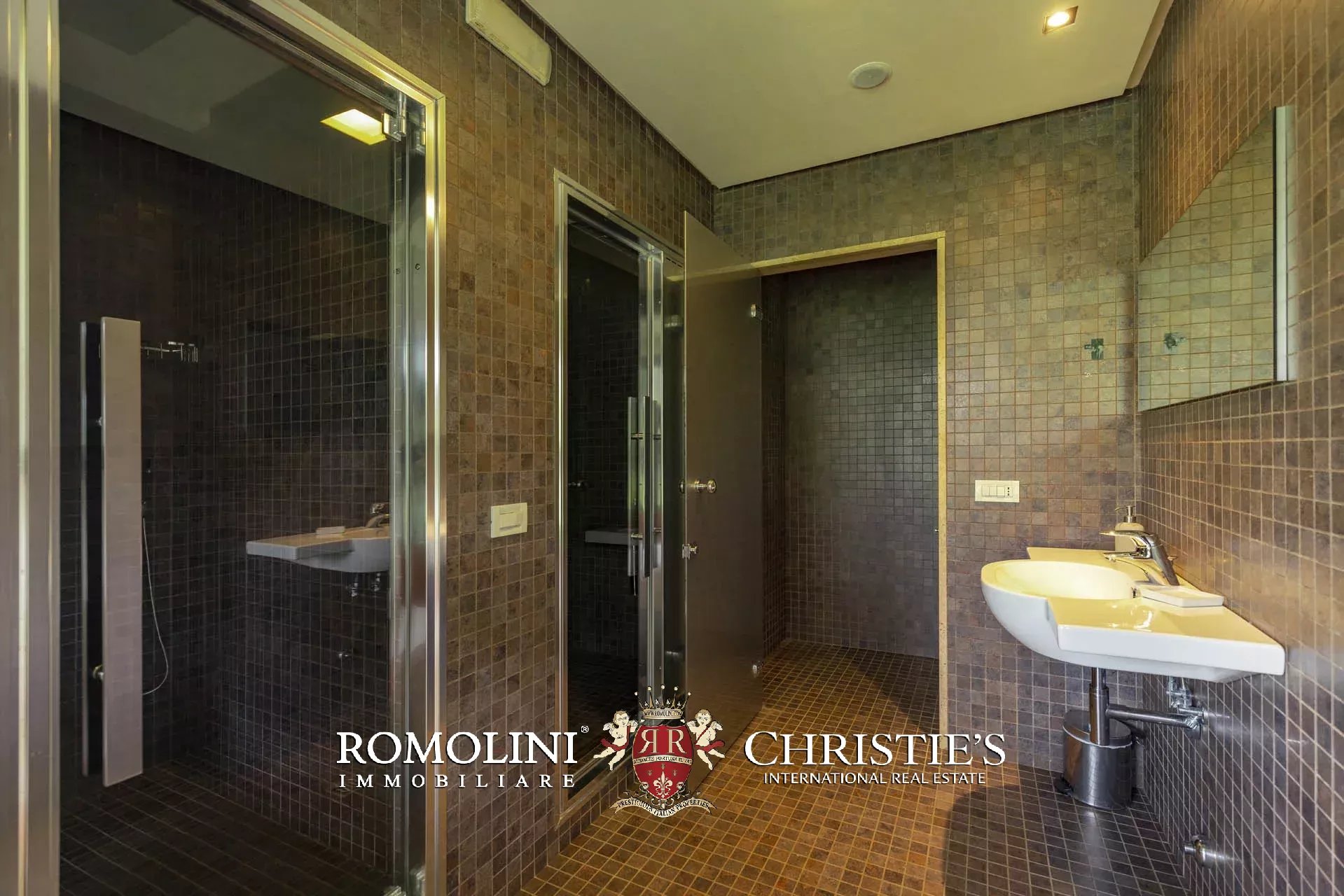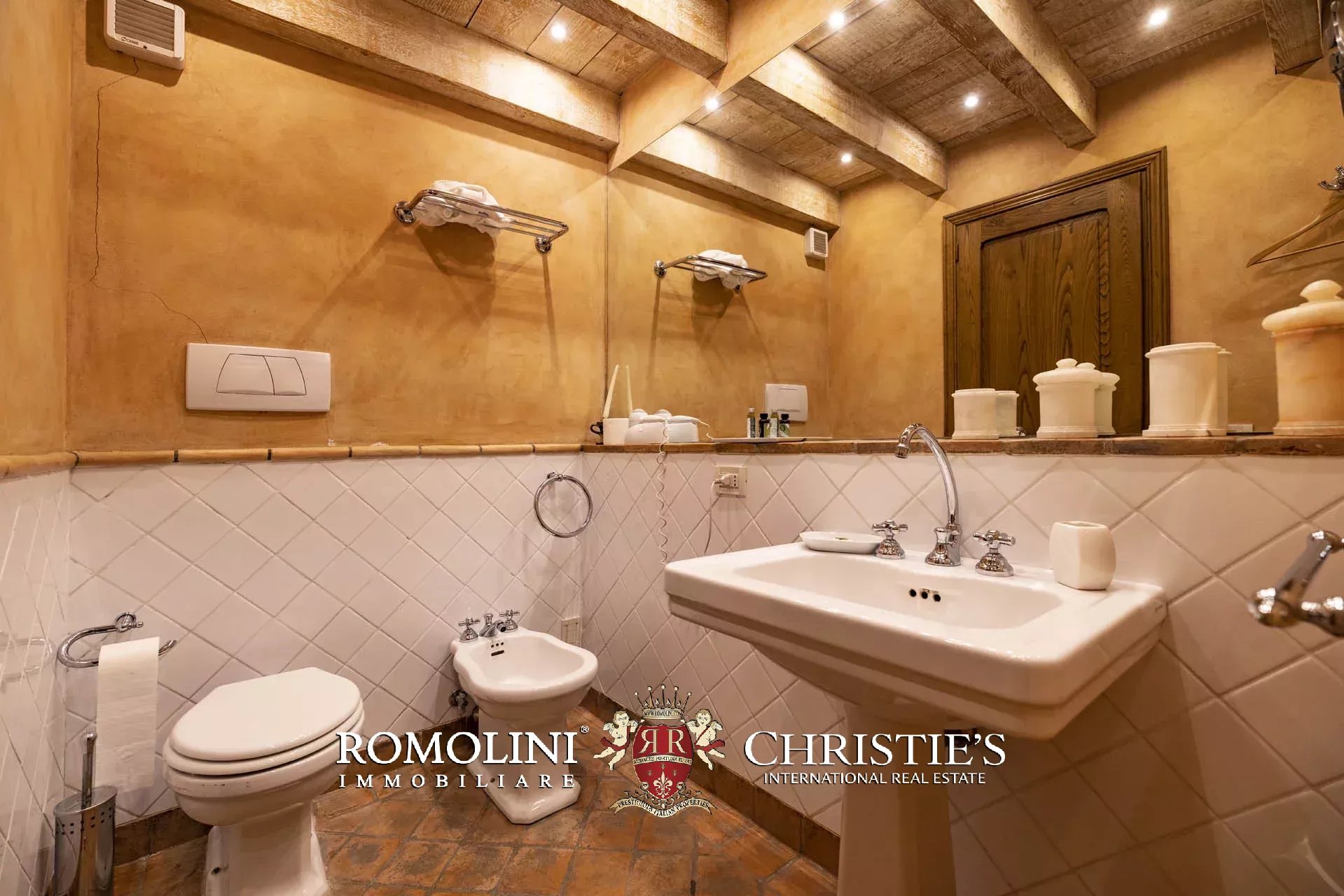 Attualmente il collegamento al piano inferiore della villa è realizzato attraverso una scala esterna accessibile dal soggiorno e dalla cucina, nel pianerottolo di accesso alle scale è presente un forno a legna perfettamente funzionante. Al piano inferiore sono presenti due camere con bagno en-suite e due spaziose suite con bagno. Tutte le camere hanno accesso indipendente al grande parco che degrada dolcemente verso valle.