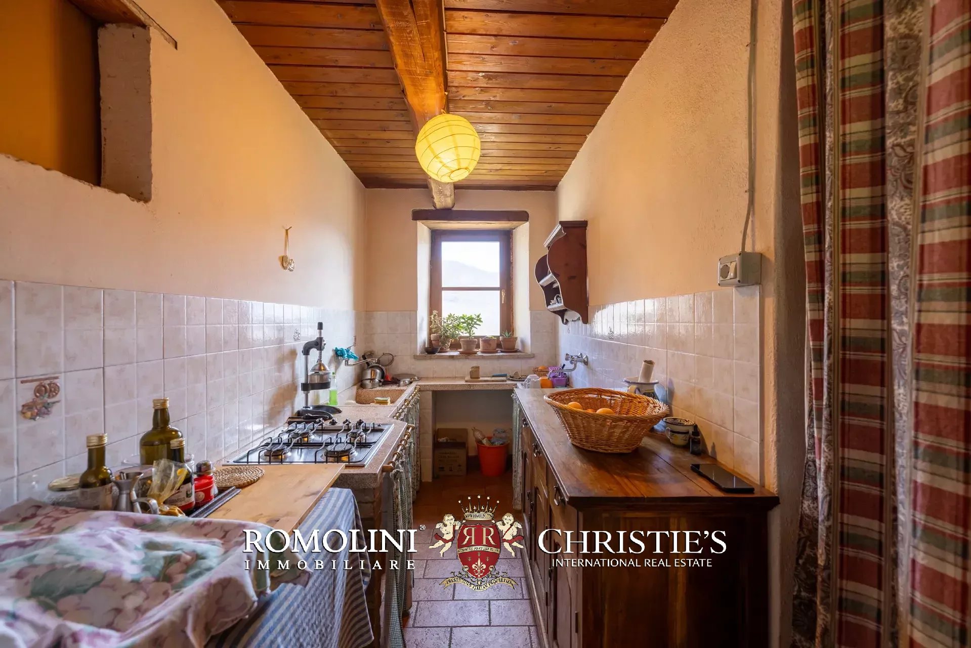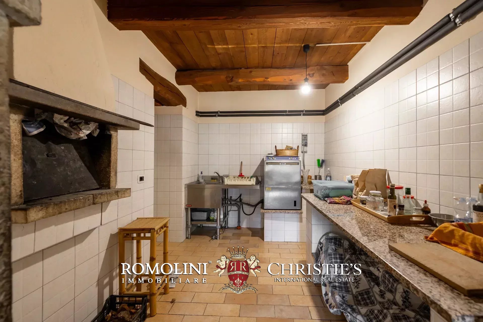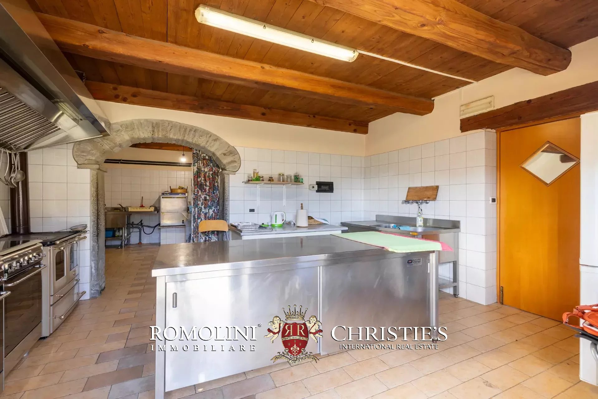Il piano terra accoglie poi una spaziosa cucina industriale attrezzata, un grande forno, la dispensa e un’accogliente sala da pranzo con camino, perfetta per eventi e cene in compagnia. La proprietà è dotata di una centrale termica con caldaia a legna che garantisce efficienza energetica e sostenibilità. L’acqua è invece fornita da tre sorgenti naturali.