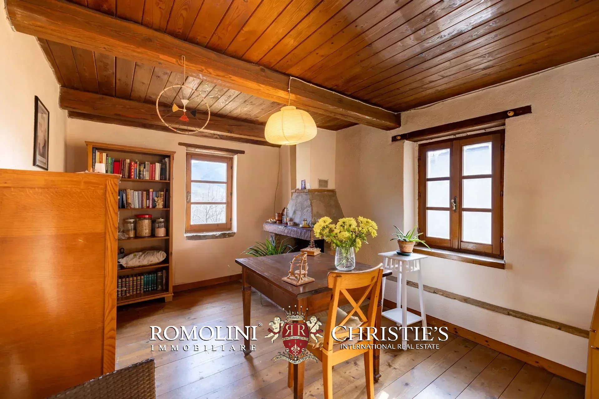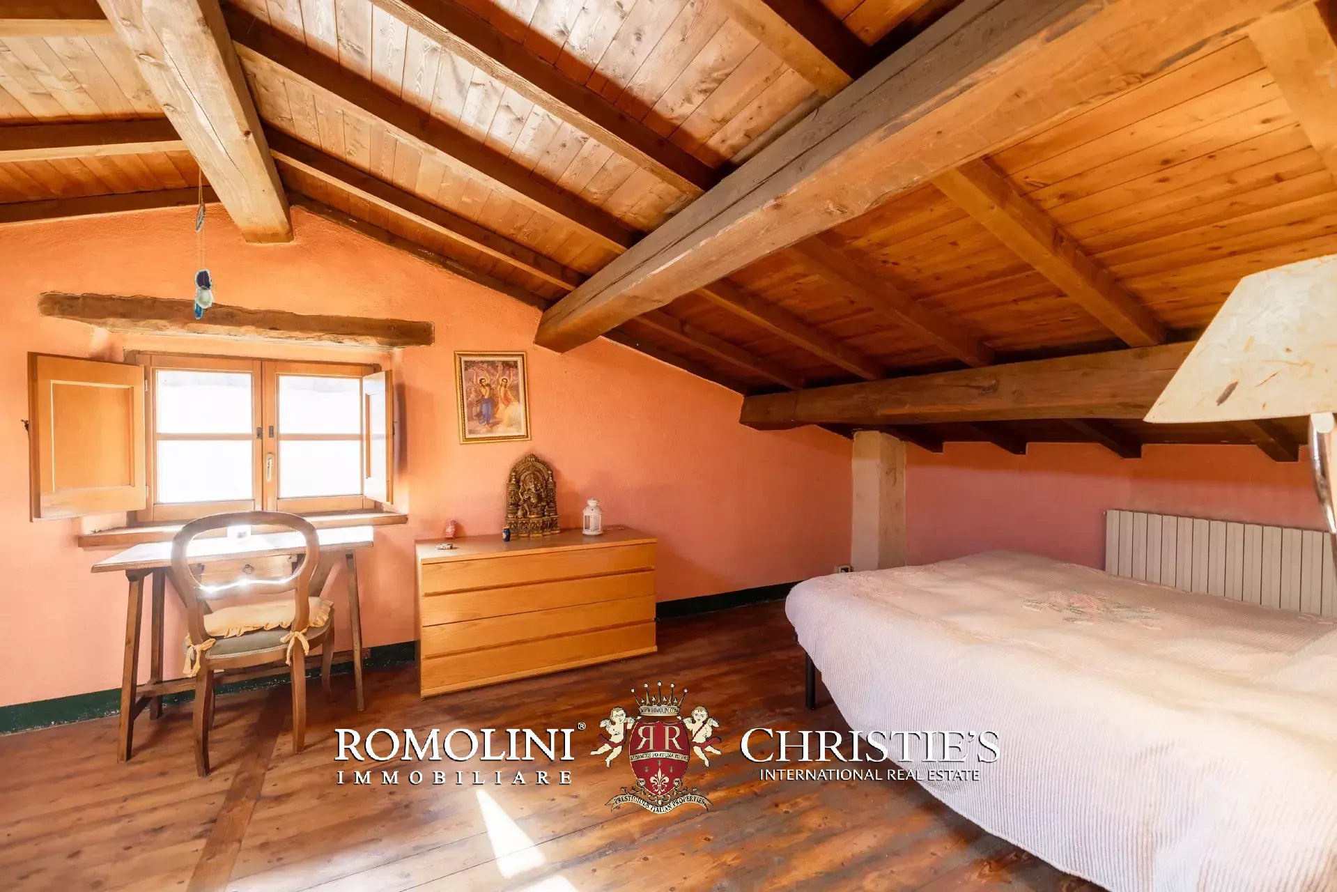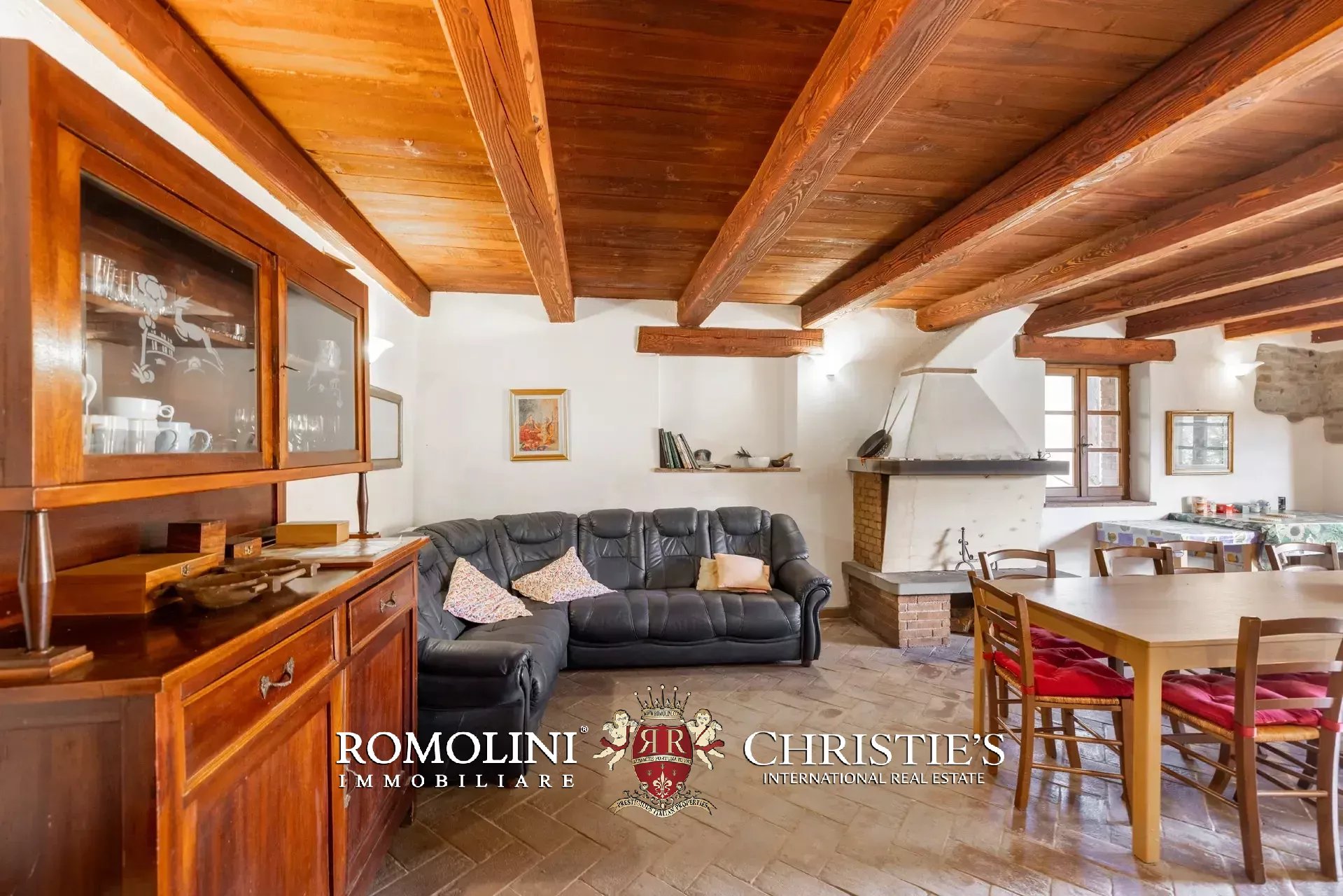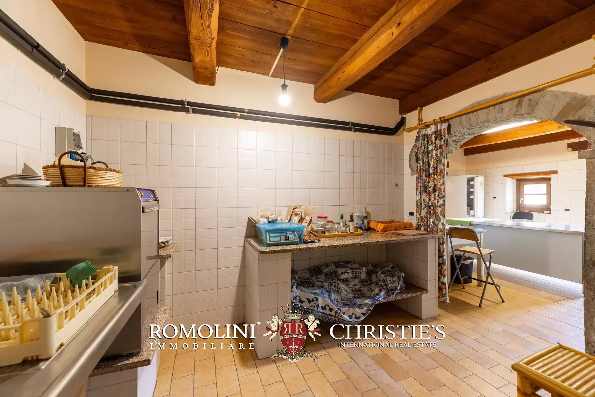 Il piano terra accoglie poi una spaziosa cucina industriale attrezzata, un grande forno, la dispensa e un’accogliente sala da pranzo con camino, perfetta per eventi e cene in compagnia. La proprietà è dotata di una centrale termica con caldaia a legna che garantisce efficienza energetica e sostenibilità. L’acqua è invece fornita da tre sorgenti naturali.