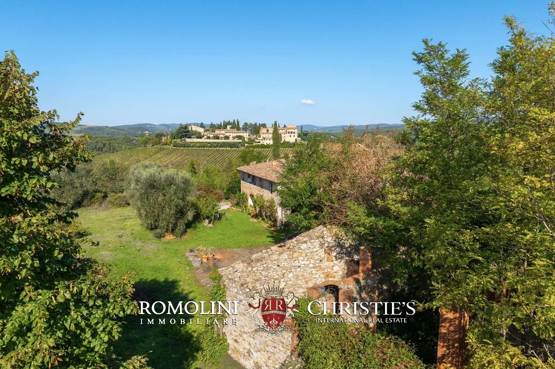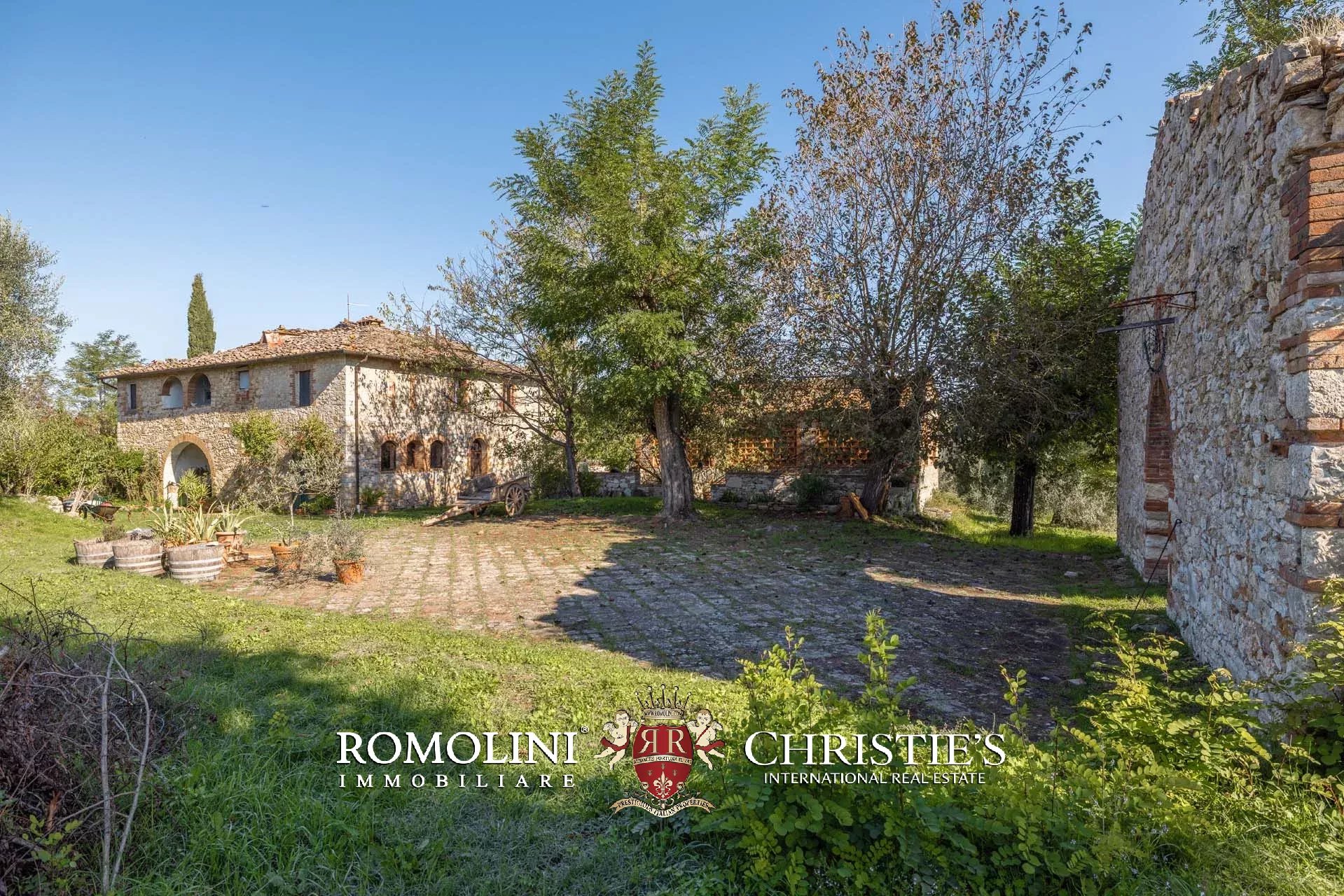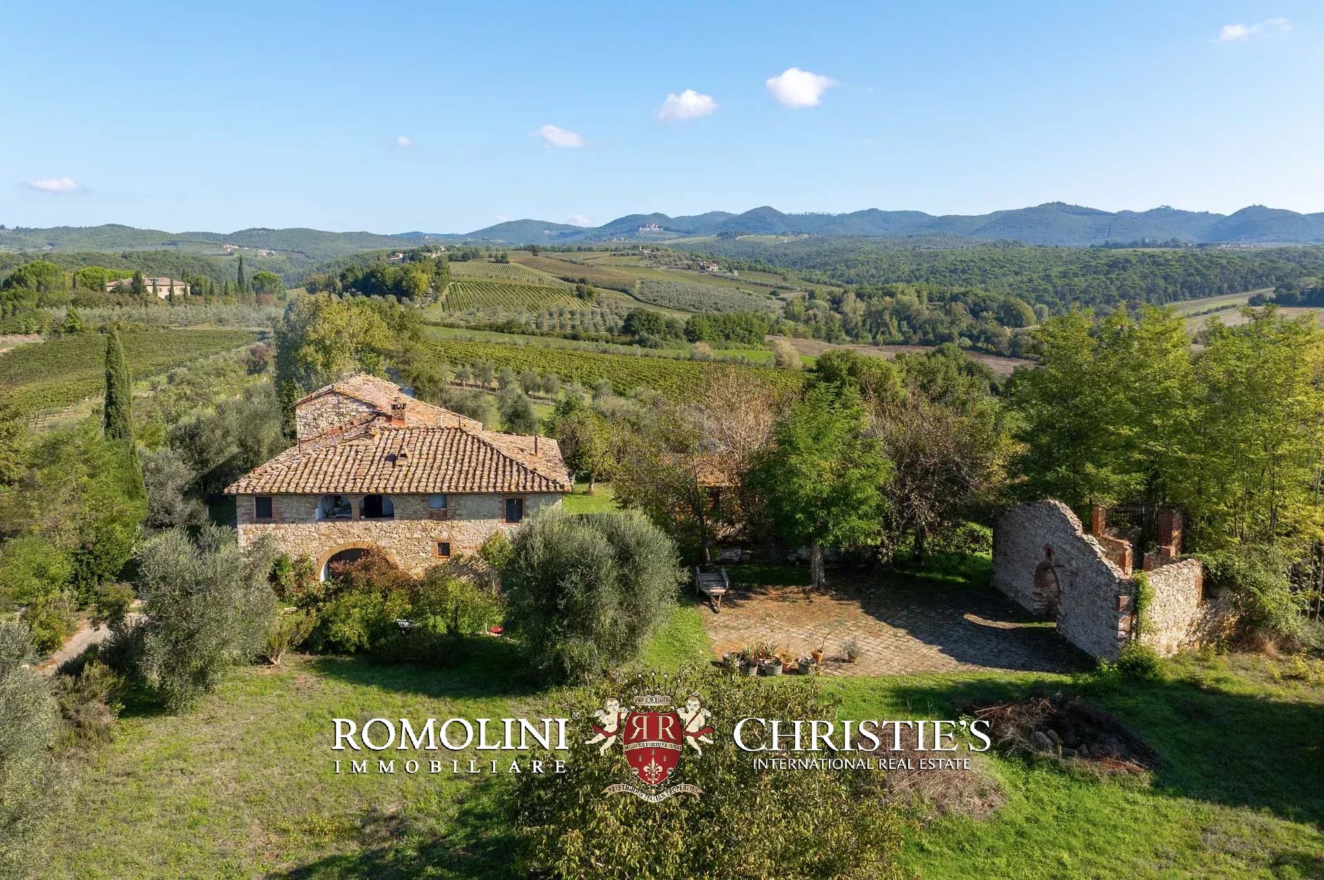 Sulle colline del Chianti, non lontano da Gaiole e Siena e in posizione panoramica, casale rustico con 3,0 ha di terreno in vendita. La proprietà si trova in una zona paesaggisticamente molto suggestiva, con vista aperta sulle colline e i vigneti della Toscana, e storicamente popolata fin da tempi antichissimi (resti etruschi risalenti al VII secolo a.C. sono stati rinvenuti in zona).